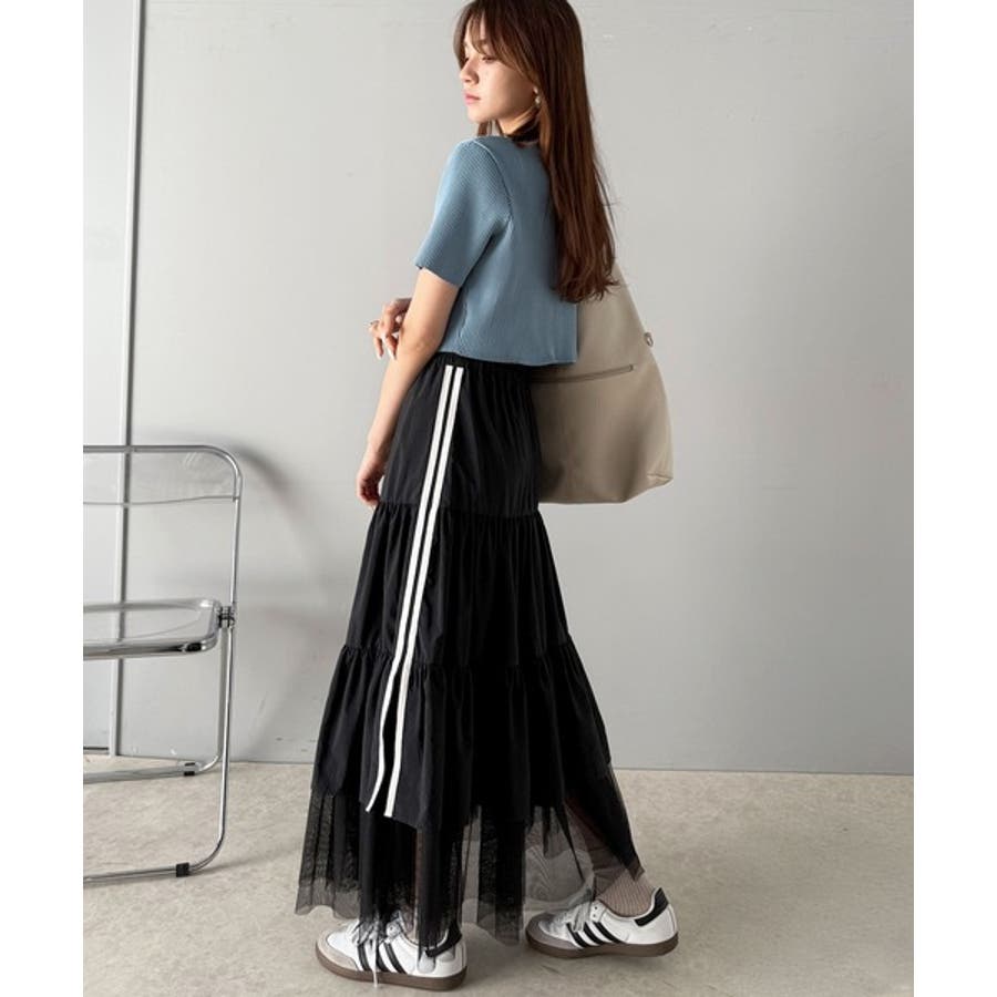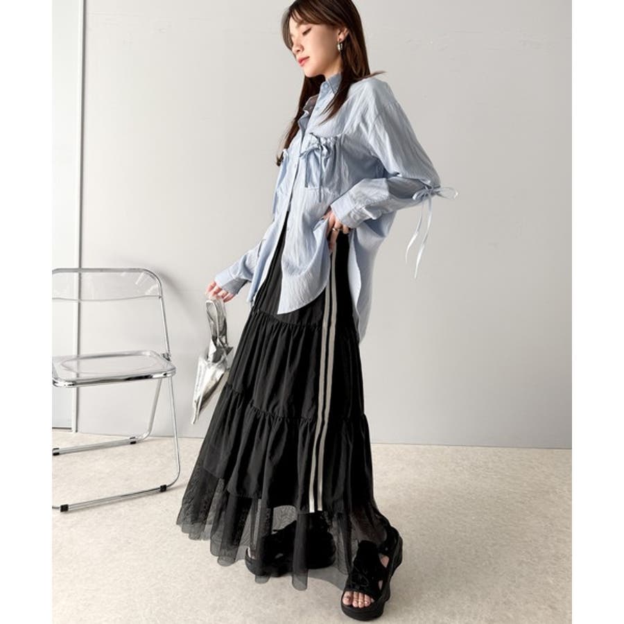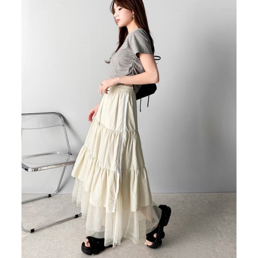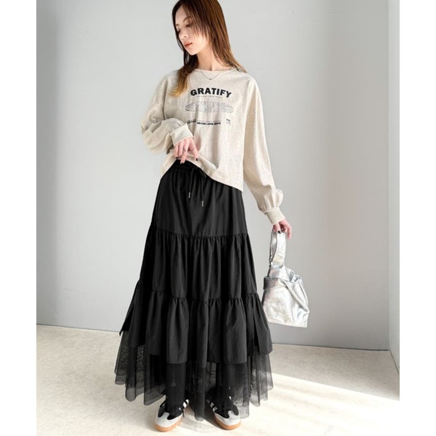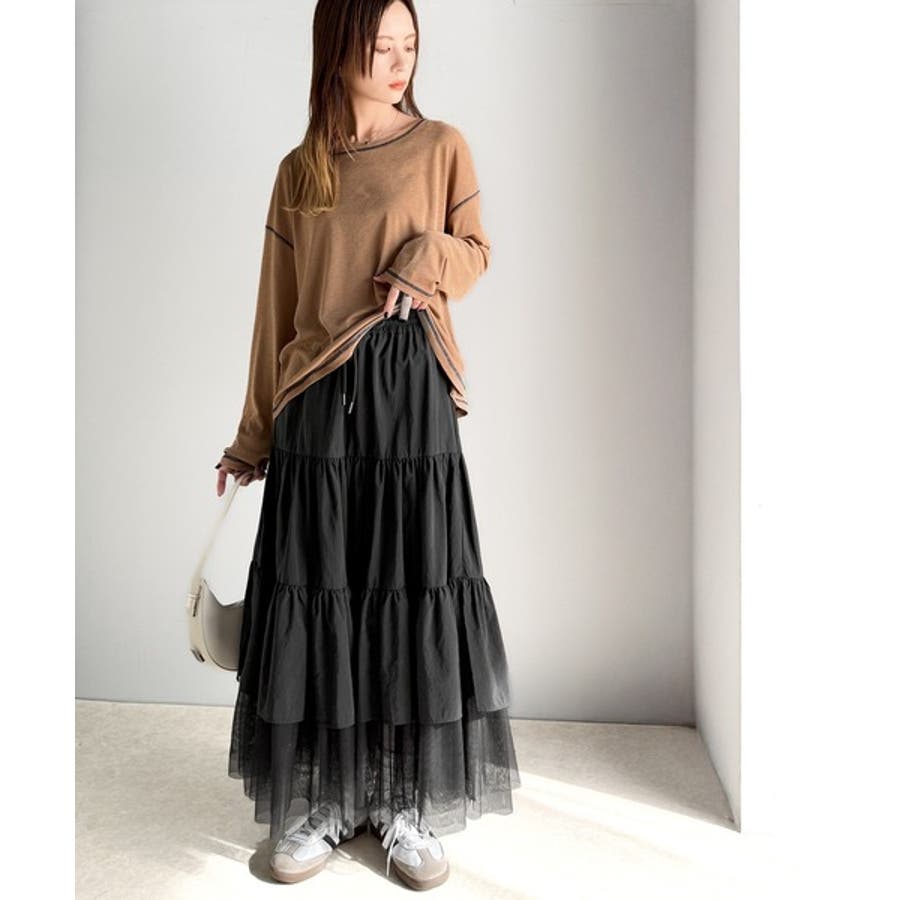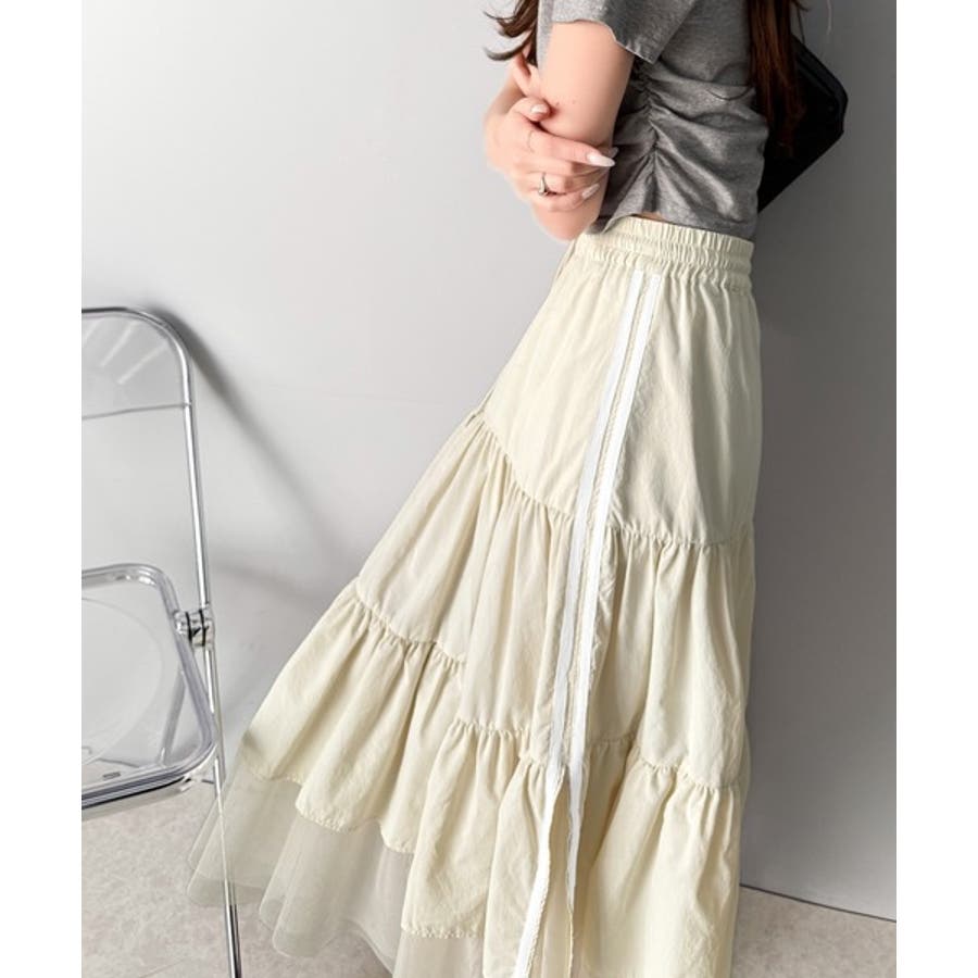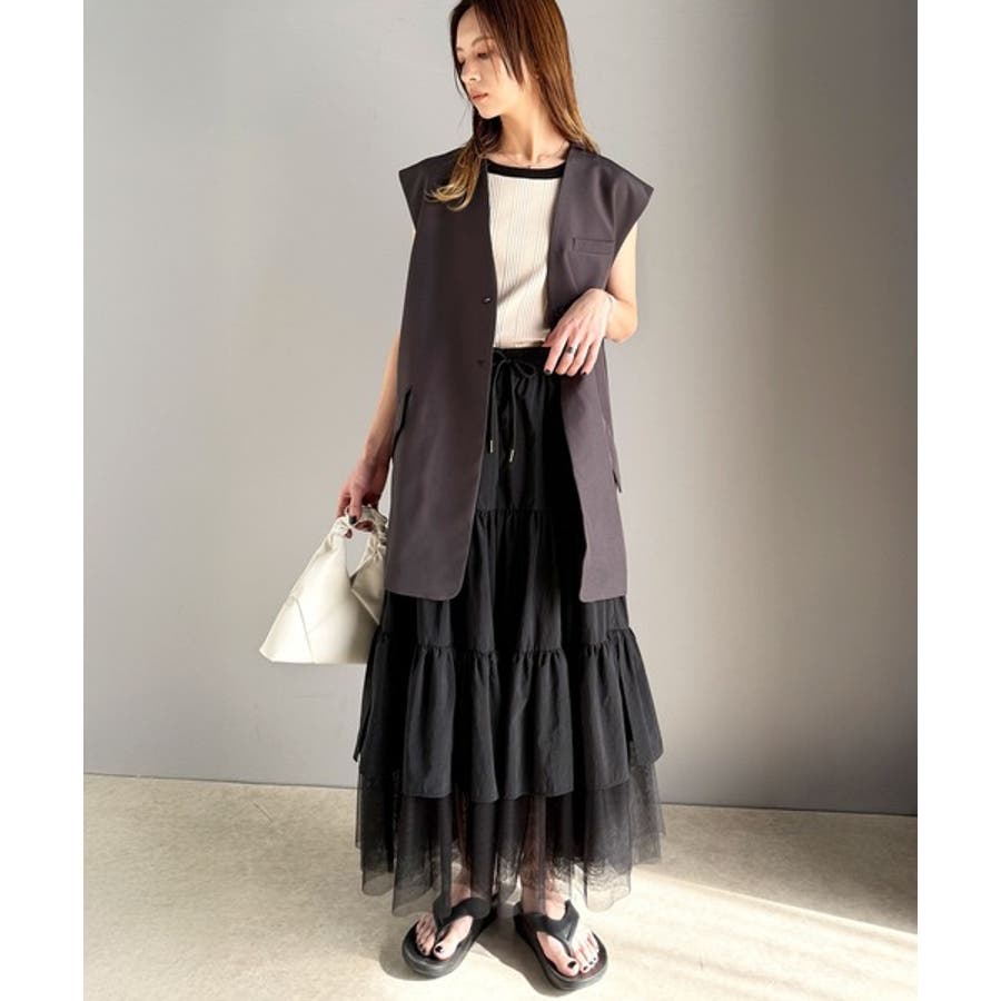 大人の愛されスカート。ナイロンチュールティアード ロングスカート (サイドライン…
