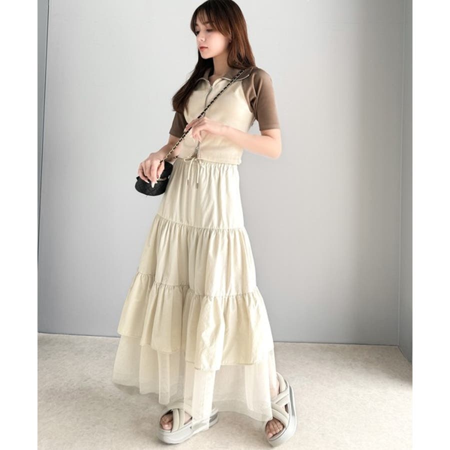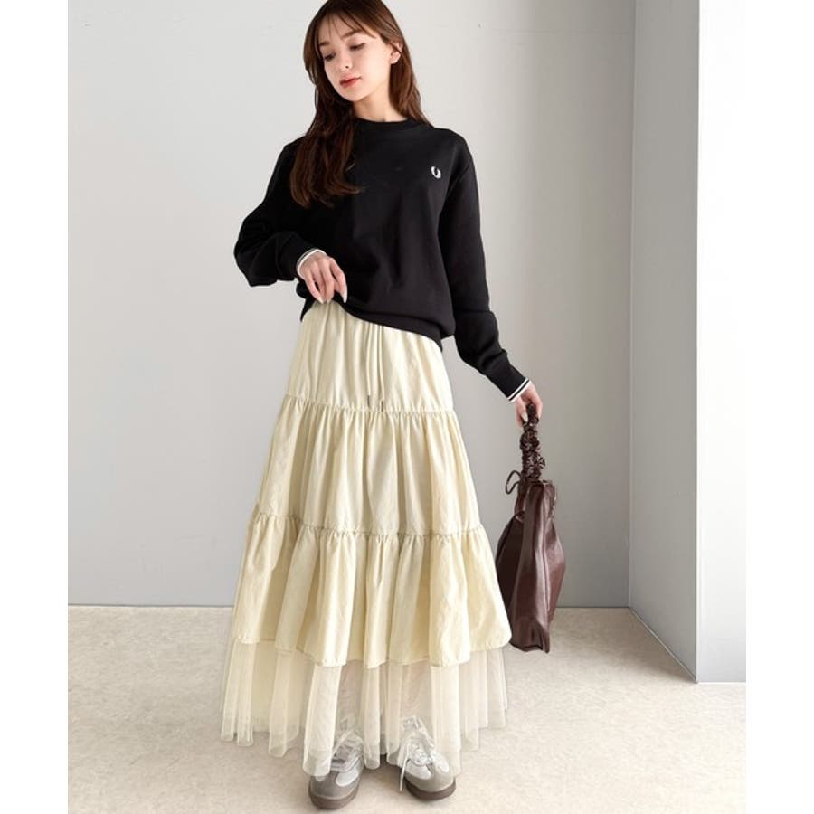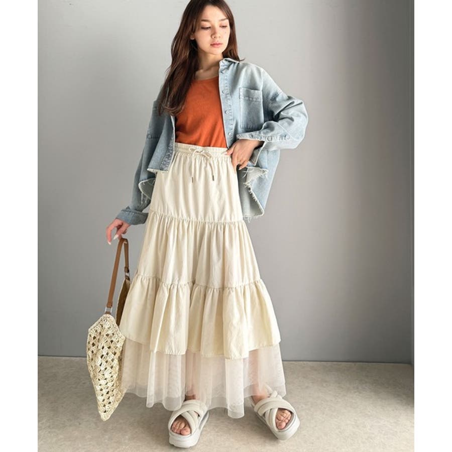 ふわっと揺れるティアードスカートで、上品なカジュアルスタイルを楽しんで♪