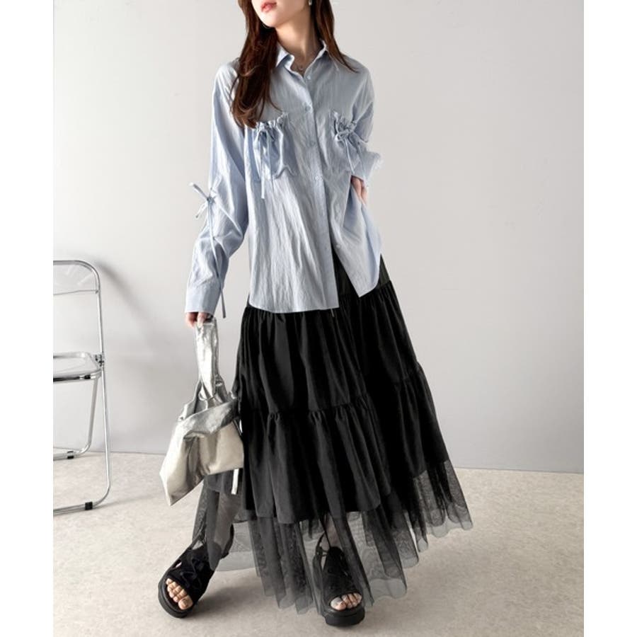 裾部分にはレイヤード風にチュール素材をドッキングし、