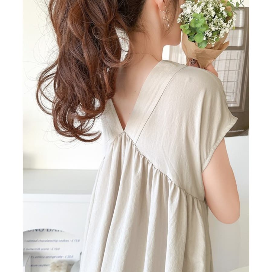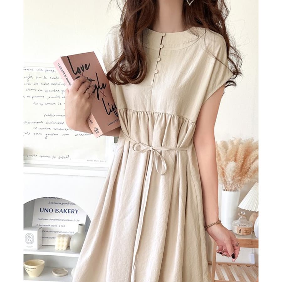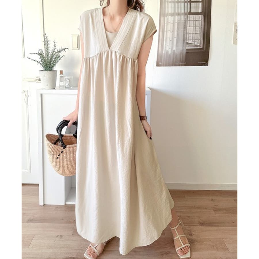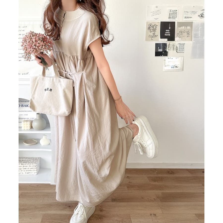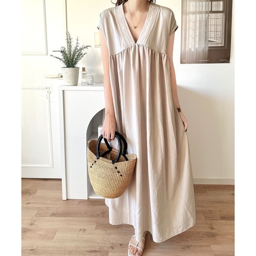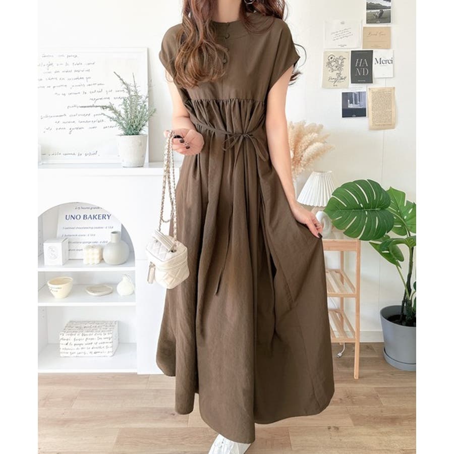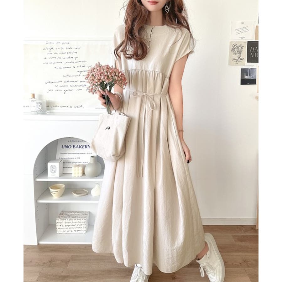 洗練された大人の抜け感を演出するギャザーワンピース。