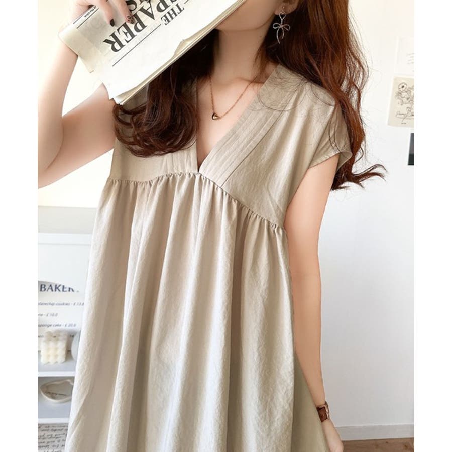 夏に良さそうな生地で、涼しく着れそうです。サイズ的には余裕がある印象です。薄い色だと透けるのが気になるかもしれません。旅行に持って行ってもかさばらず良さそう。
