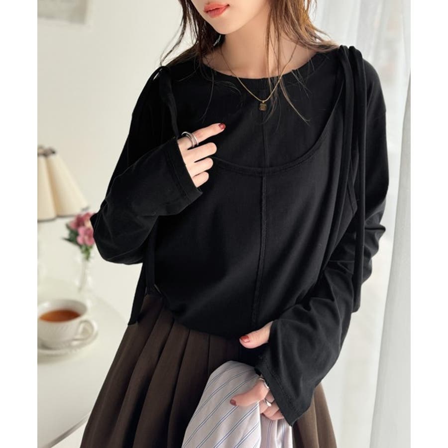 着映え感が叶うデザイン!綿100%マルチウェイ重ね着風フィンガーホールカットソー…