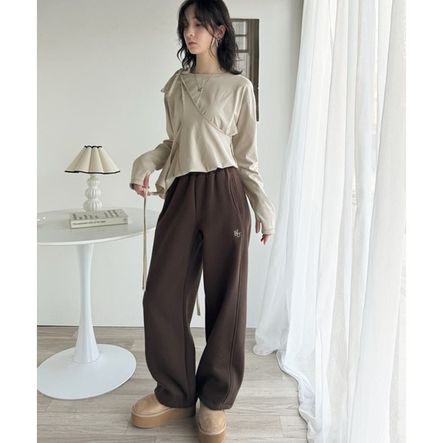 ボトムスには、ゆったりとしたテーパードパンツをチョイスし、
