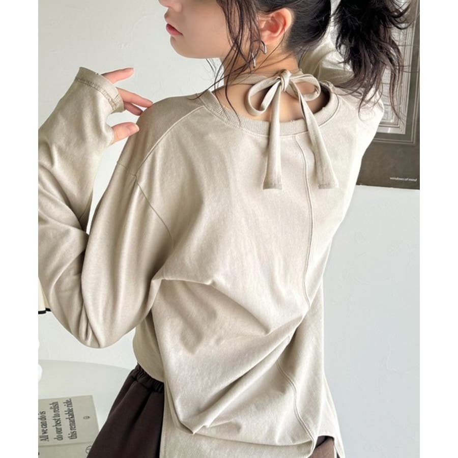 袖口にトレンドのフィンガーホールをプラスした長めの袖もくしゅくしゅ感が可愛い。