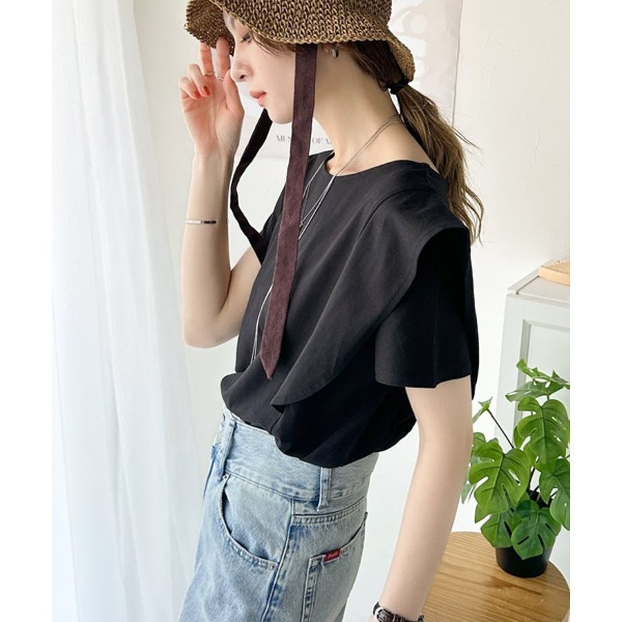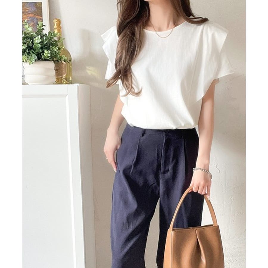 シンプルながら、女性らしいラッフル付きのモテ愛されTシャツ。