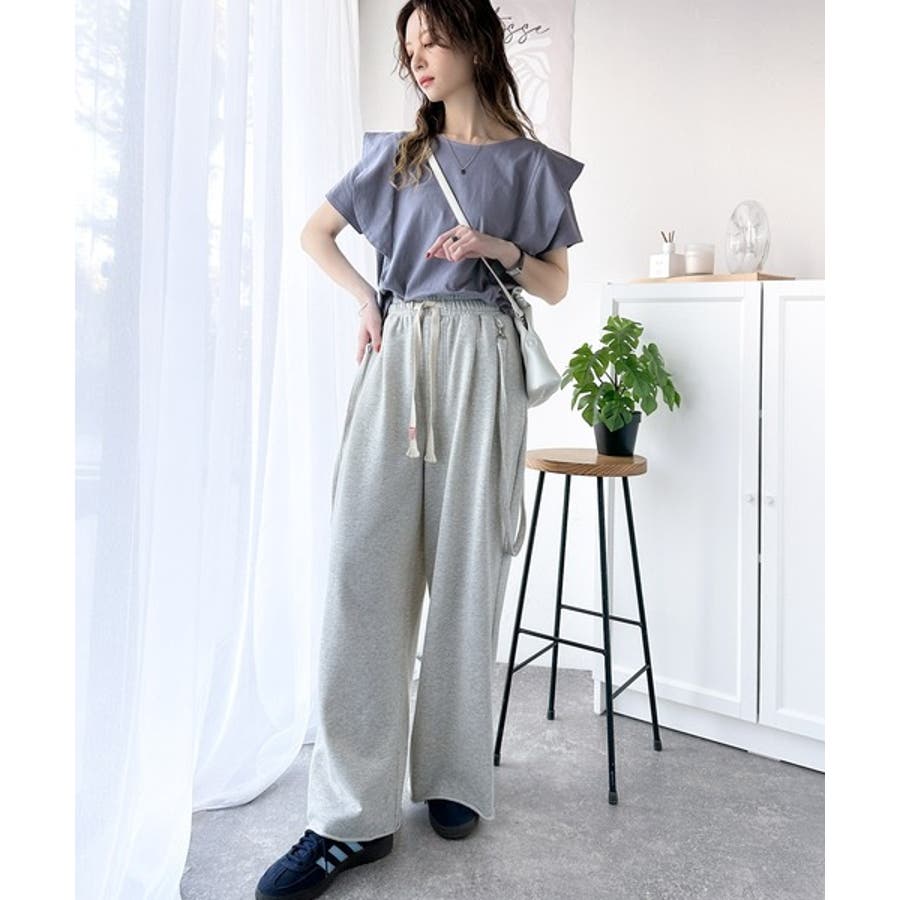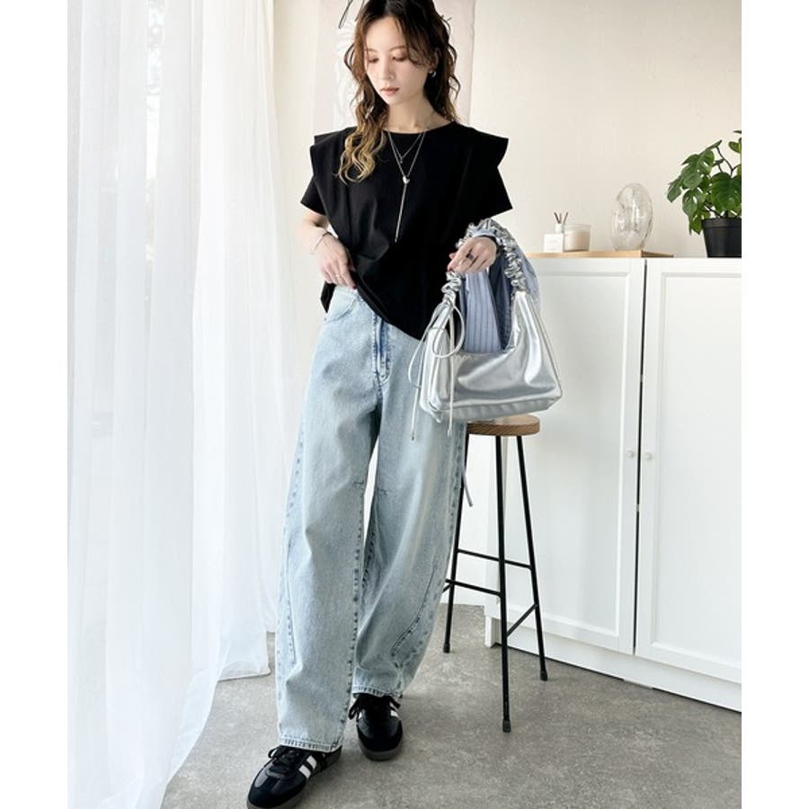 ラッフルショルダーが気になる二の腕をさり気なくカバーできるのも嬉しいポイント。