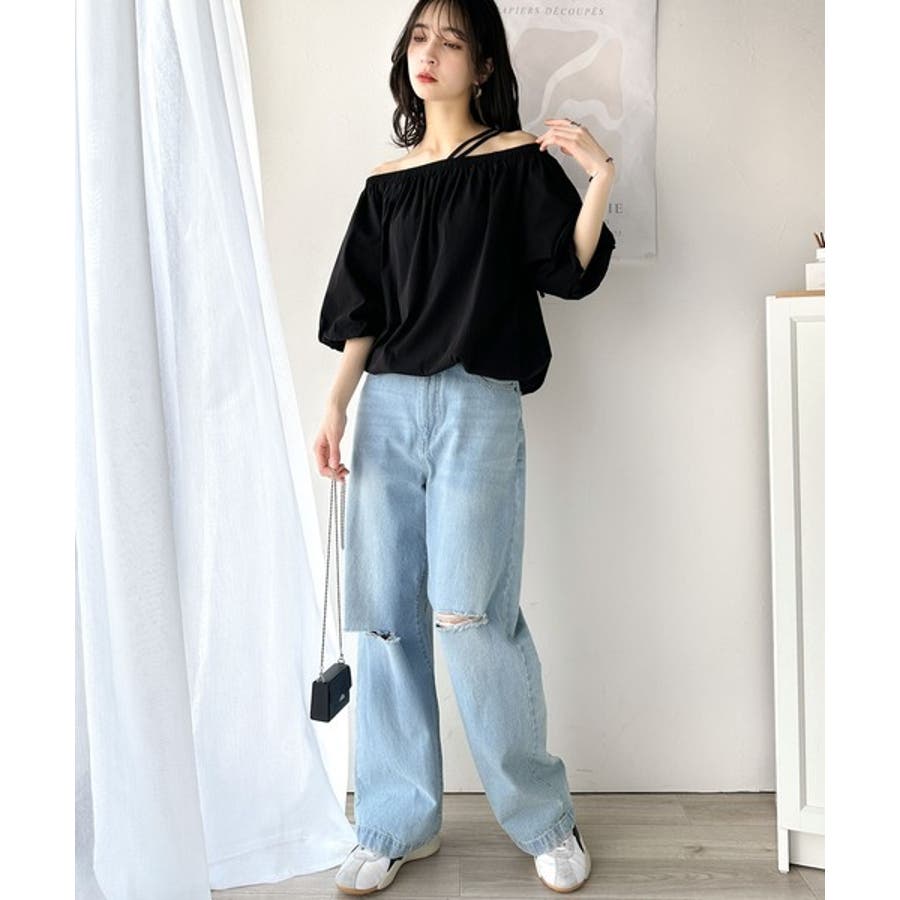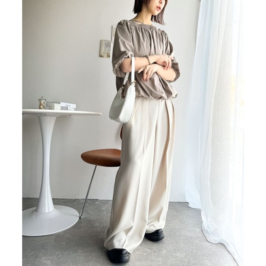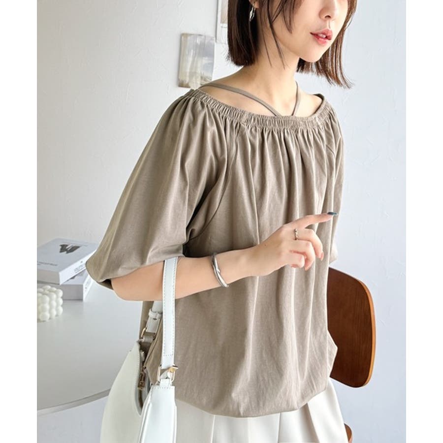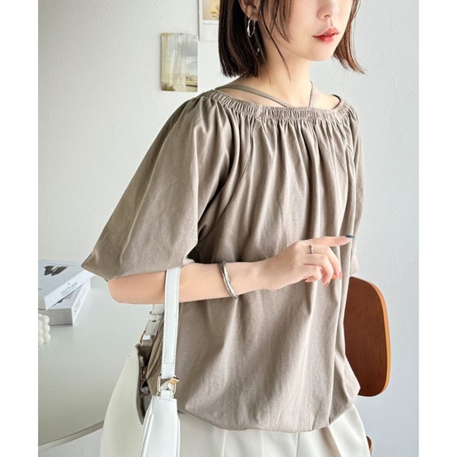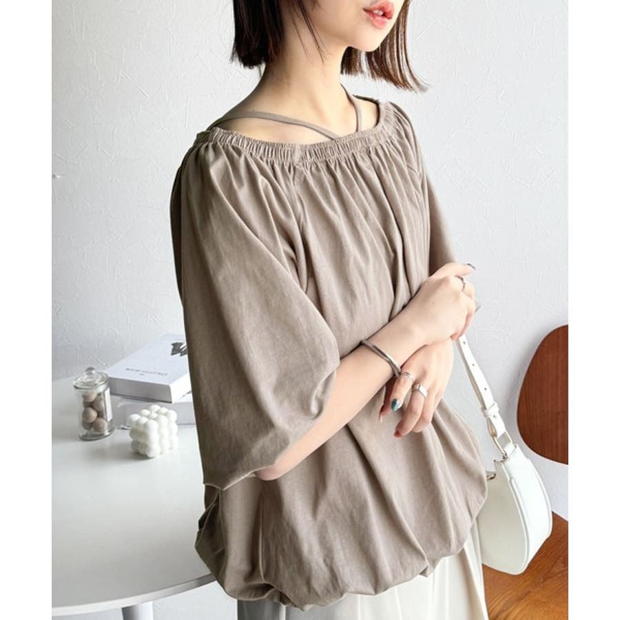 抜け感たっぷりの旬顔。マルチway綿100%シルケット加工ギャザー使いバルーンシ…
