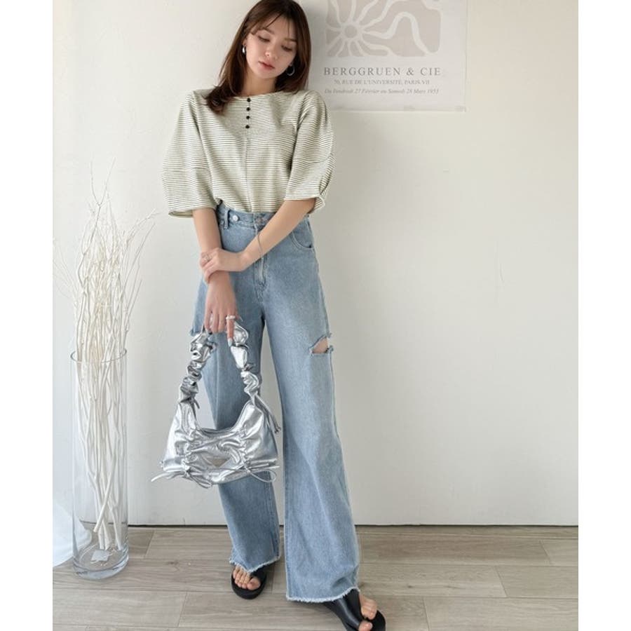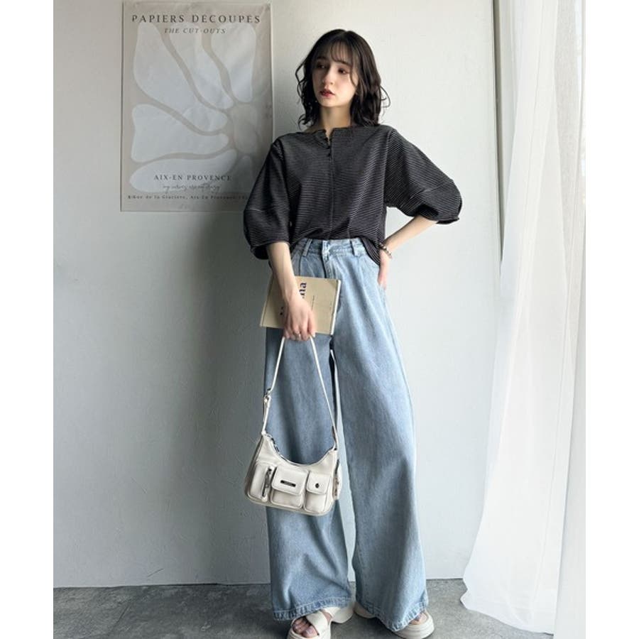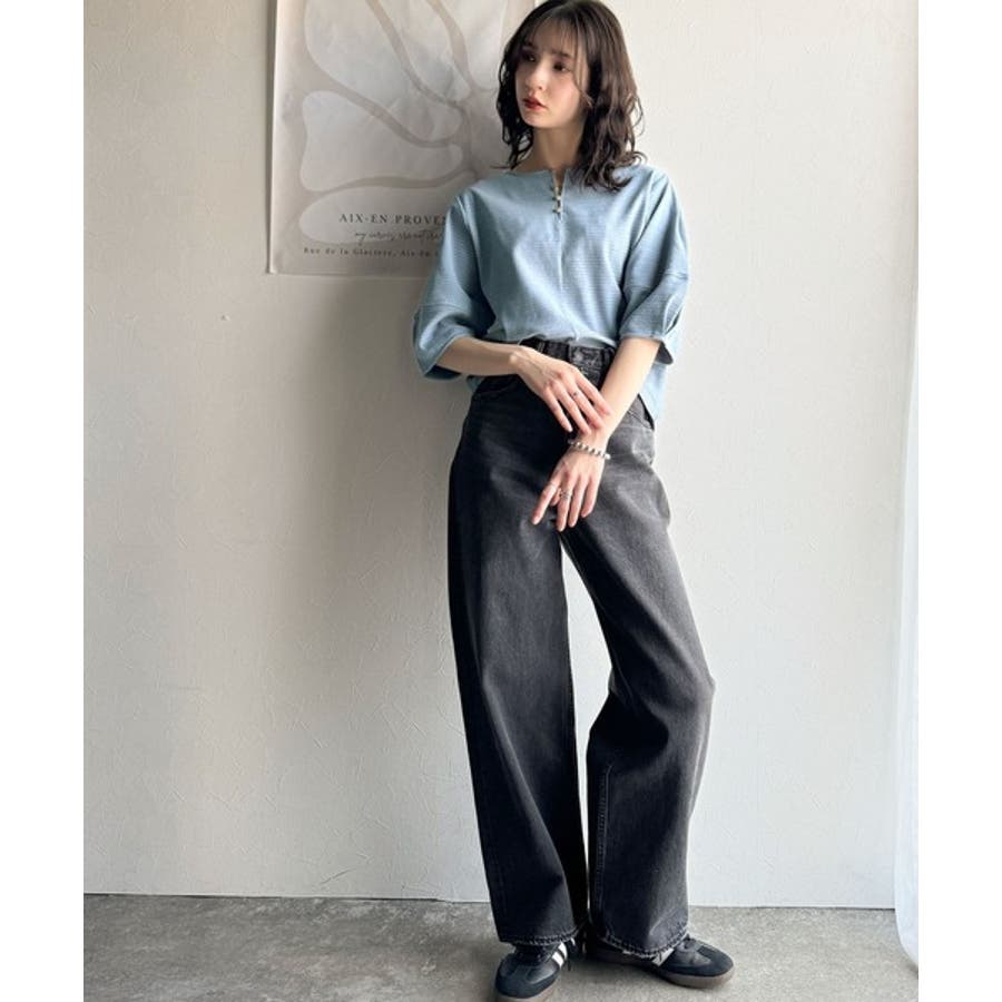 その日の気分に合わせてカーブデニムやフレアパンツを合わせてもOK◎
