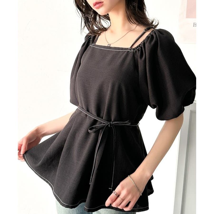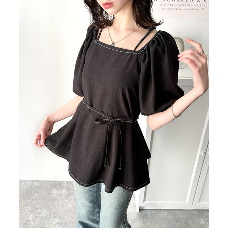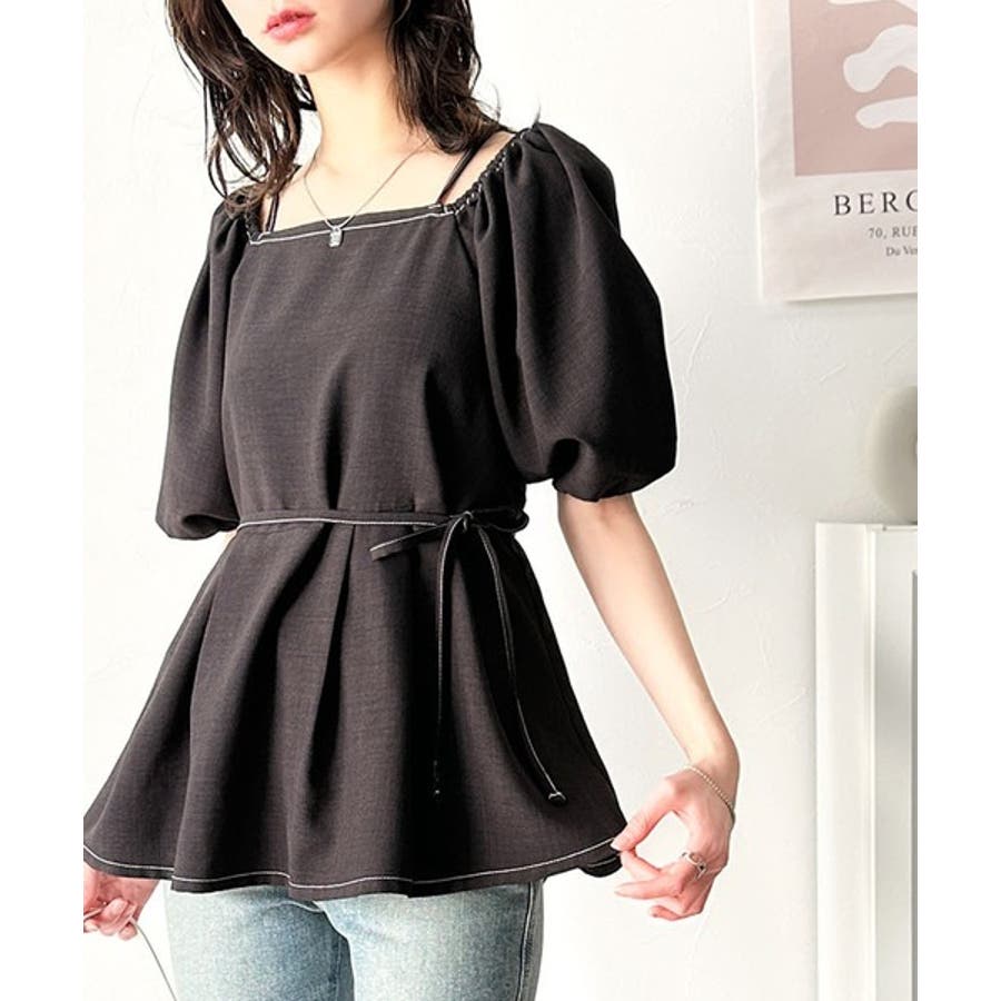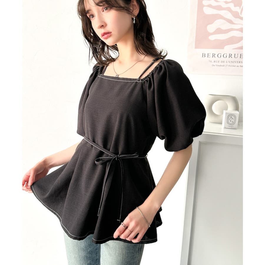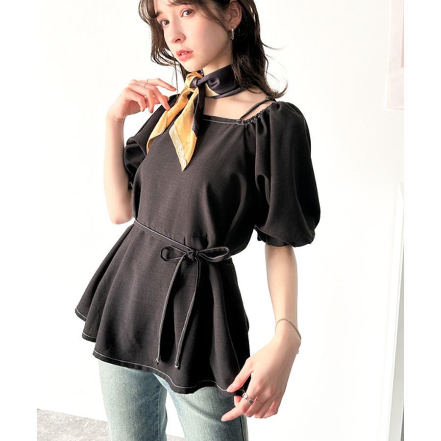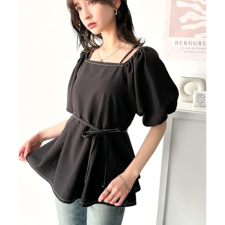 トレンド感たっぷり!2way配色ステッチペプラムブラウス(半袖)