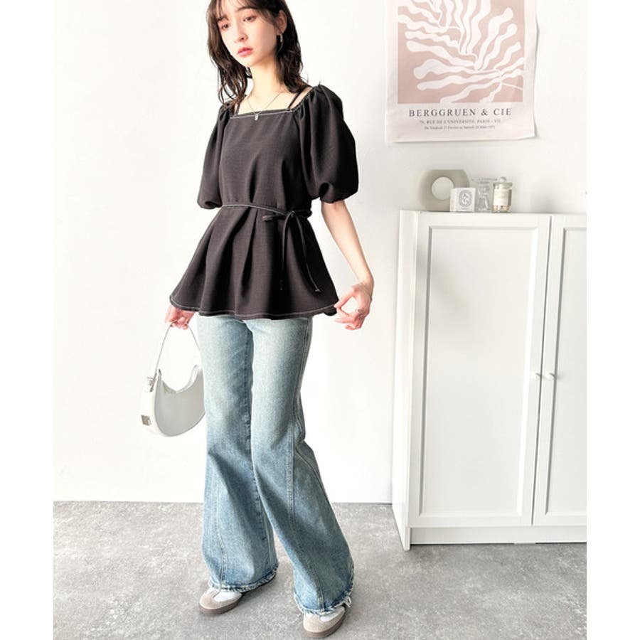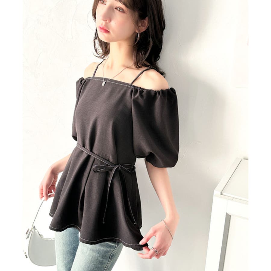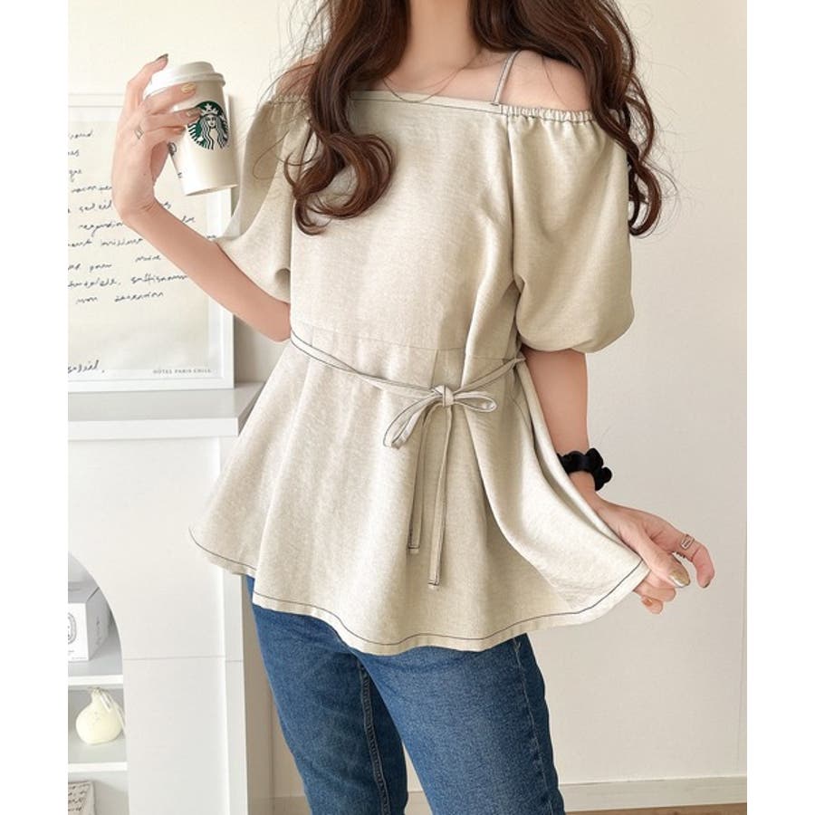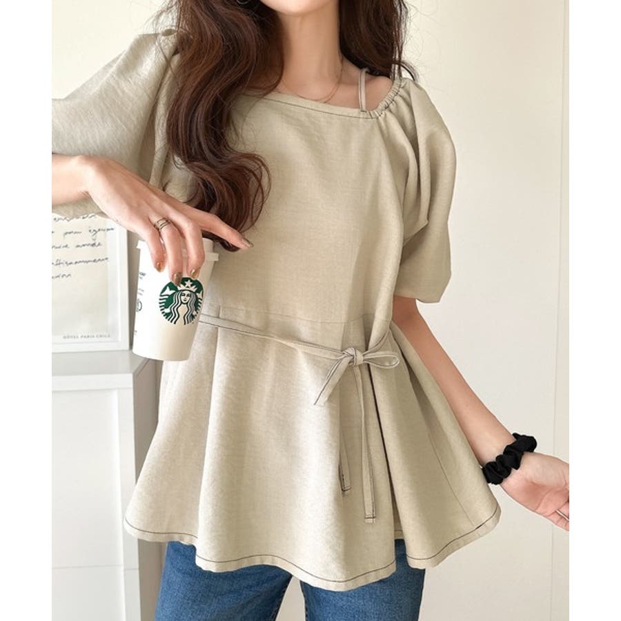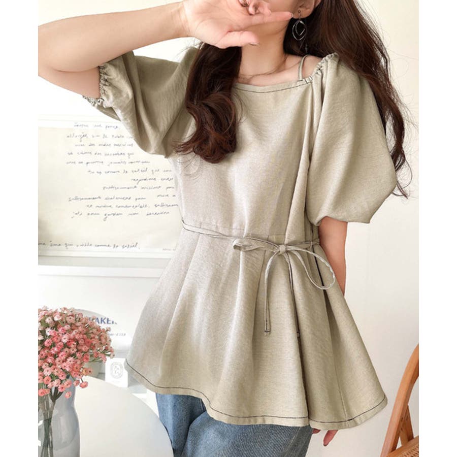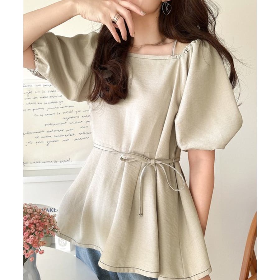 トレンド感たっぷり!2way配色ステッチペプラムブラウス(半袖)