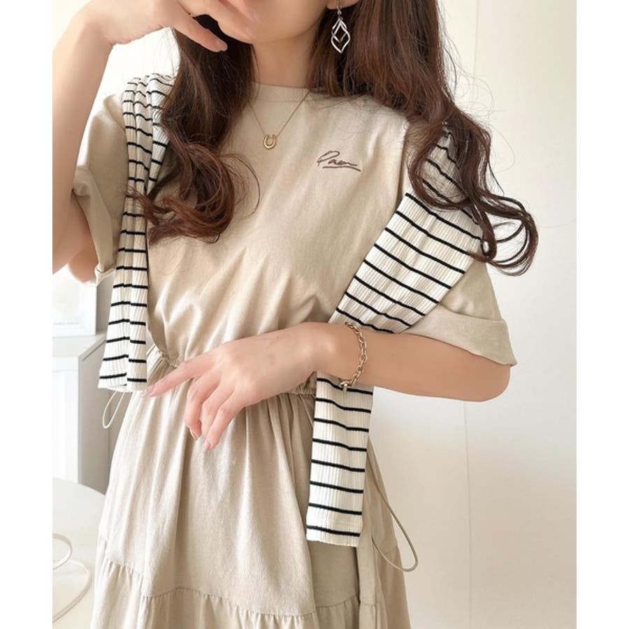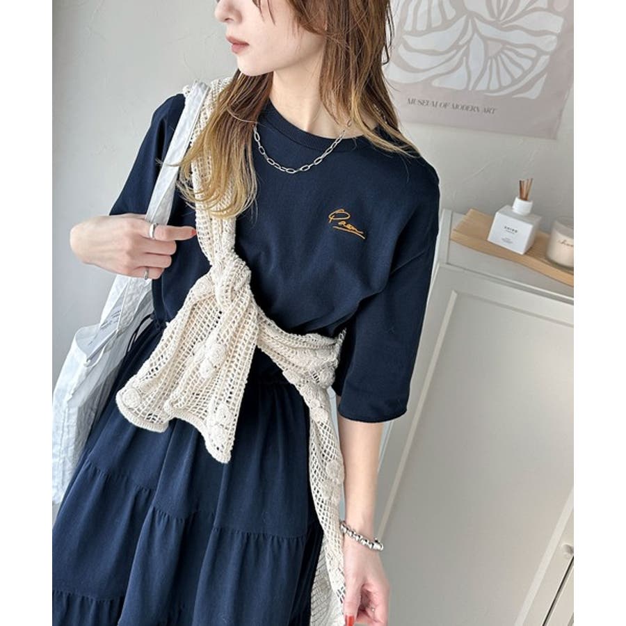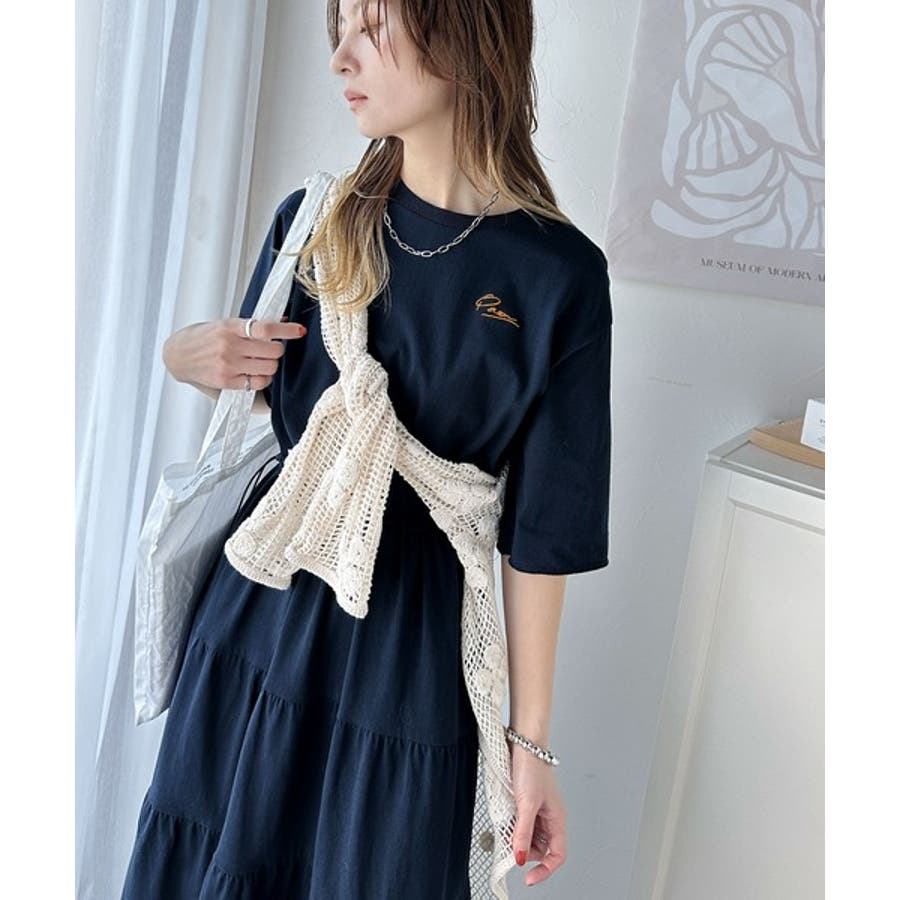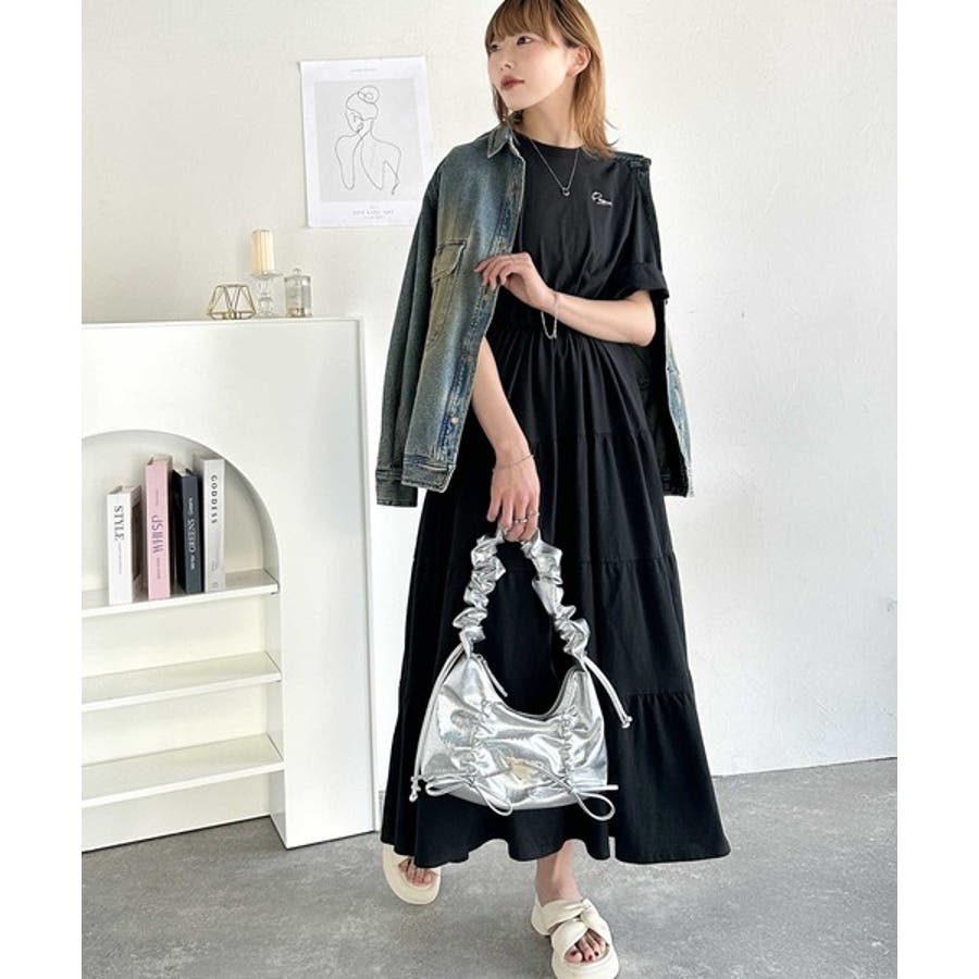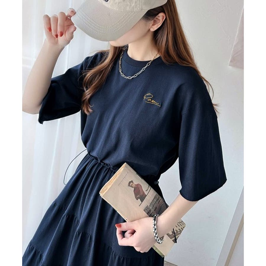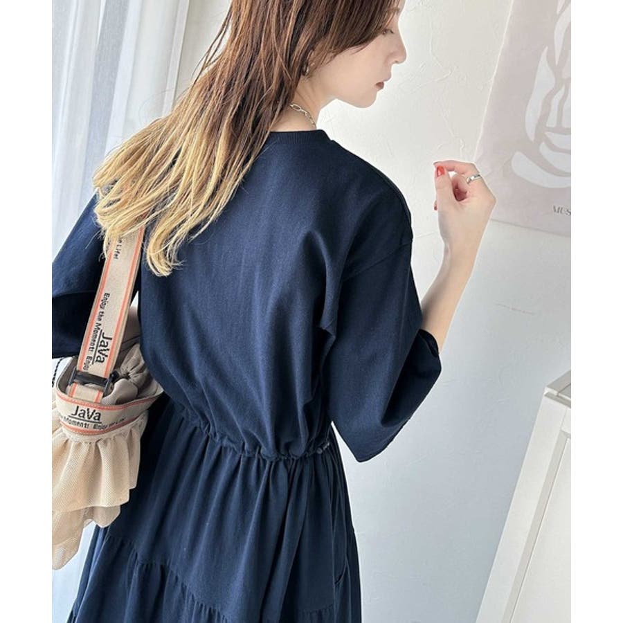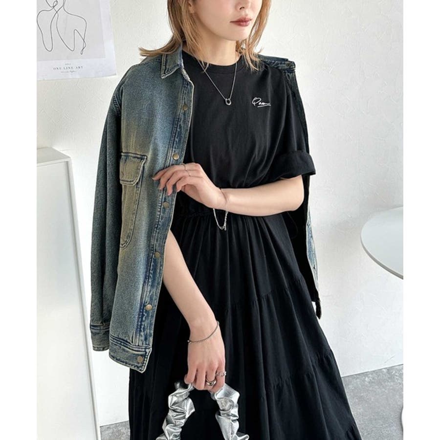 女性らしさを引き立てるデザインが魅力。胸刺繍ドロストティアードワンピース
