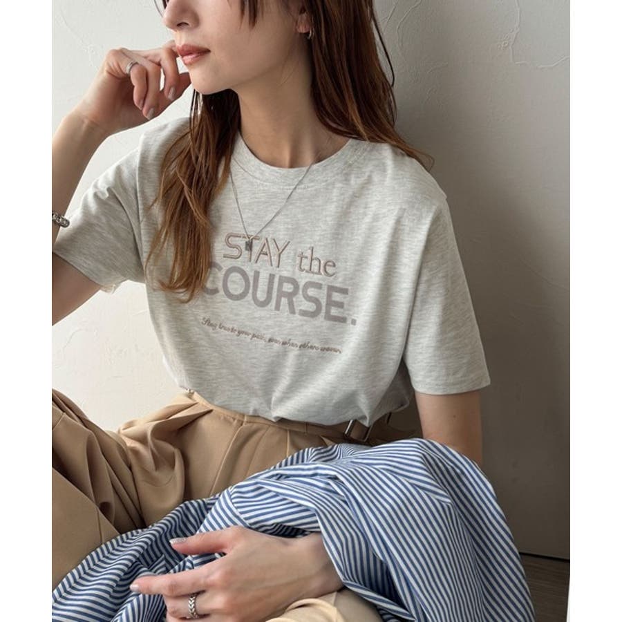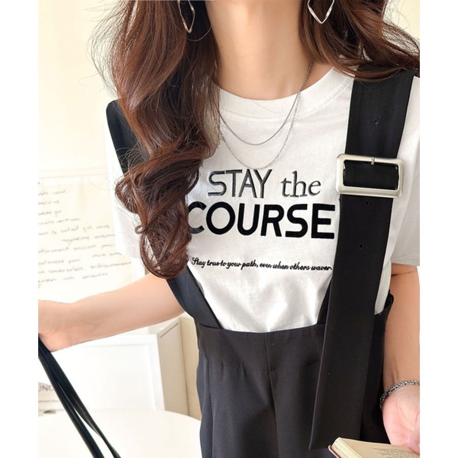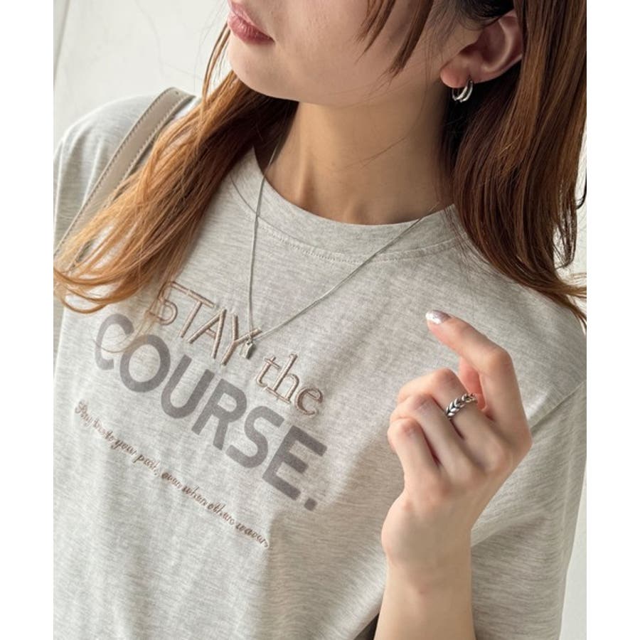 オーガニックコットン100%で刺繍とフロッキープリントデザインのsustaina+アイテムです。