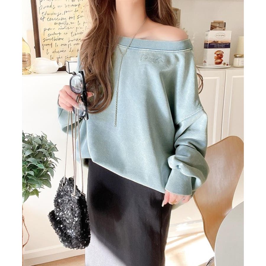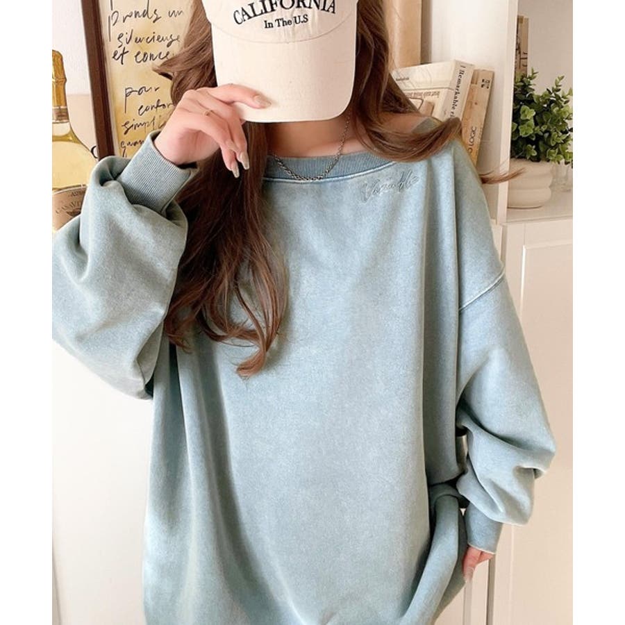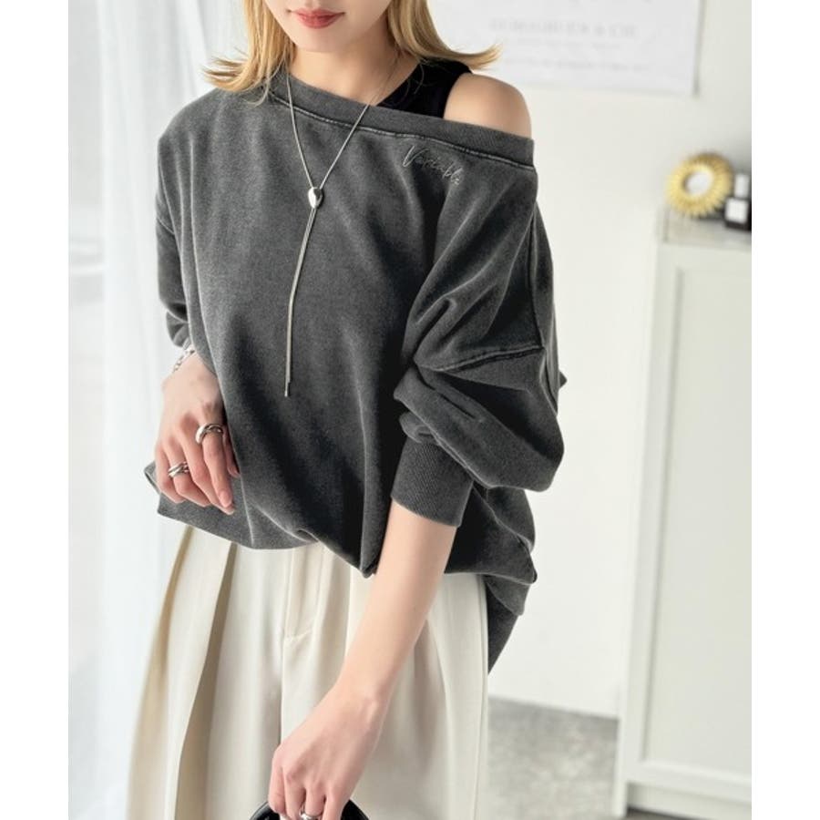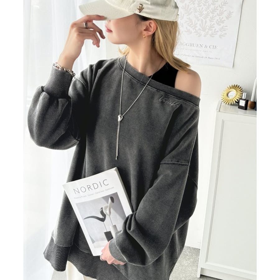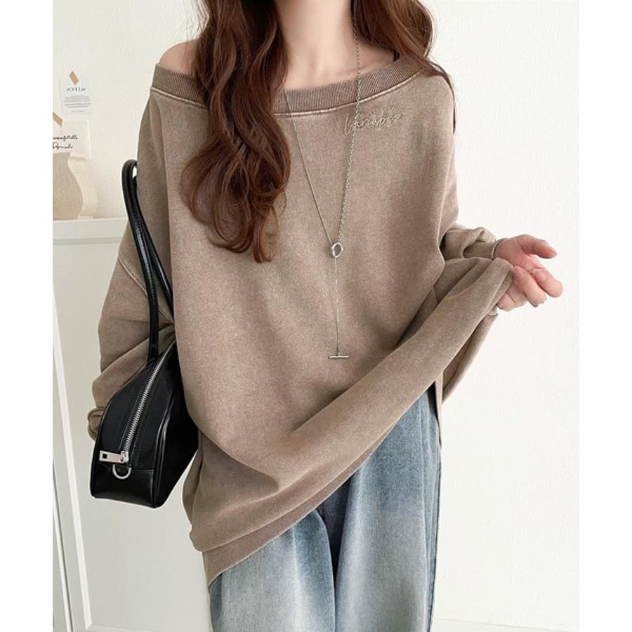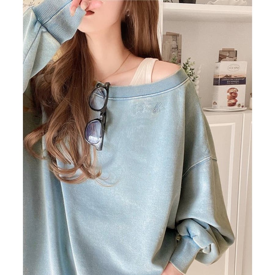 大人可愛いゆるスタイル。前後2WAYヴィンテージ加工スウェットオフショルワンポイ…