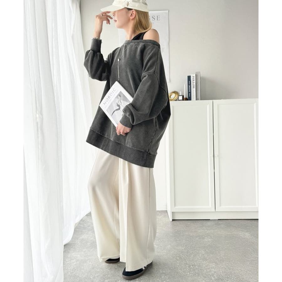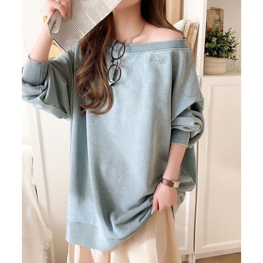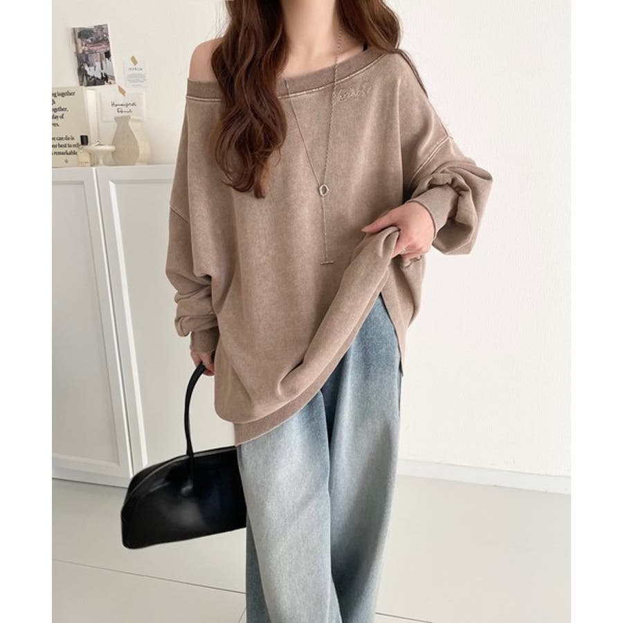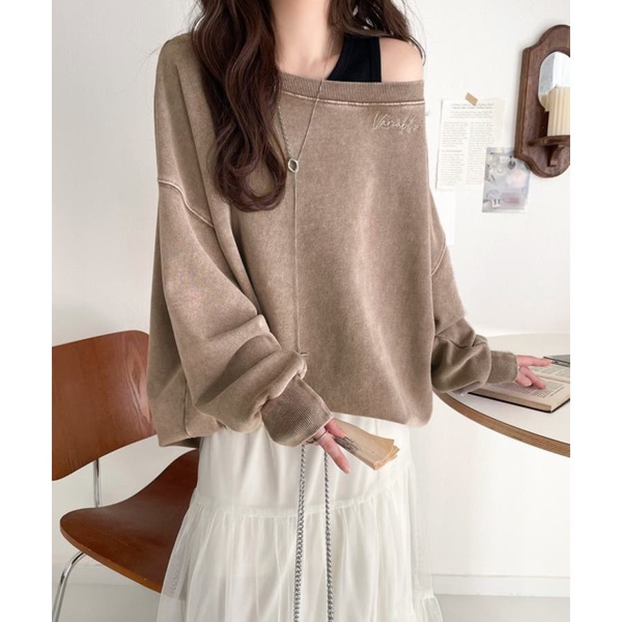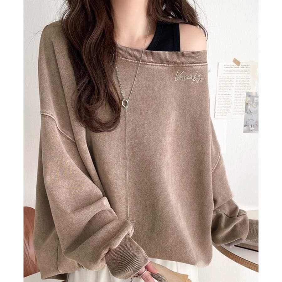 大人可愛いゆるスタイル。前後2WAYヴィンテージ加工スウェットオフショルワンポイ…