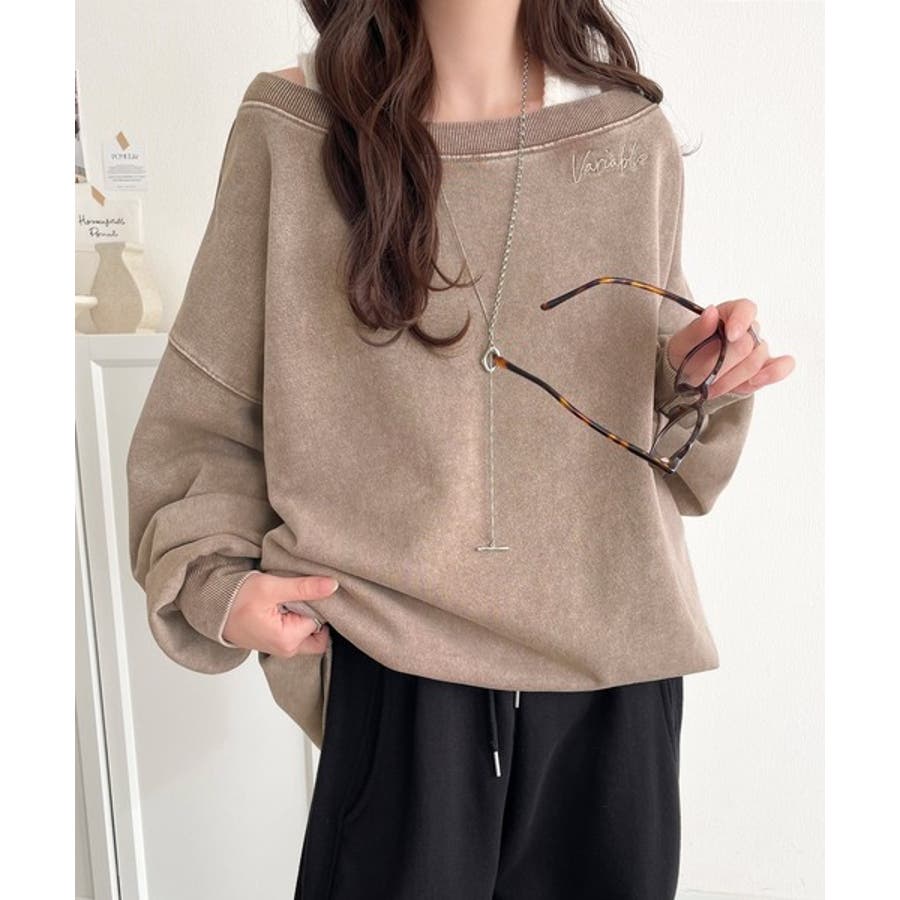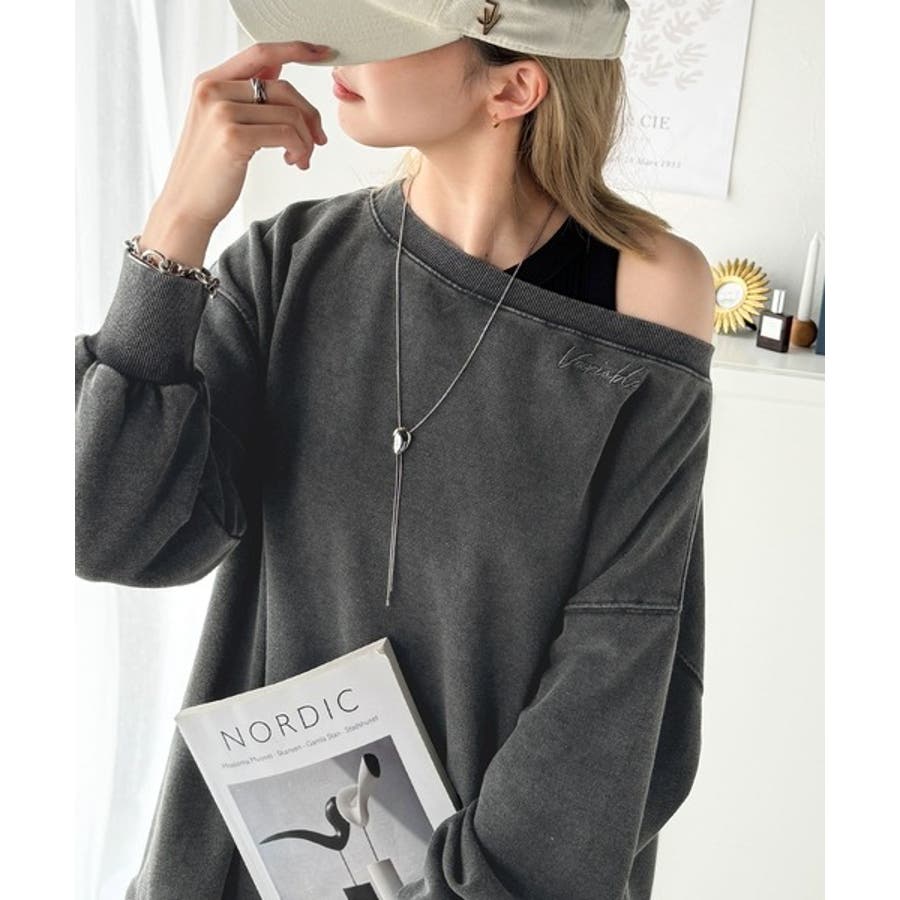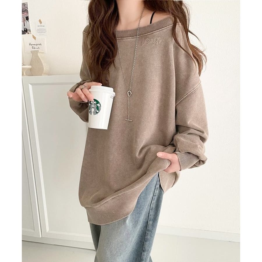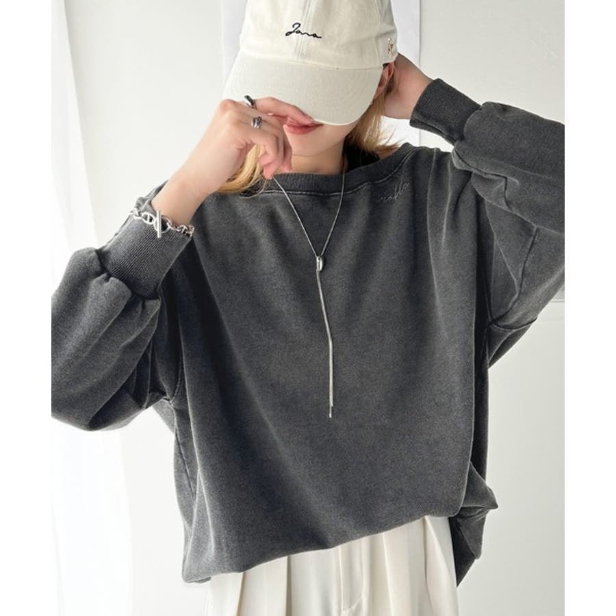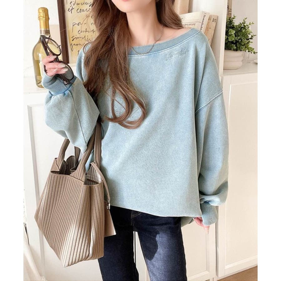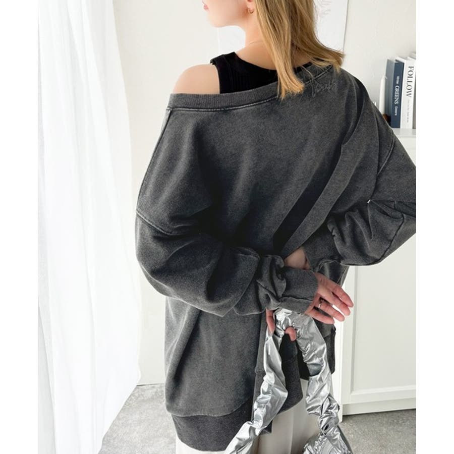 大人可愛いゆるスタイル。前後2WAYヴィンテージ加工スウェットオフショルワンポイ…