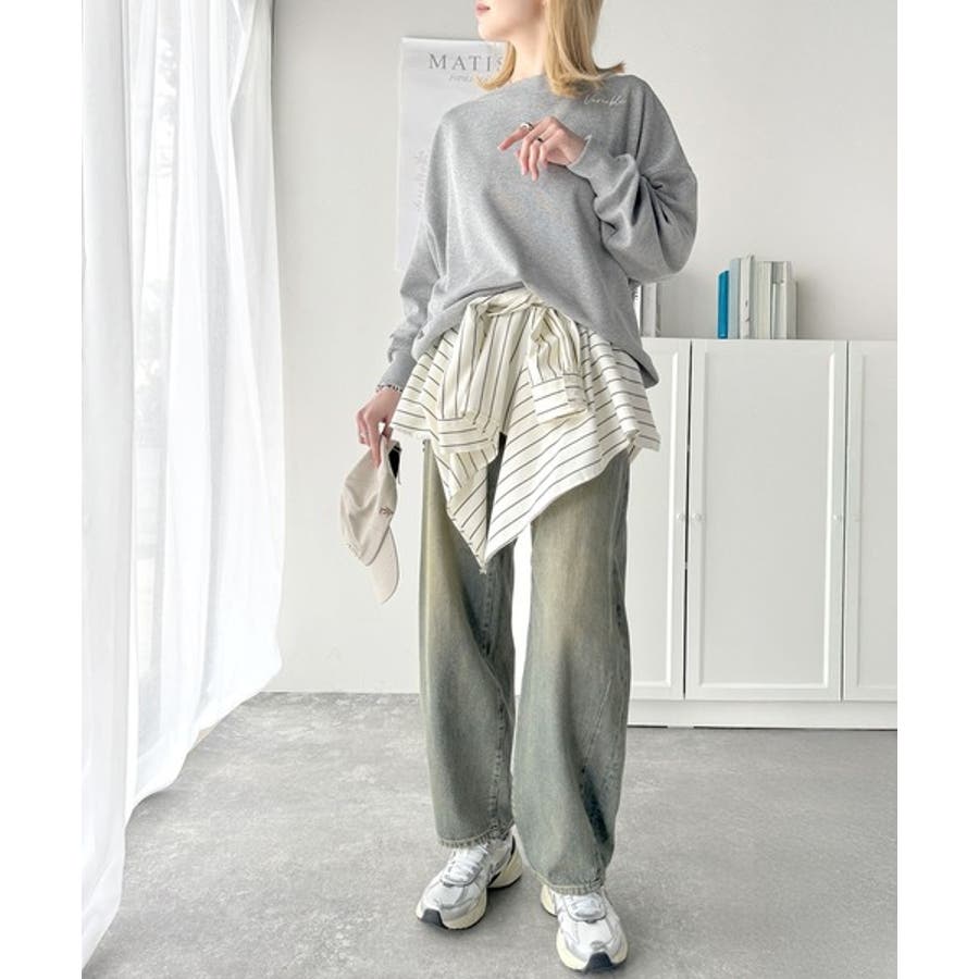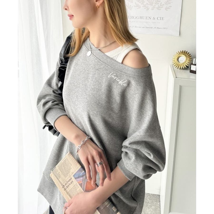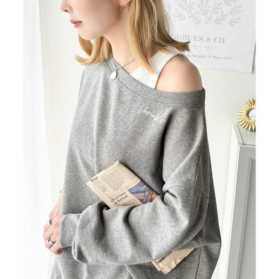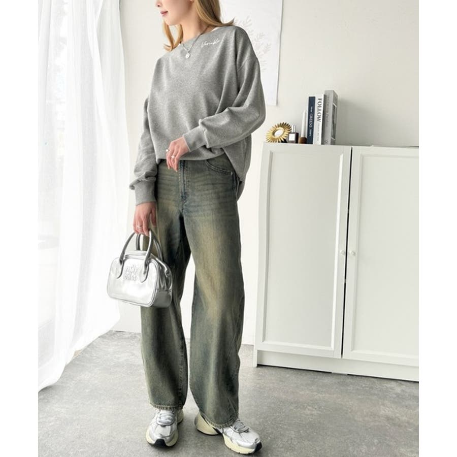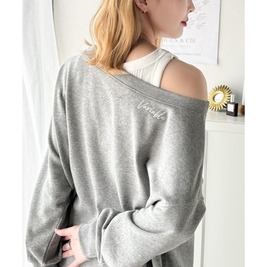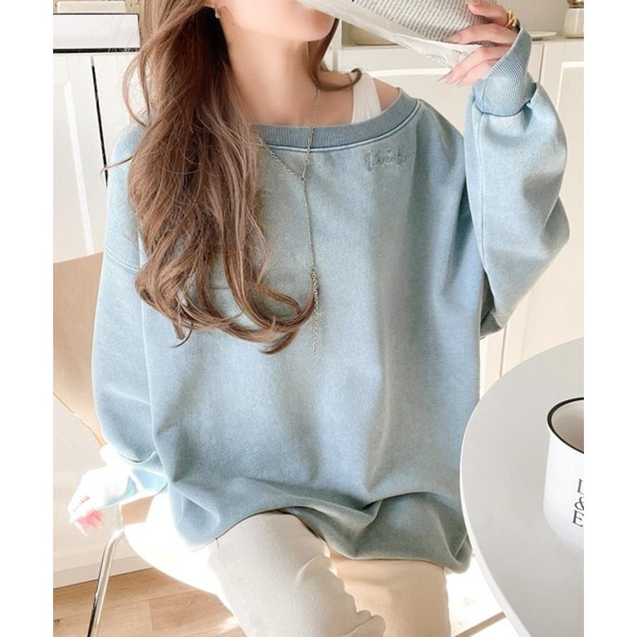 大人可愛いゆるスタイル。前後2WAYヴィンテージ加工スウェットオフショルワンポイ…