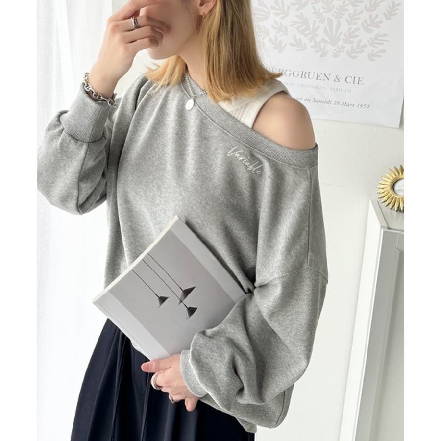 さりげないワンポイント刺繍がおしゃれなオフショルプルオーバー