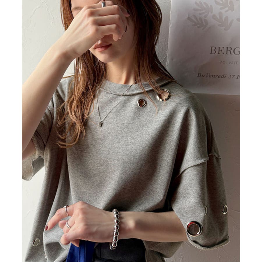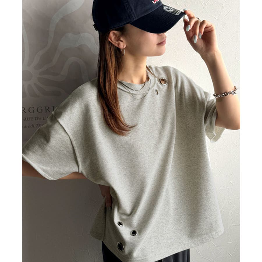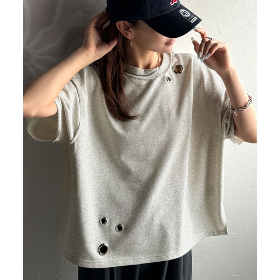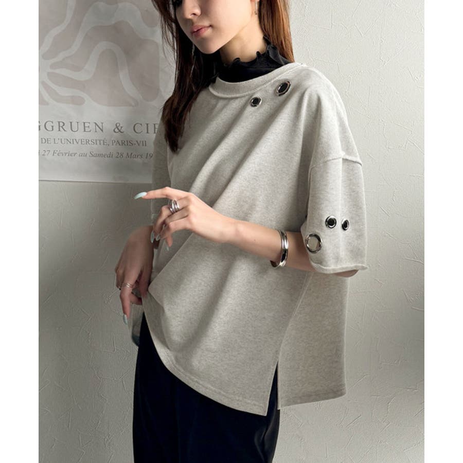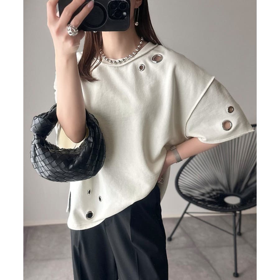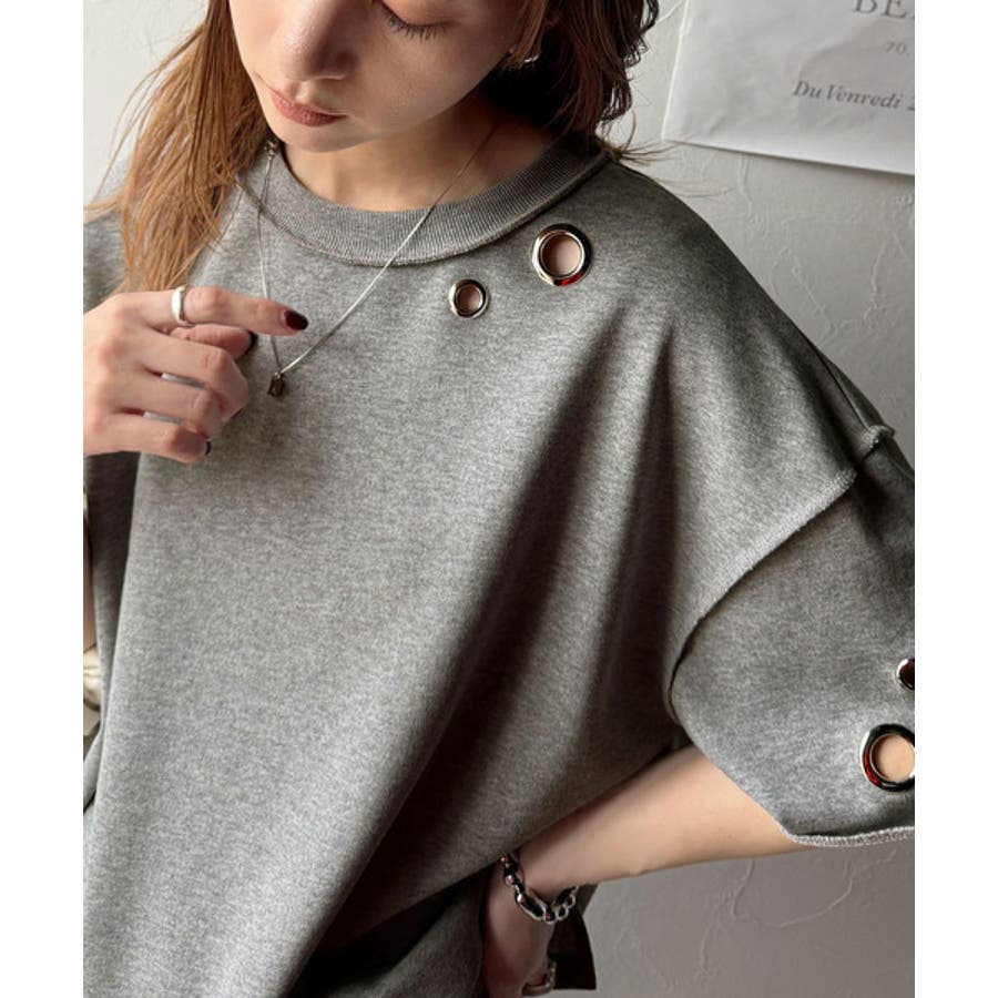 エッジの効いたデザイン☆リングハトメ裏毛半袖スウェット