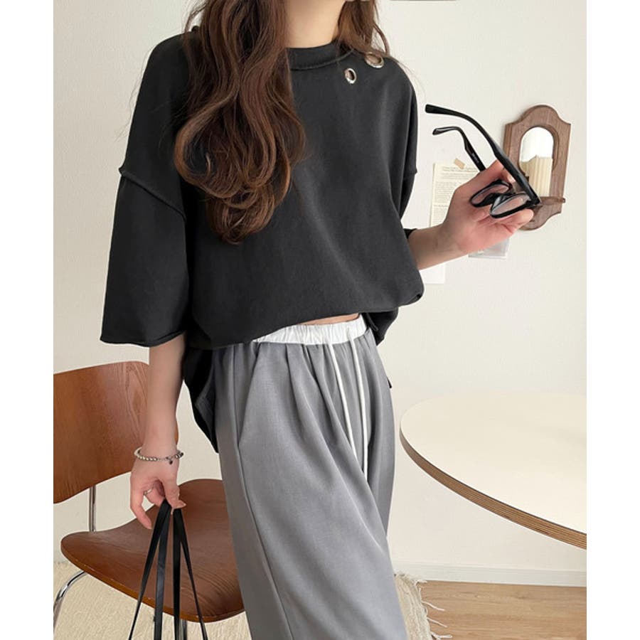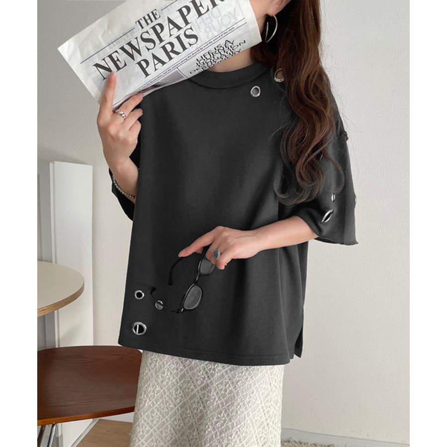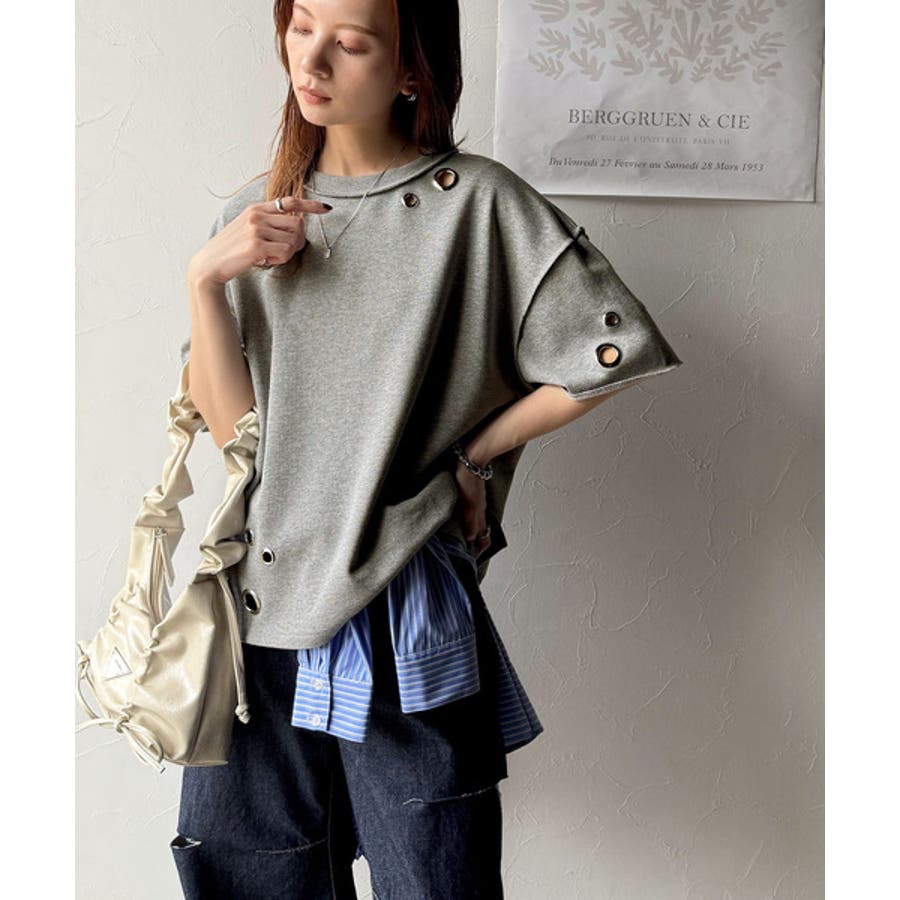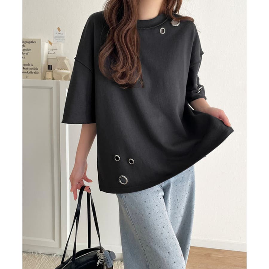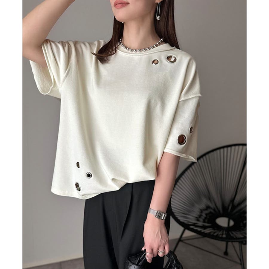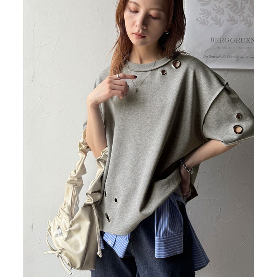 エッジの効いたデザイン☆リングハトメ裏毛半袖スウェット