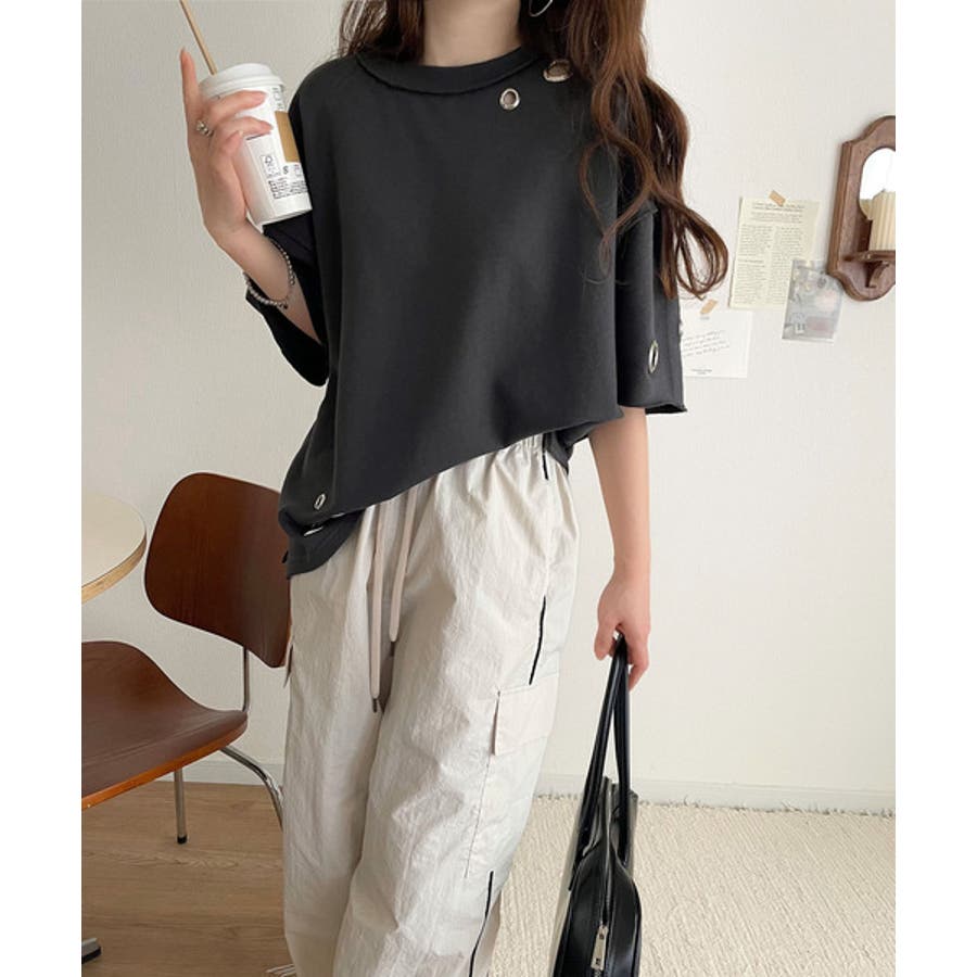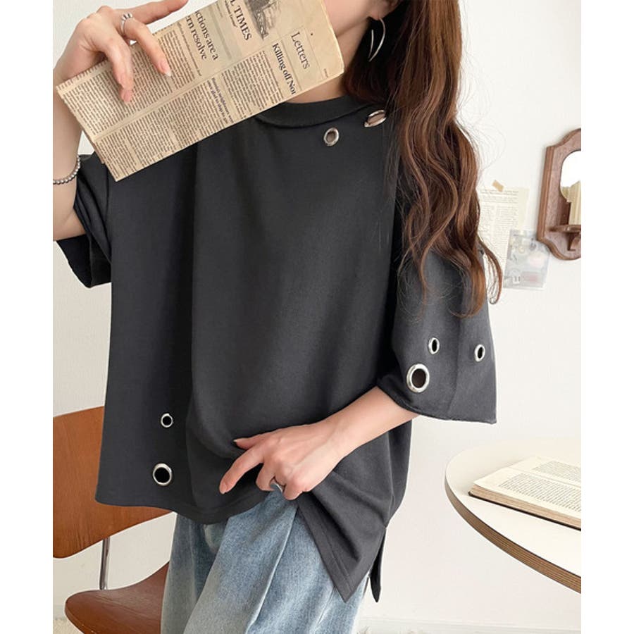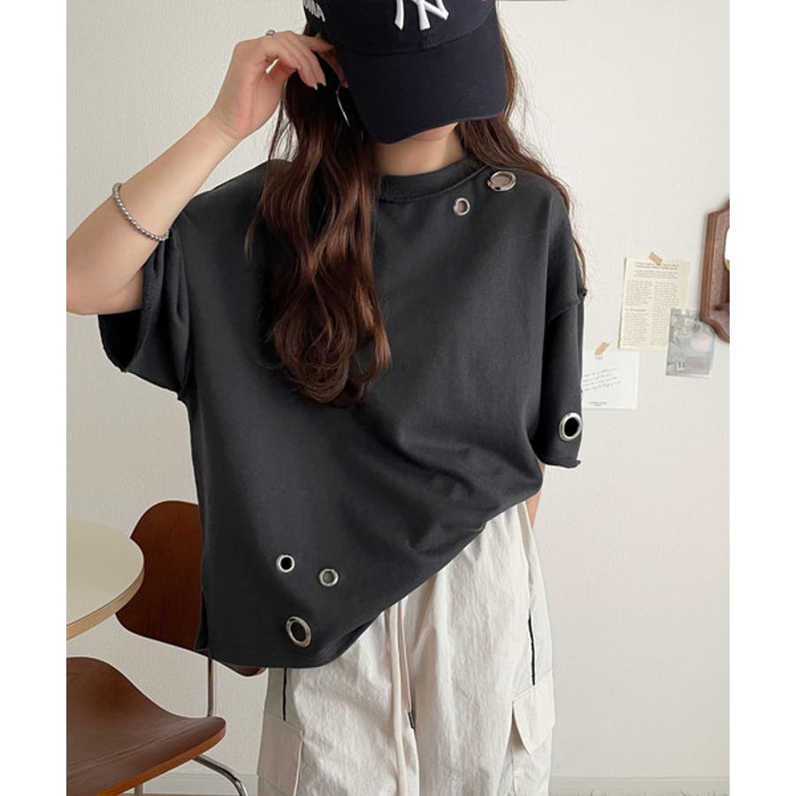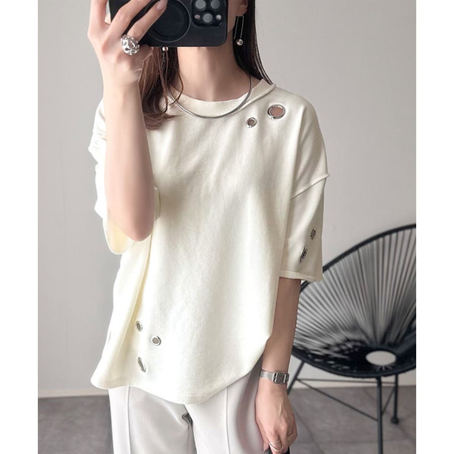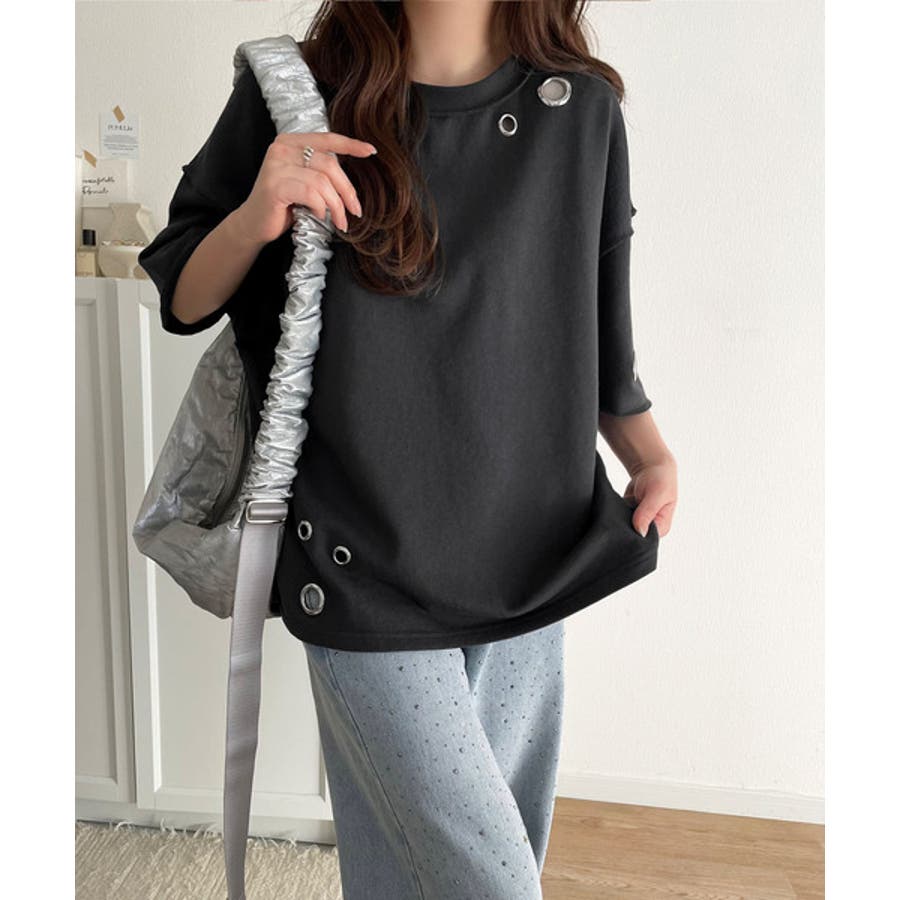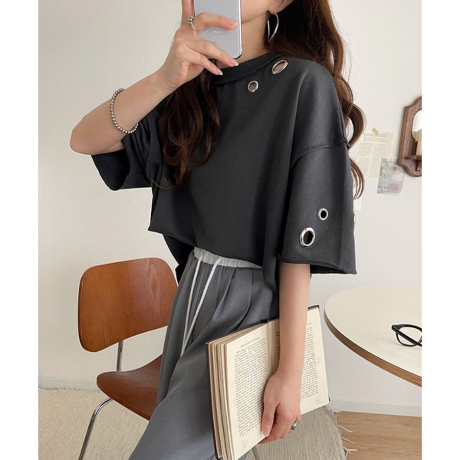 エッジの効いたデザイン☆リングハトメ裏毛半袖スウェット