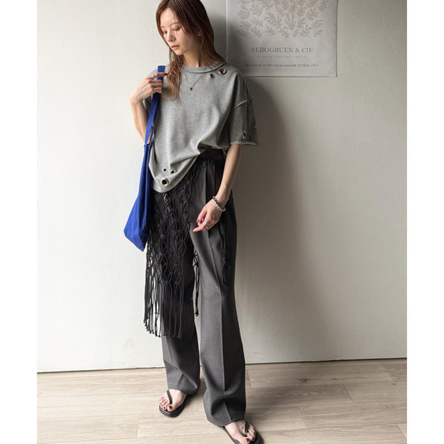 ランダムサイズのリングハトメがエッジの効いたデザインを演出。