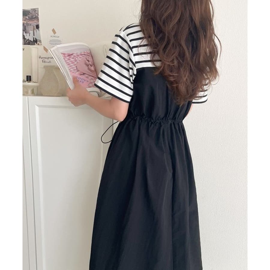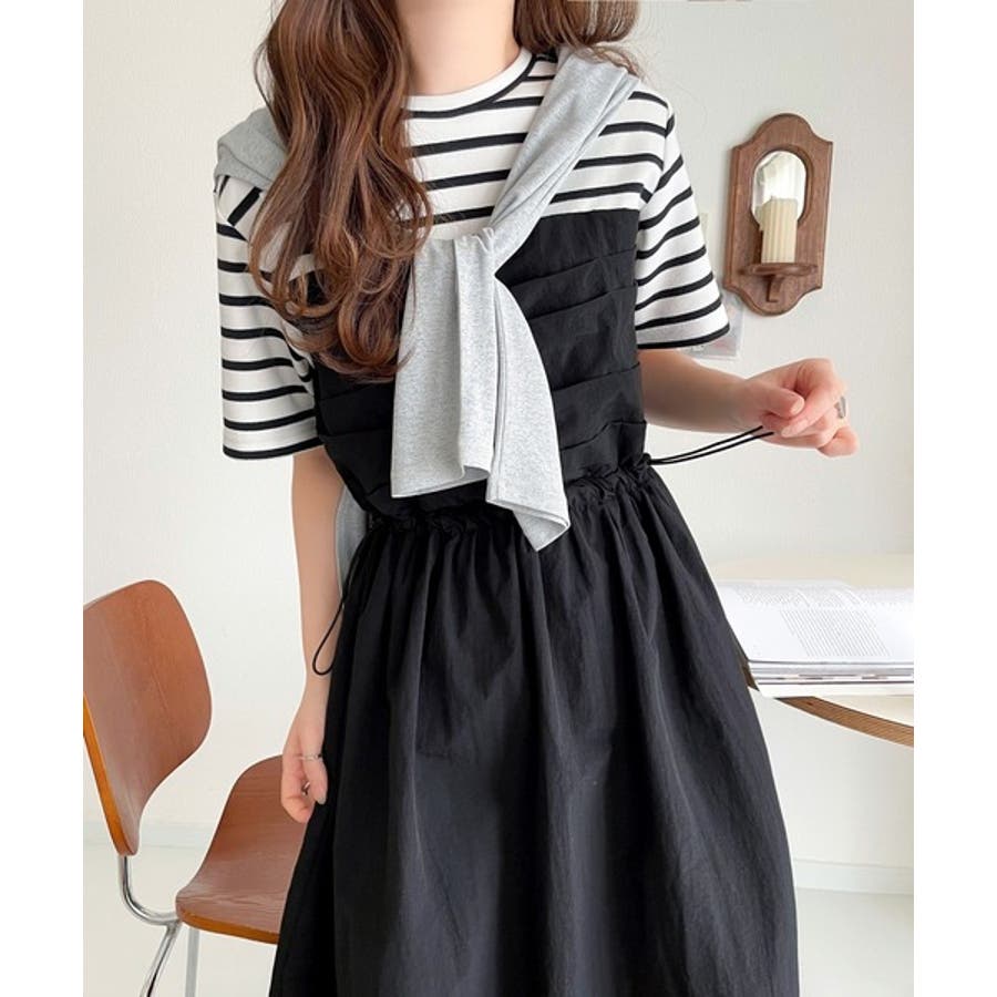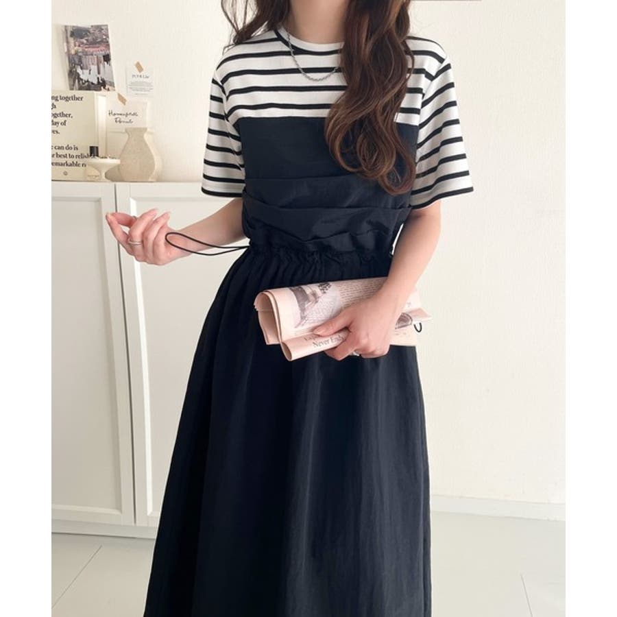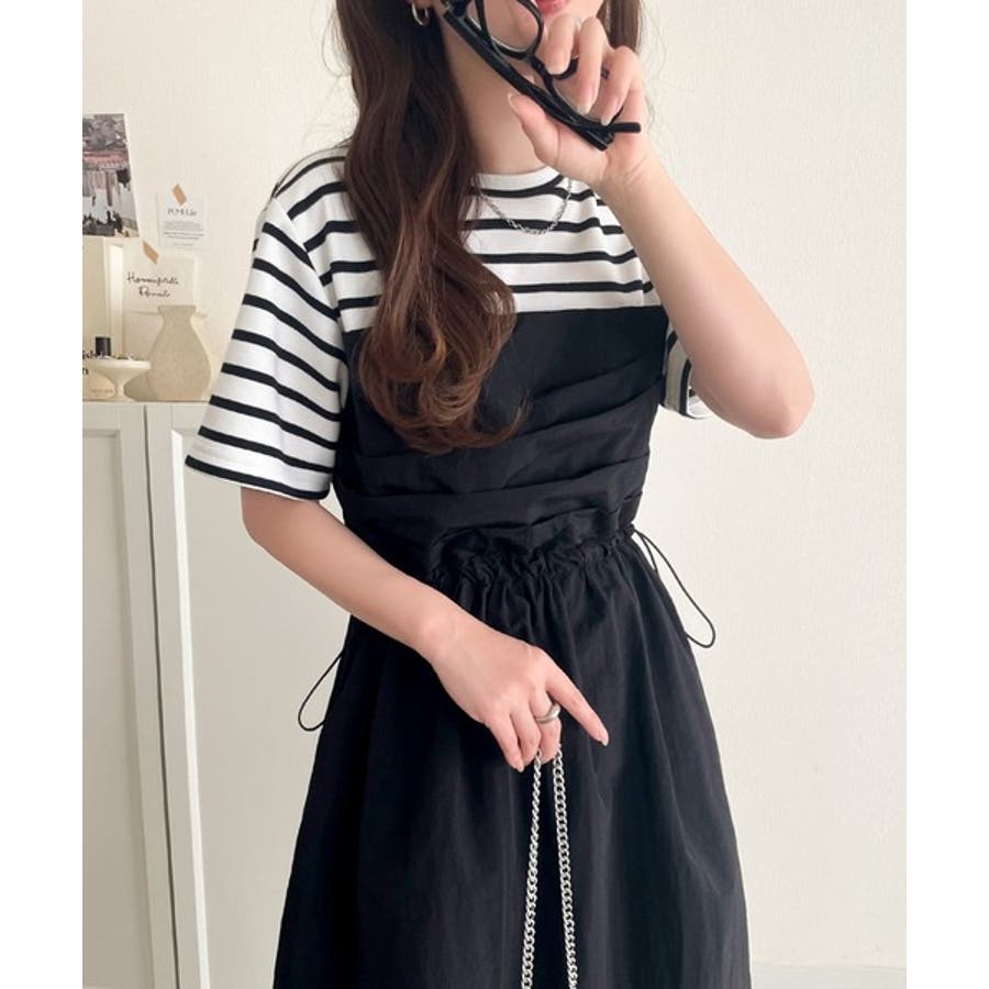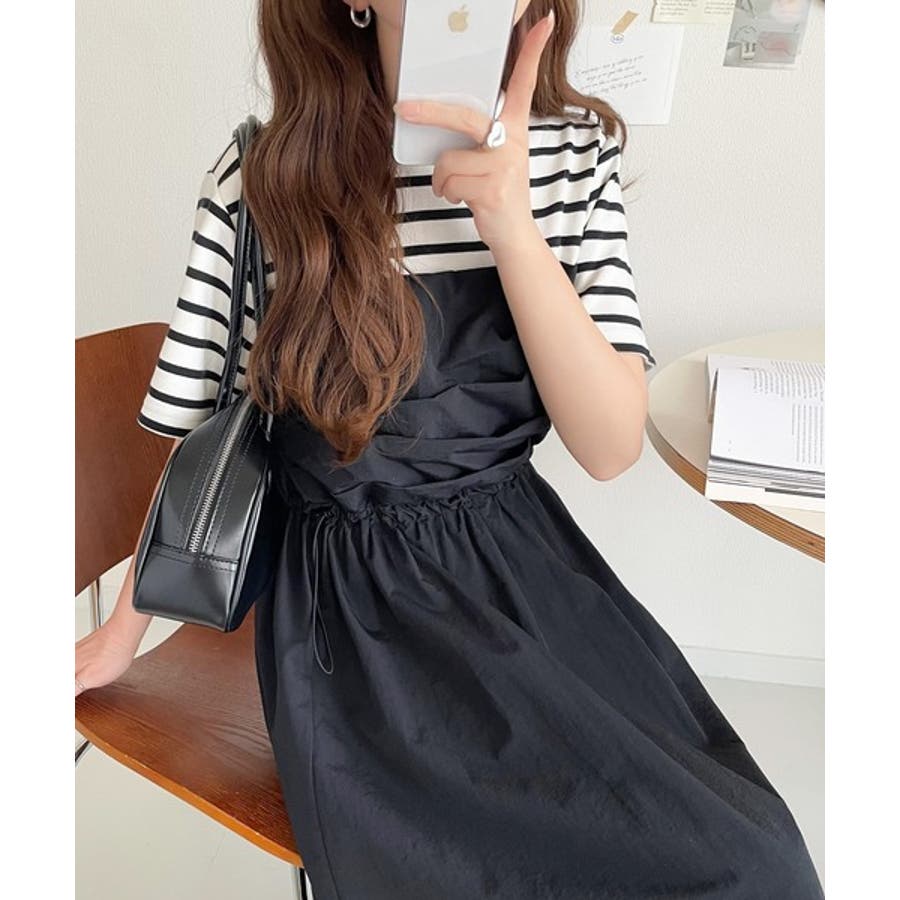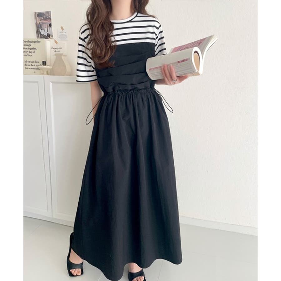 1枚で主役級。脇ドロストビスチェドッキングワンピース(無地&ボーダー柄)
