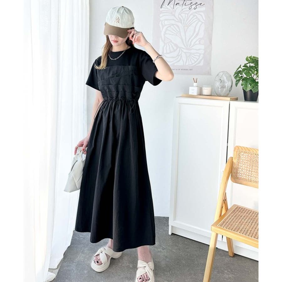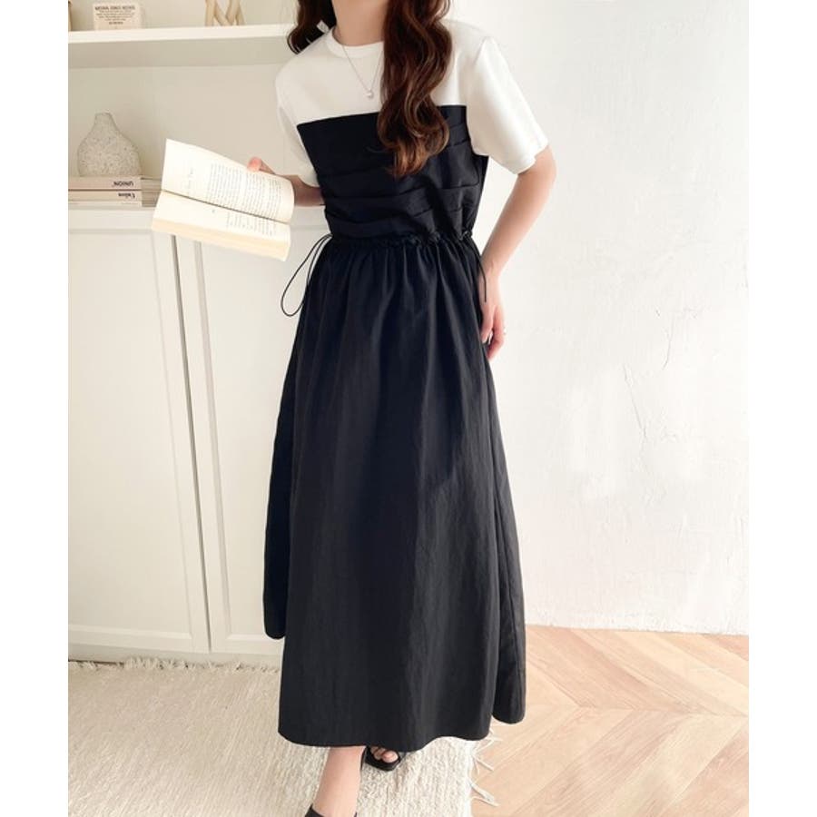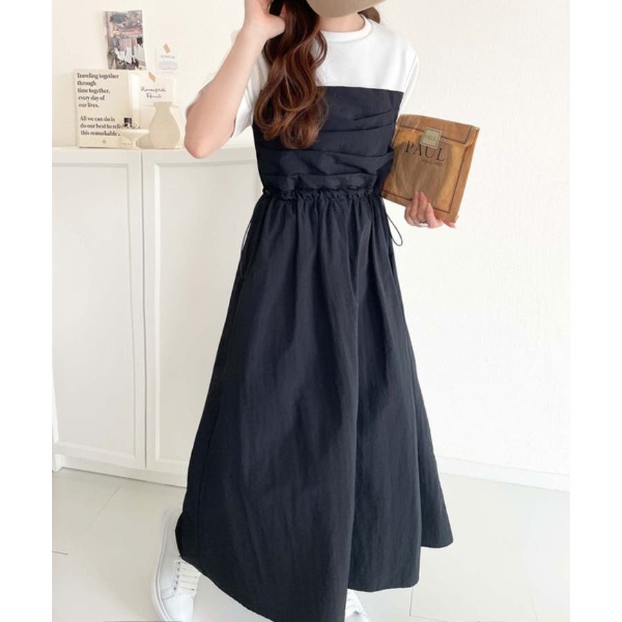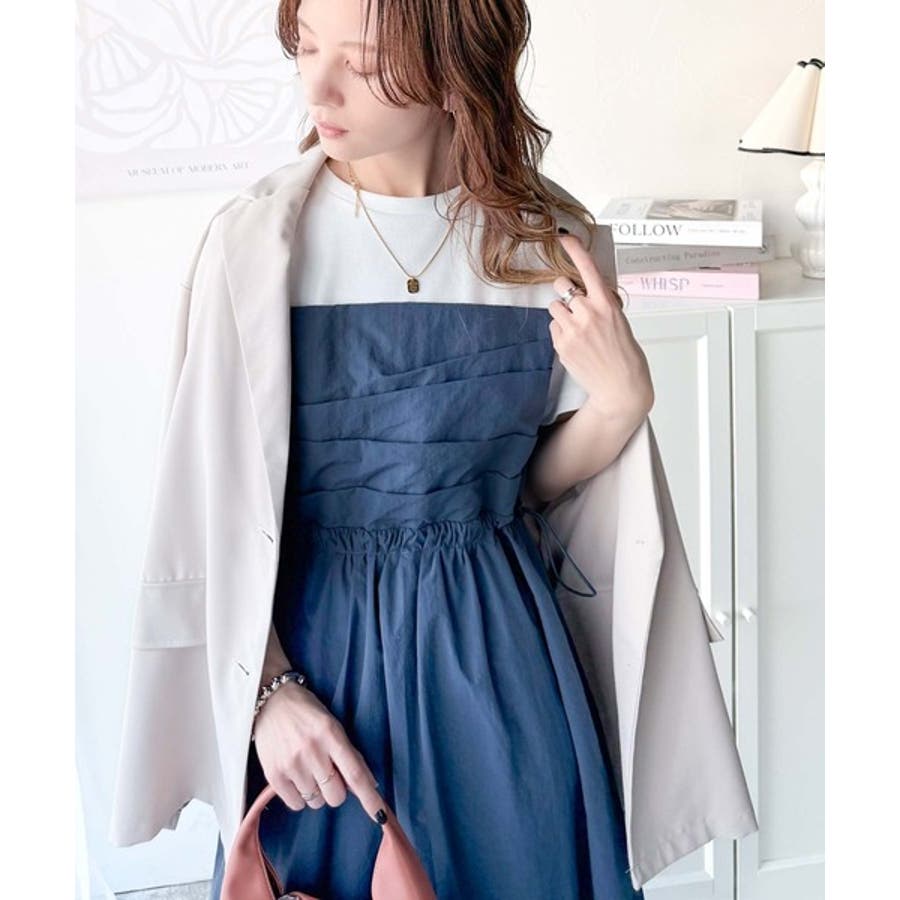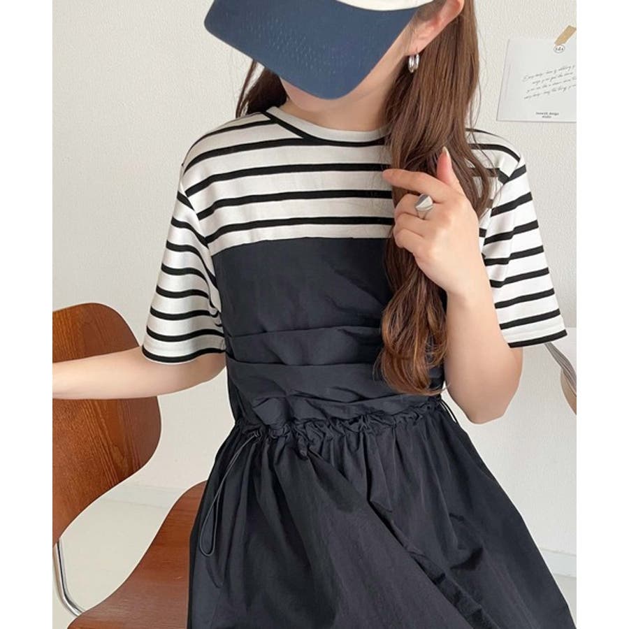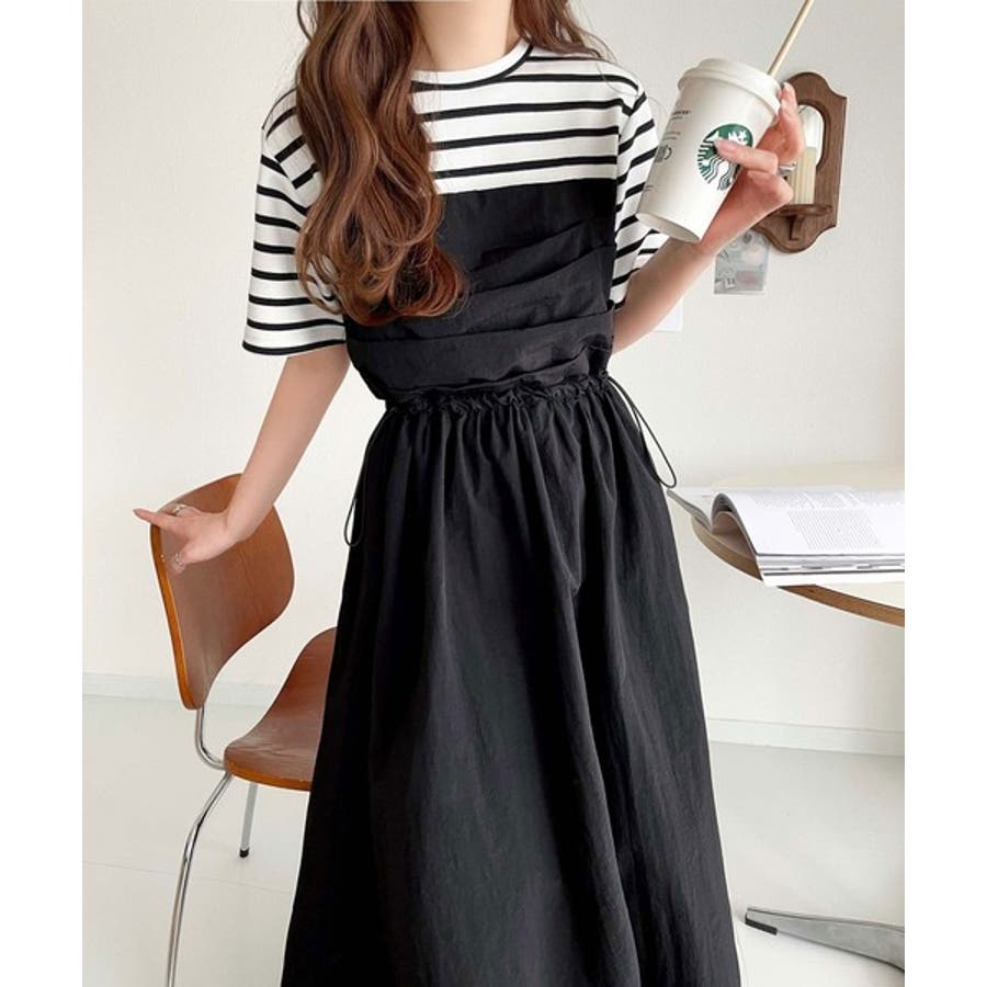 1枚で主役級。脇ドロストビスチェドッキングワンピース(無地&ボーダー柄)