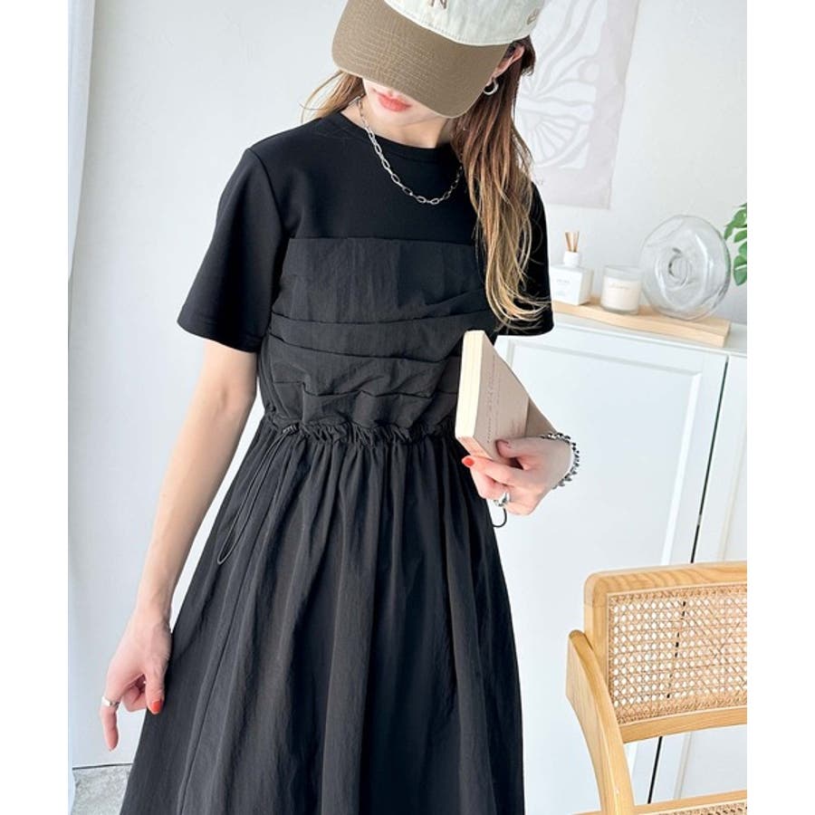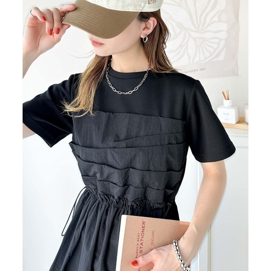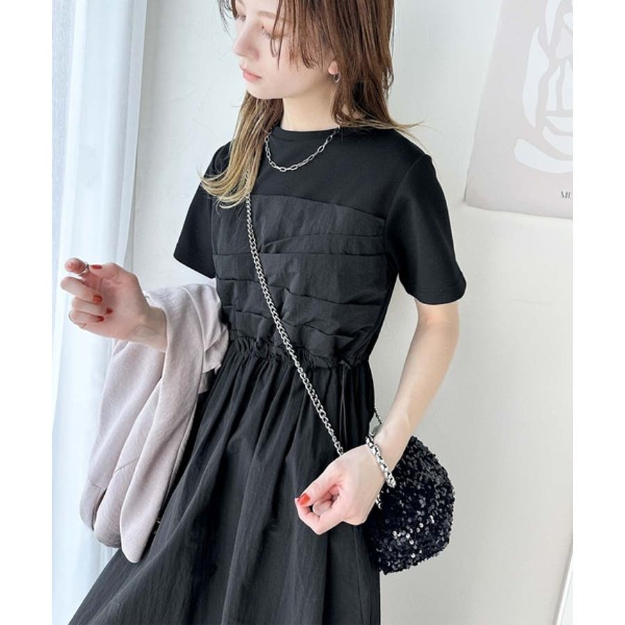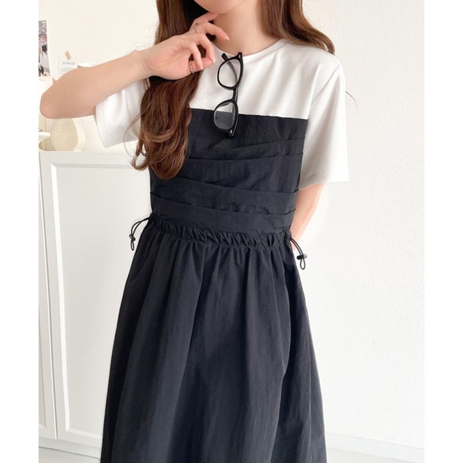トレンド感満載のTシャツとビスチェワンピースをドッキングしたようなデザイン。