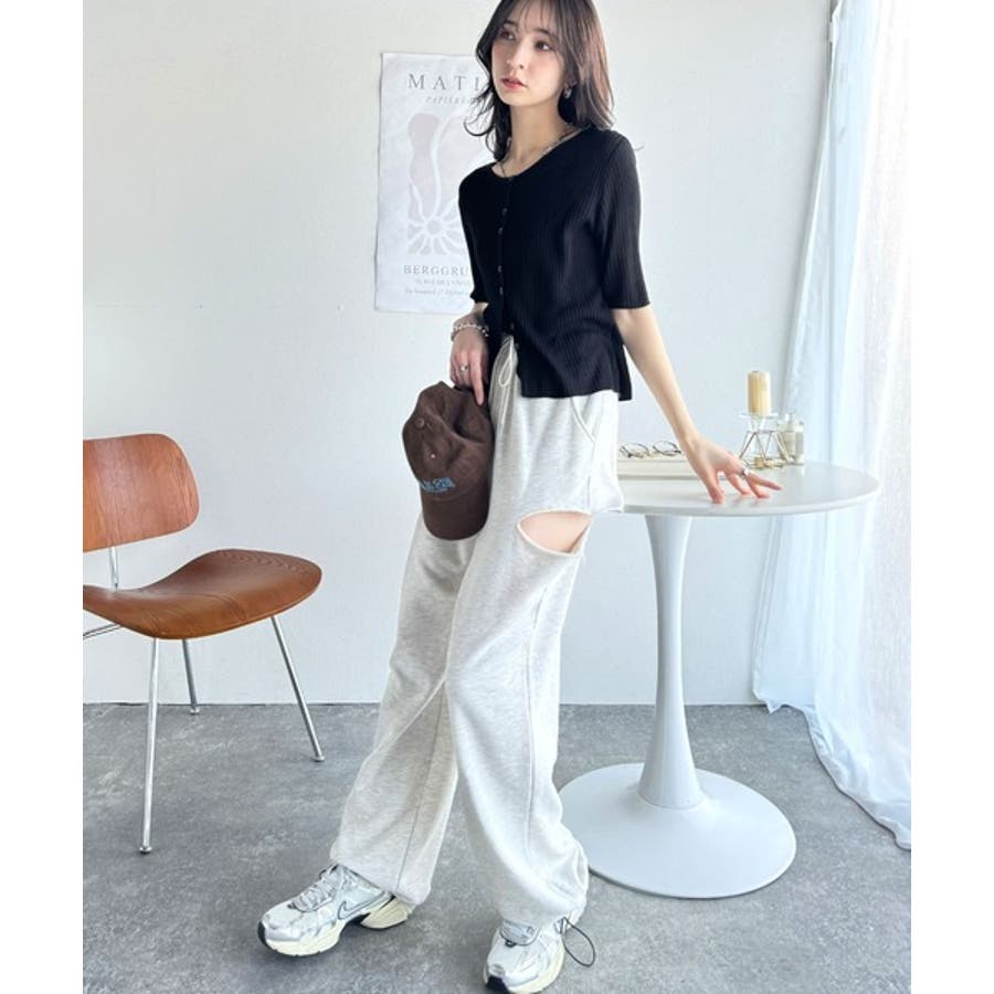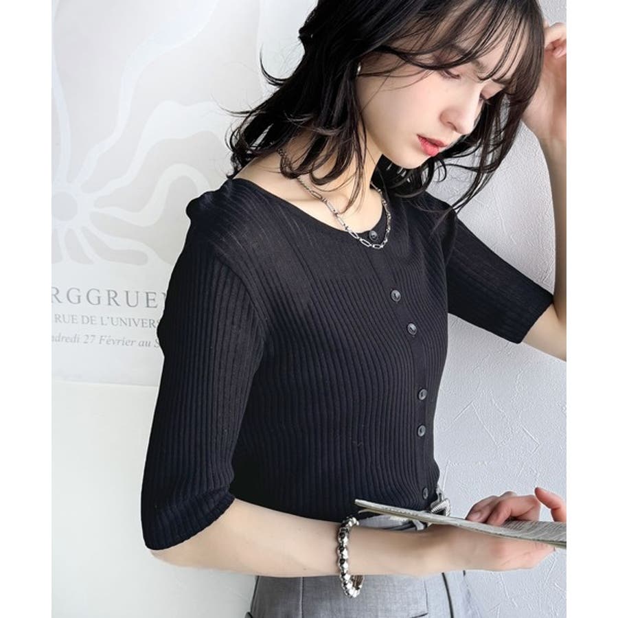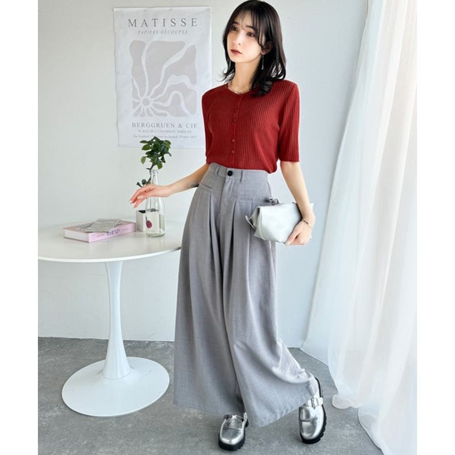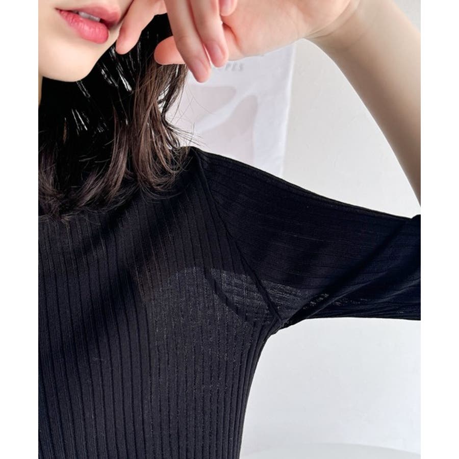 程よいフィット感のリブニットが縦ラインを強調し、スタイルを美しく見せてくれます。