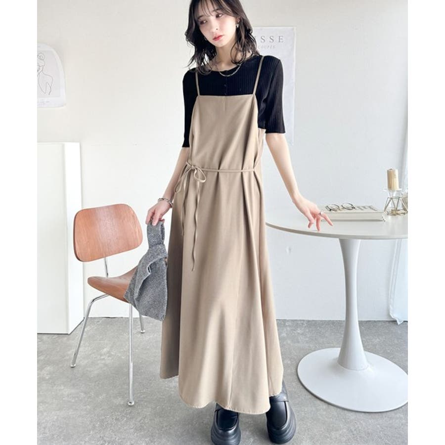 キャミワンピースを合わせれば、リラックス感あふれるフェミニンなカジュアルスタイルが完成!