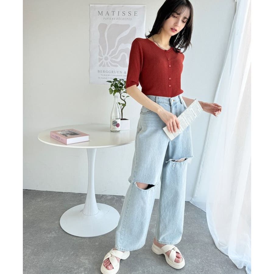 大人のこなれ感。シアーリブニット半袖カーディガン