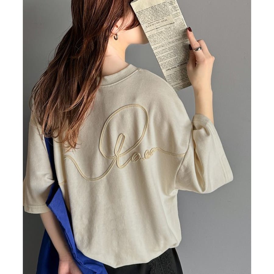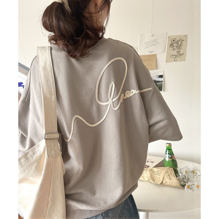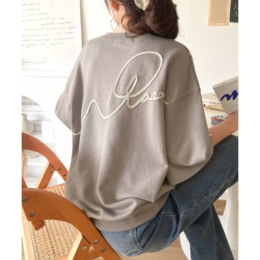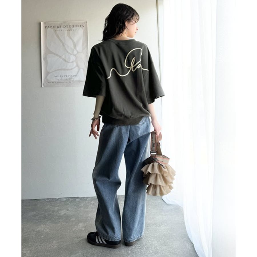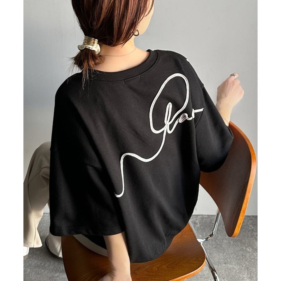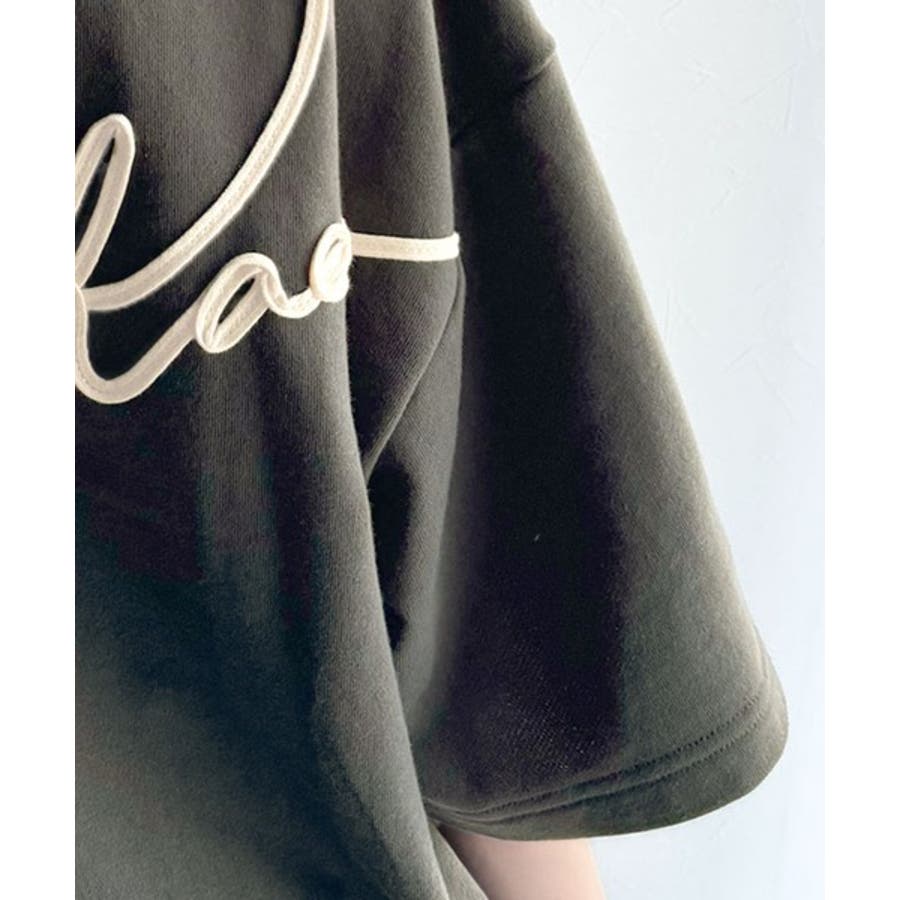 《メンズもレディースも着れちゃう"コード刺繍ハーフスリーブ裏毛スウェットTシャツ"》