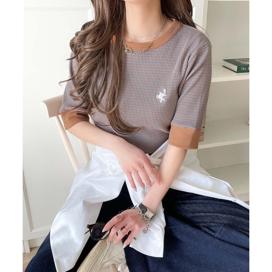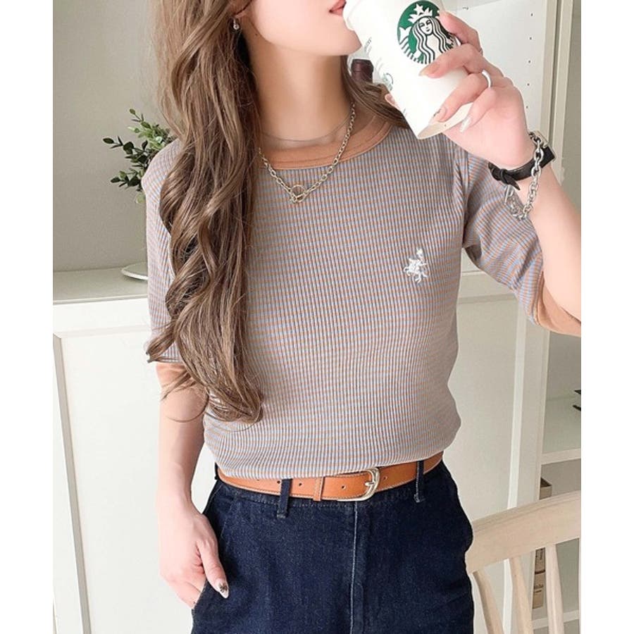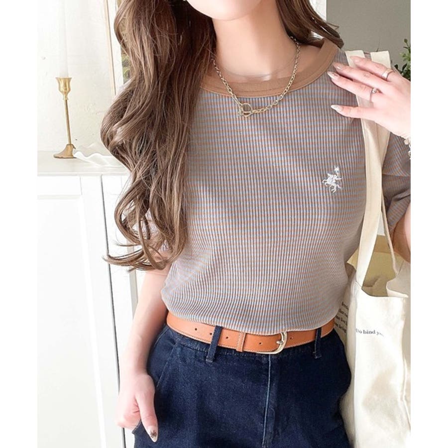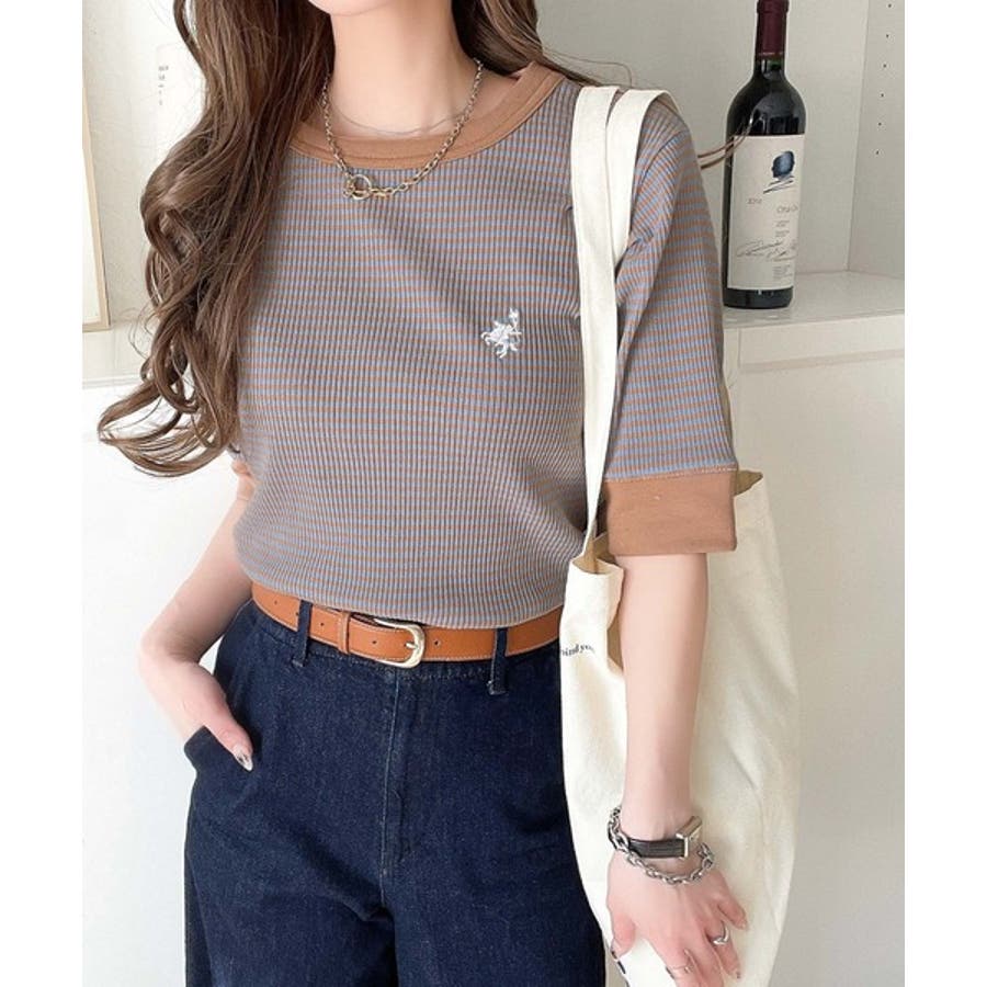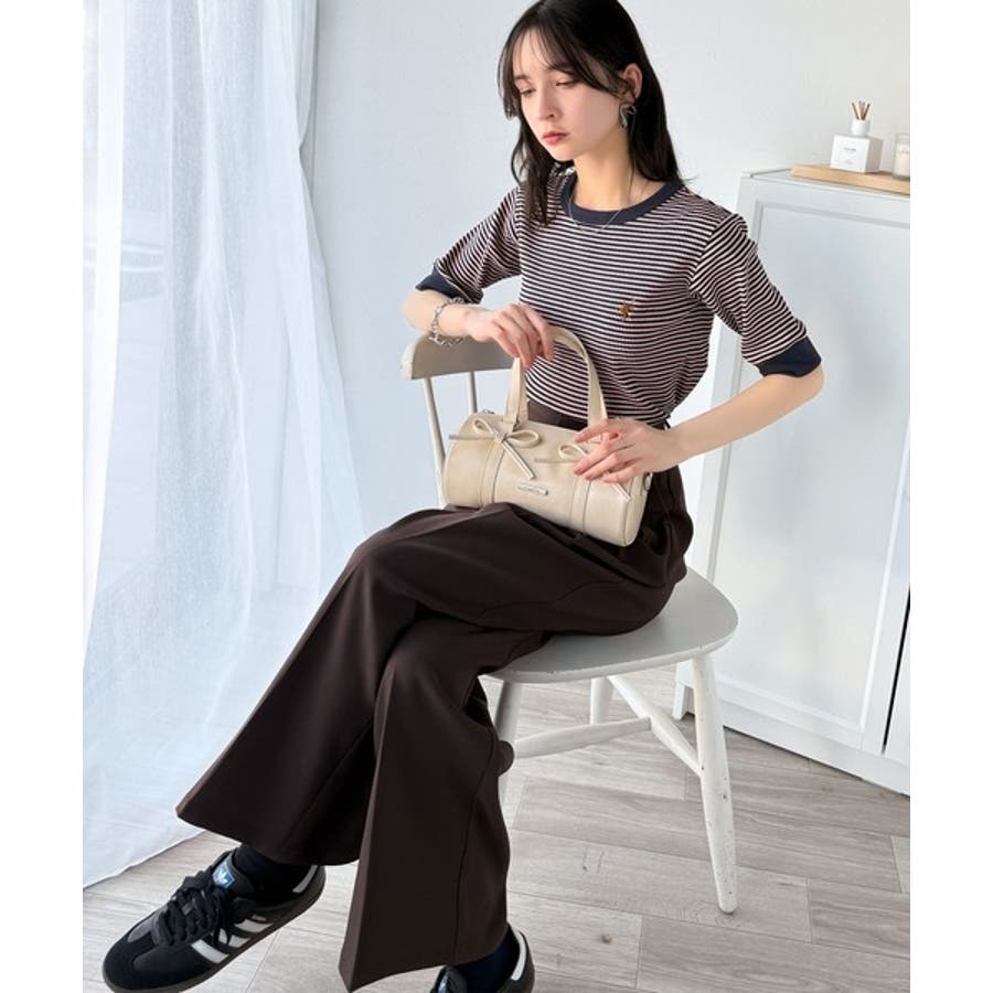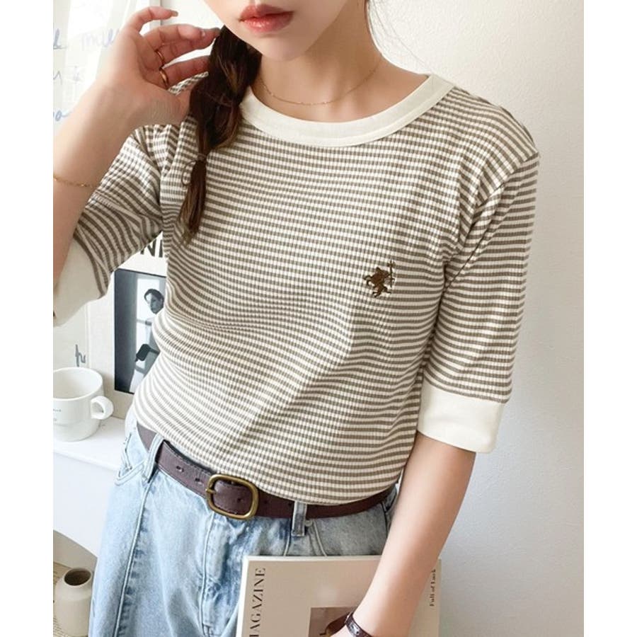 大人可愛いの新定番。袖リンガーボートネック胸刺繍ボーダーTシャツ(半袖)