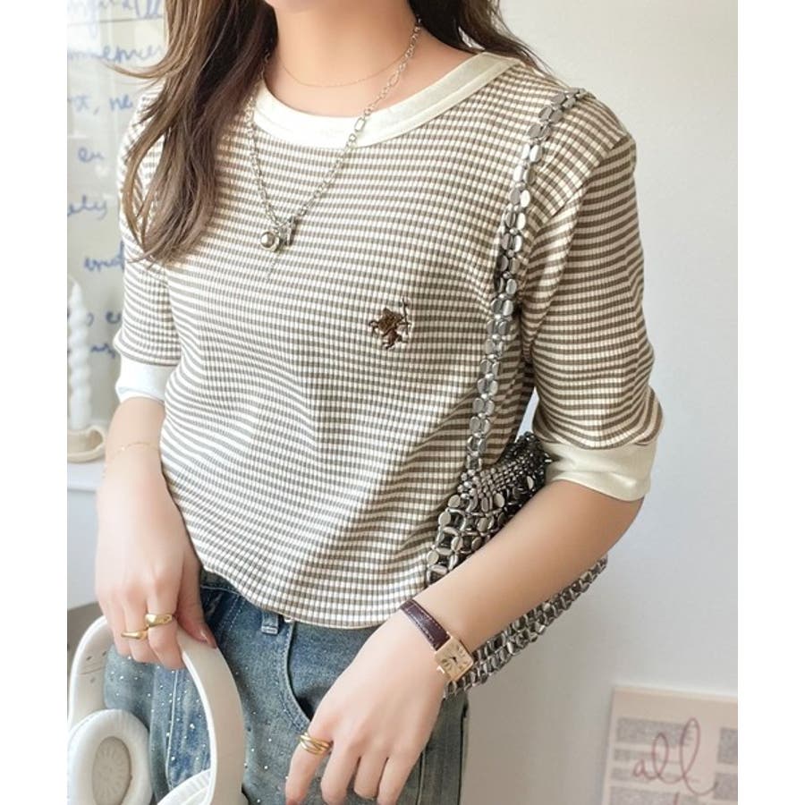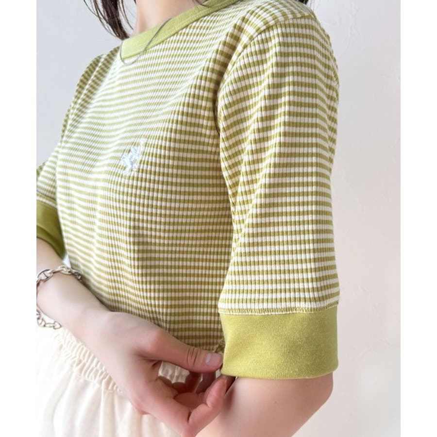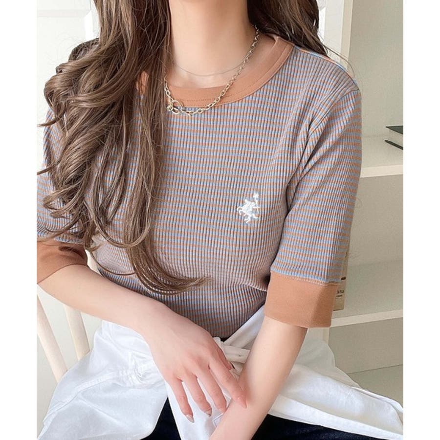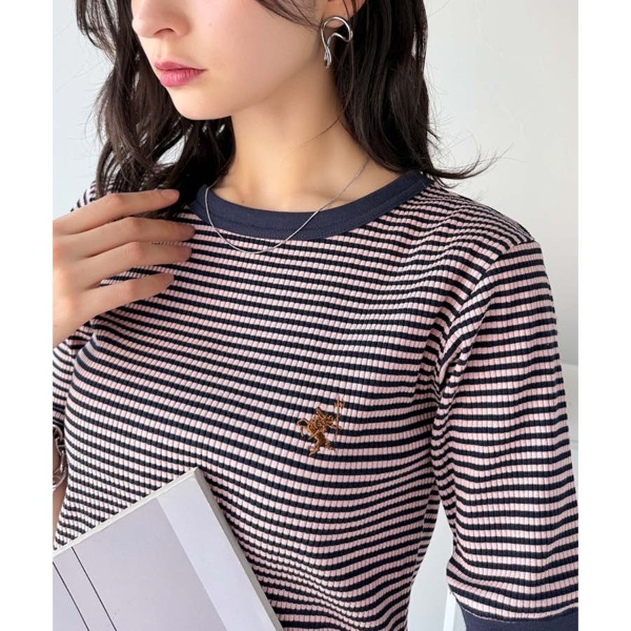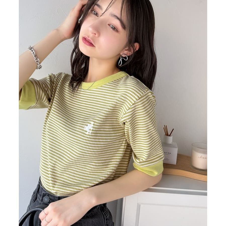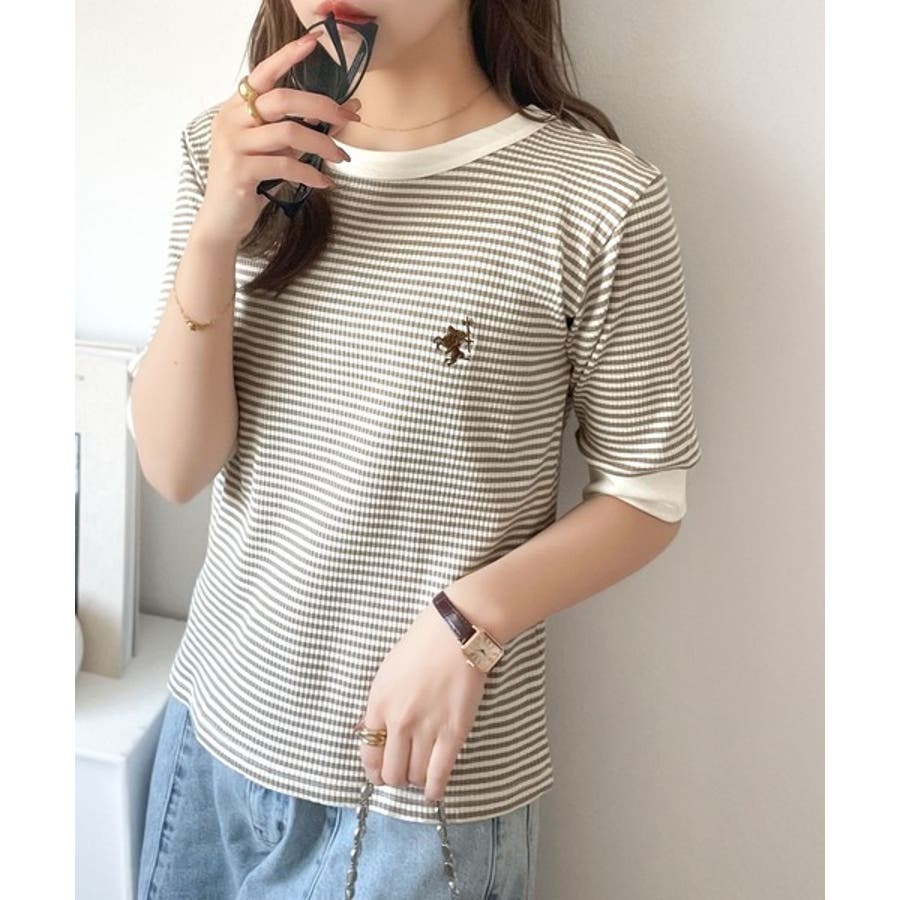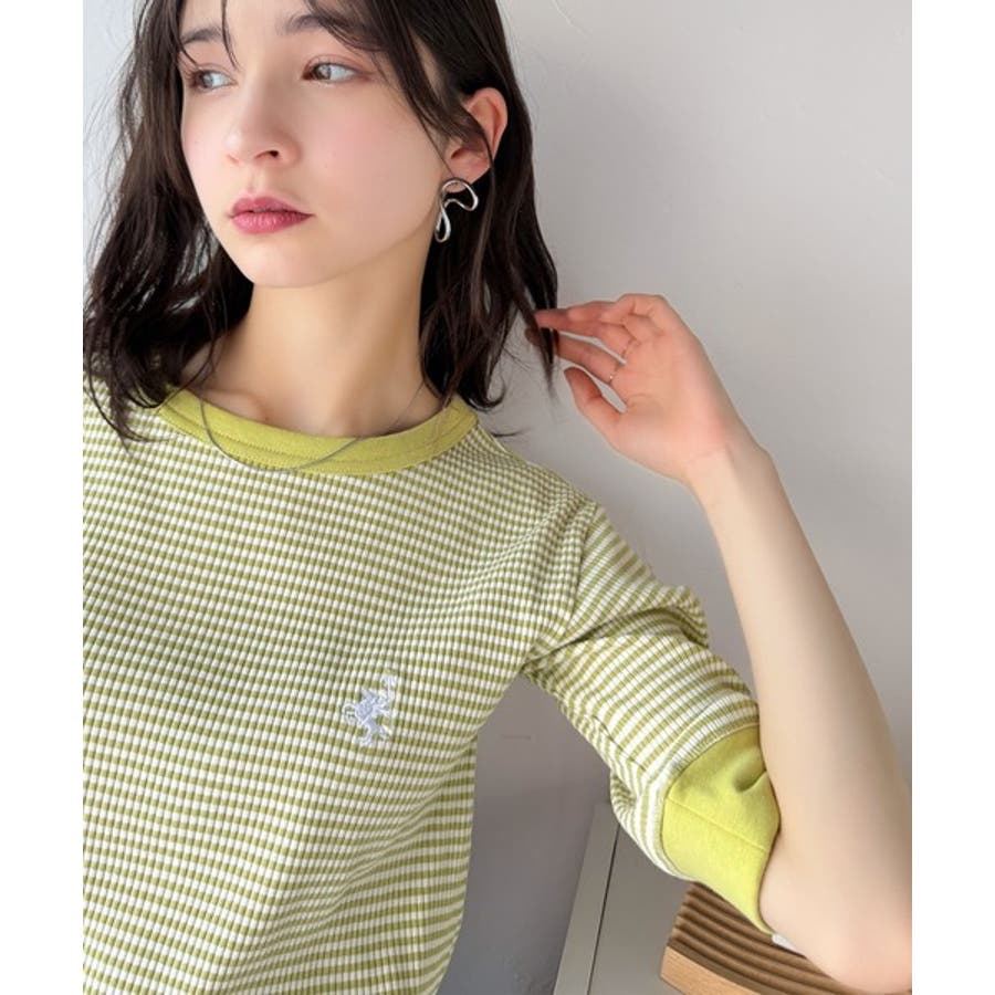 大人可愛いの新定番。袖リンガーボートネック胸刺繍ボーダーTシャツ(半袖)