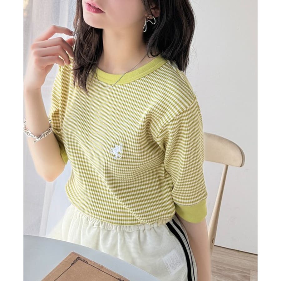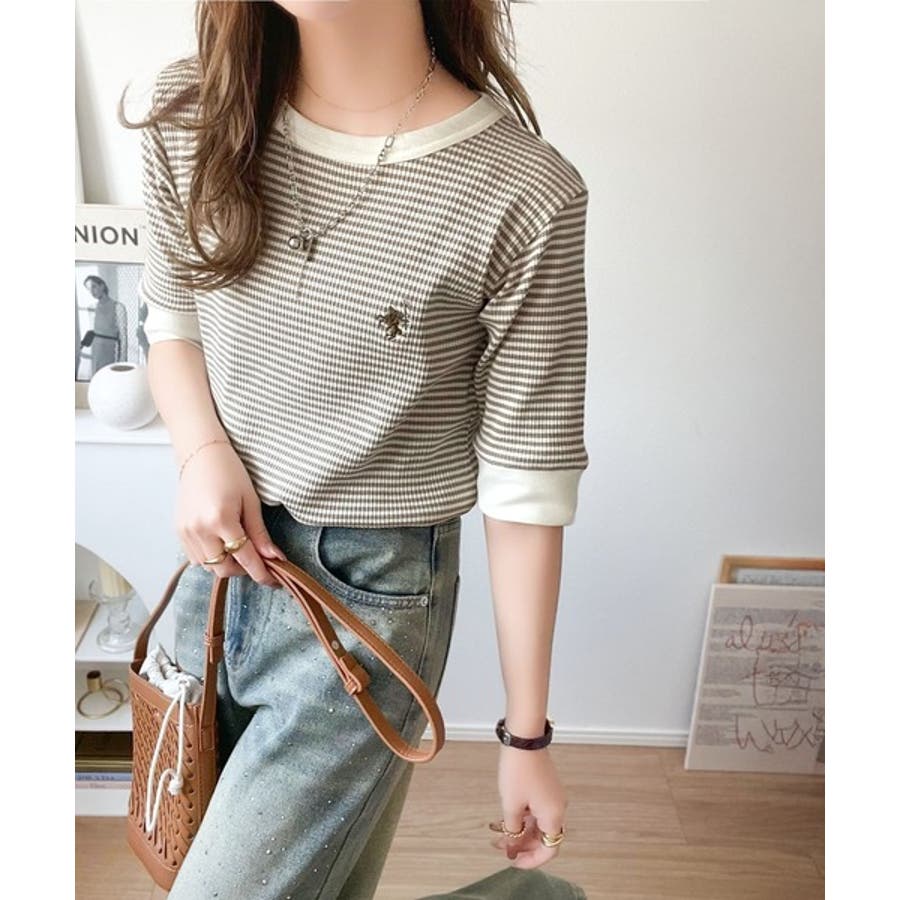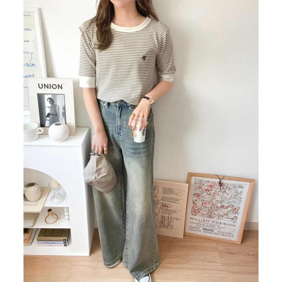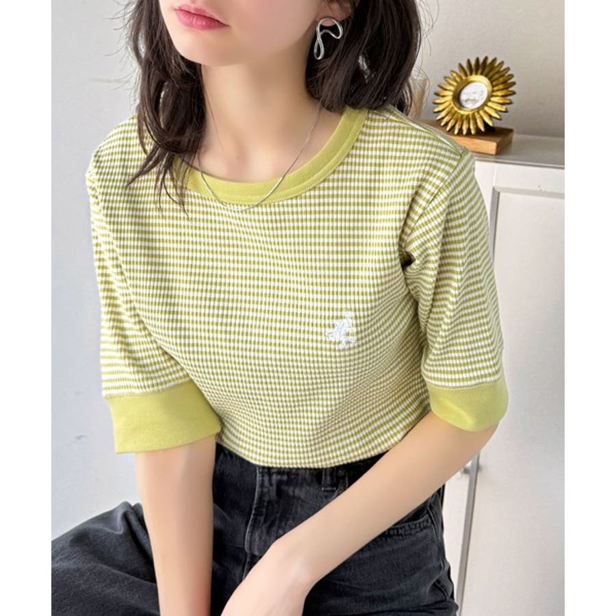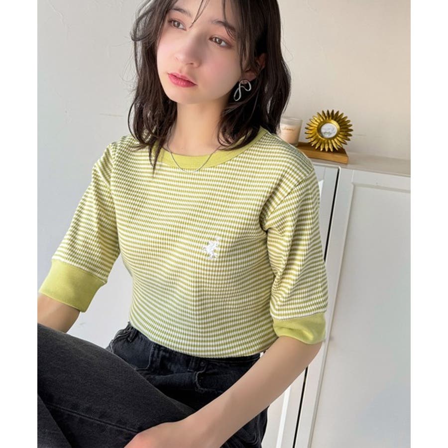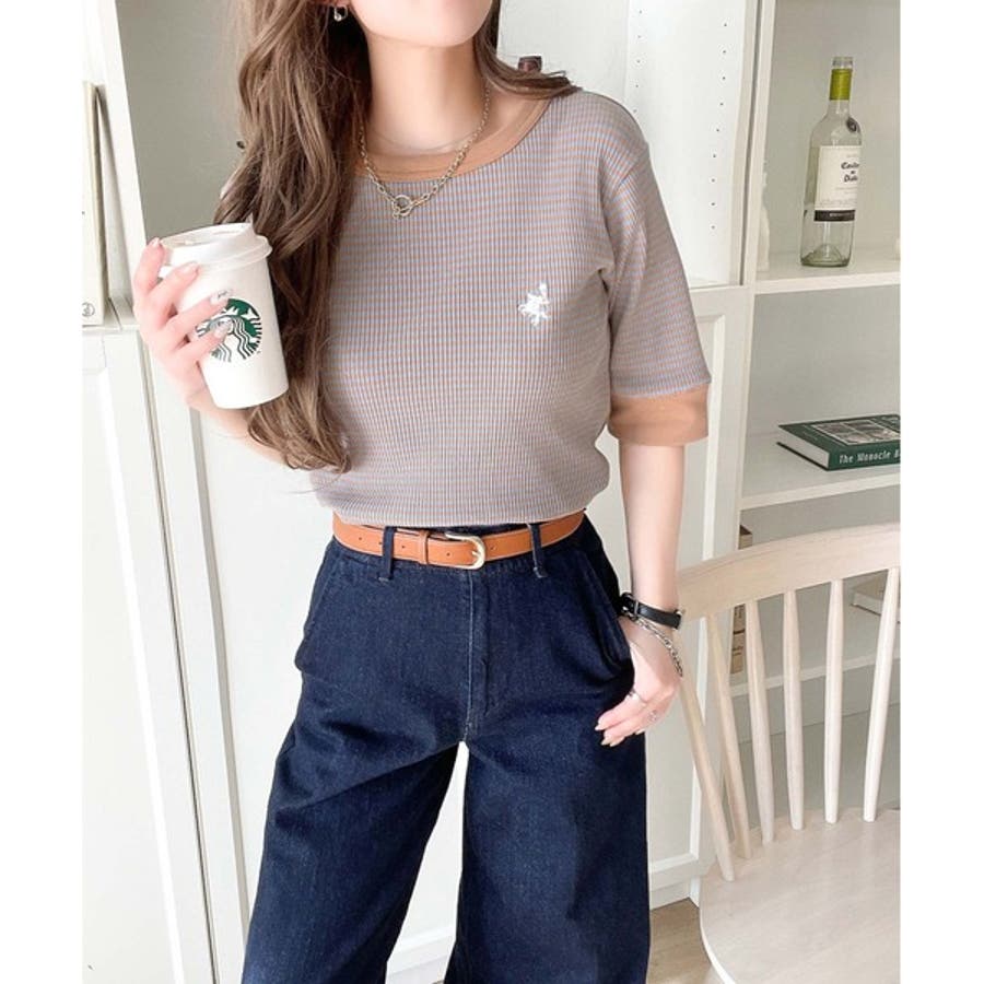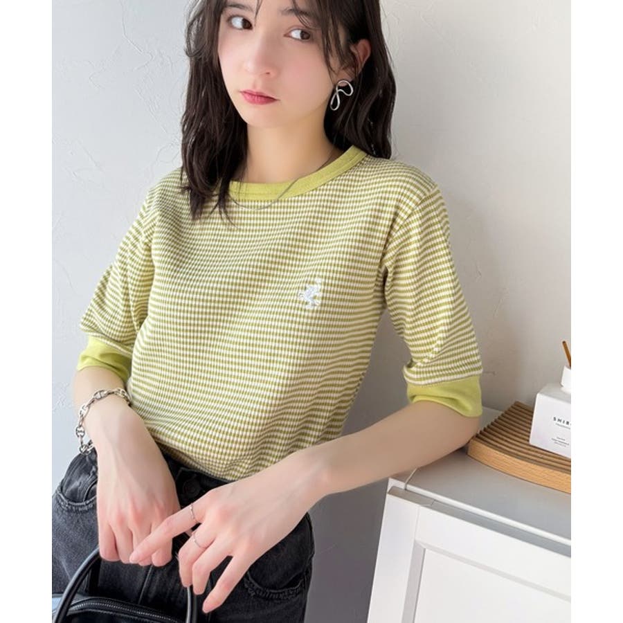 大人可愛いの新定番。袖リンガーボートネック胸刺繍ボーダーTシャツ(半袖)