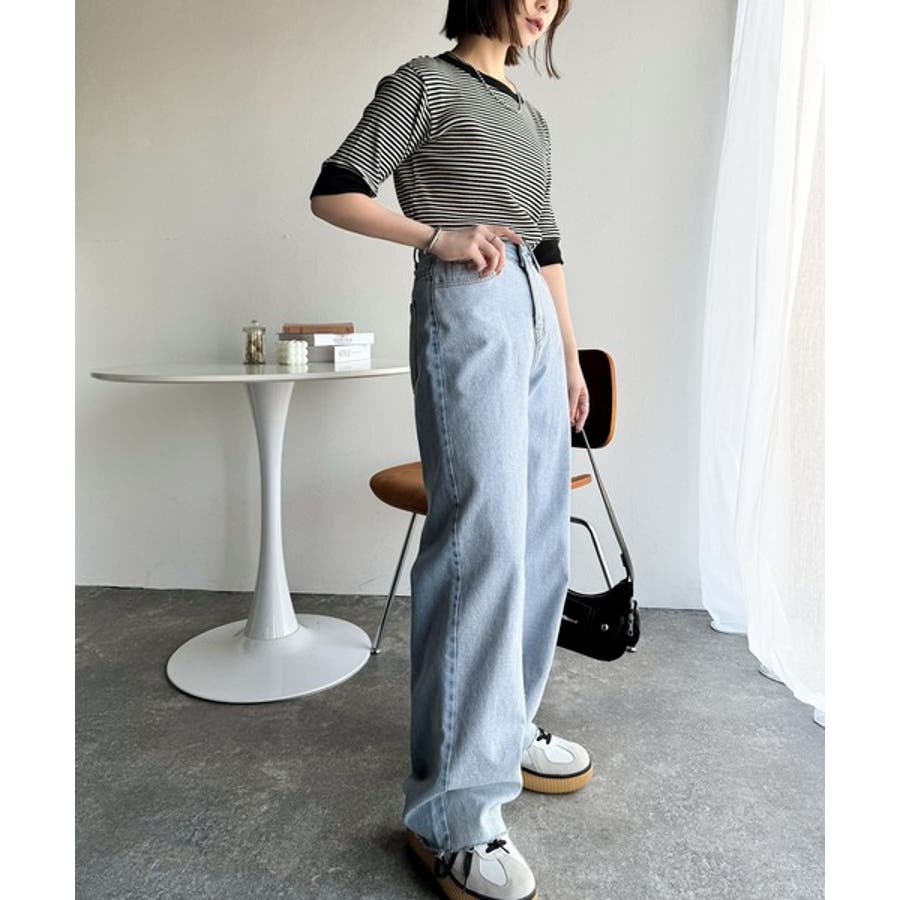 その日の気分に合わせてカーブデニムやフレアパンツを合わせてもOK◎