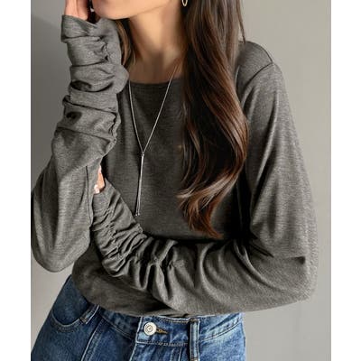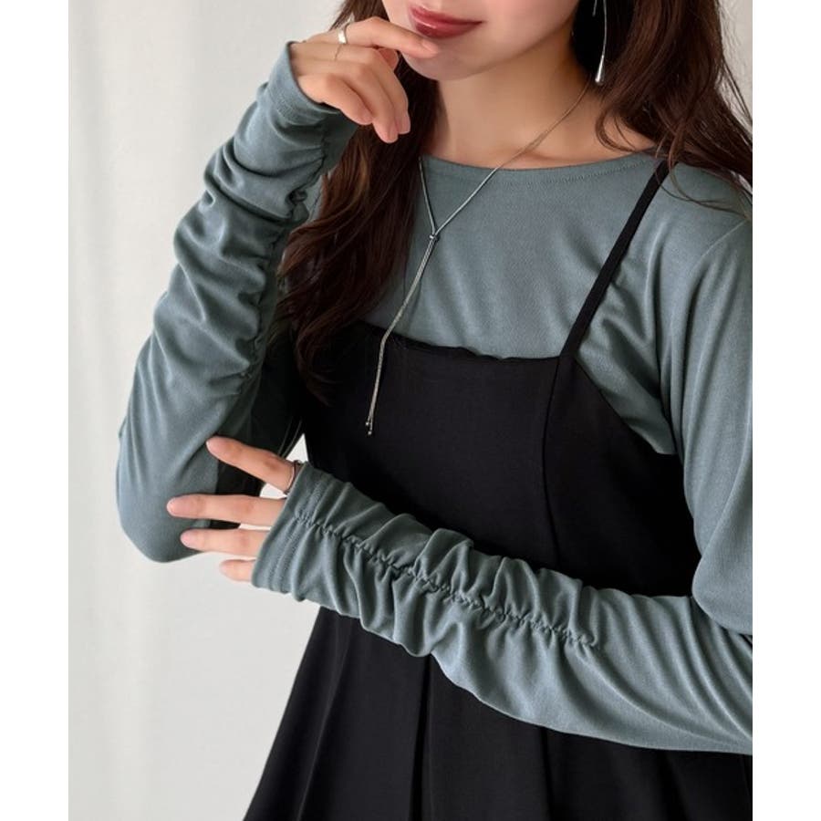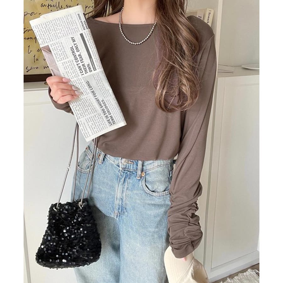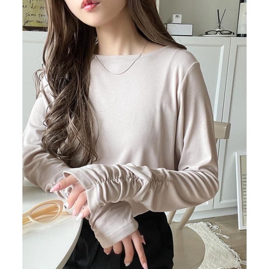 手元にニュアンスをプラス。袖シャーリングボートネックプルオーバー (長袖)