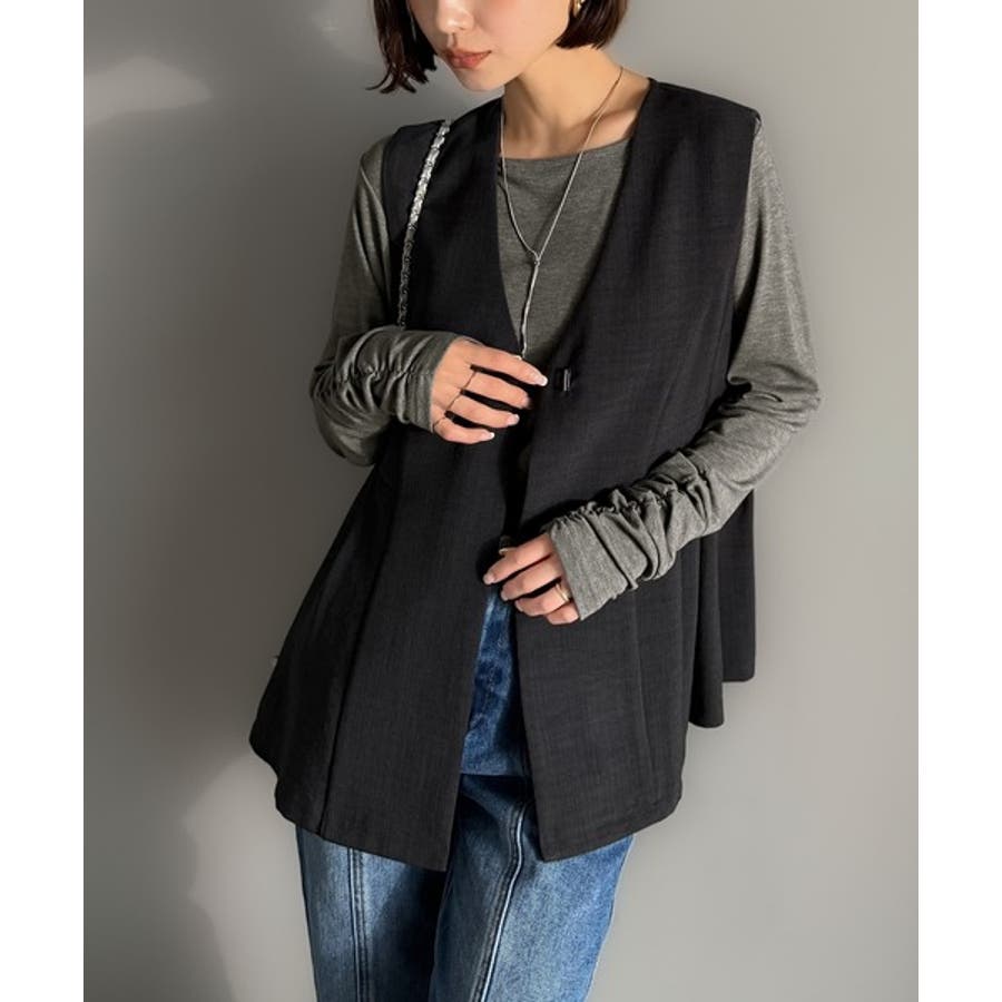 袖口にはシャーリングが施されており、デザインにアクセントを加えつつ、柔らかさを演出。