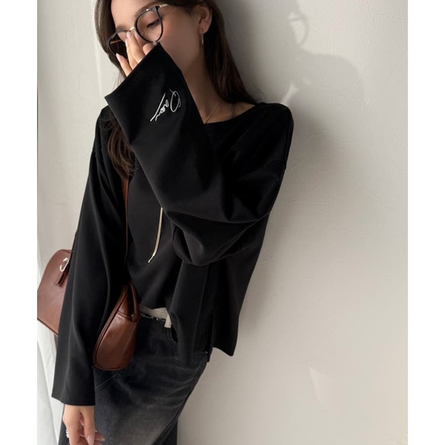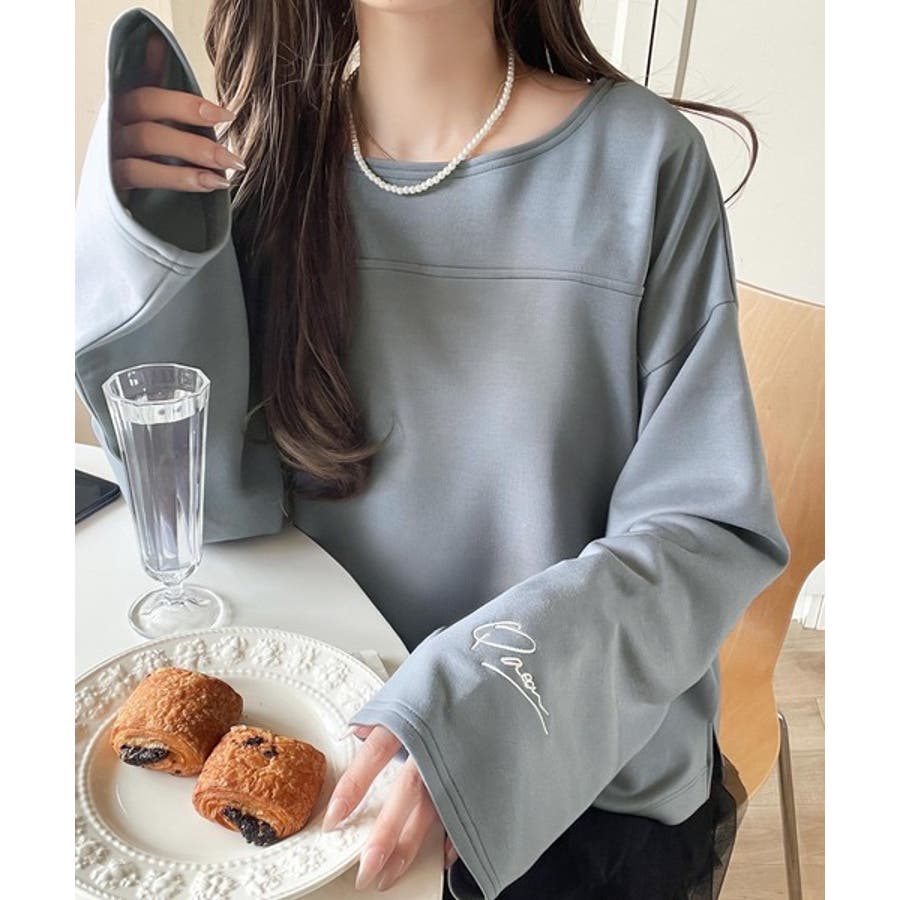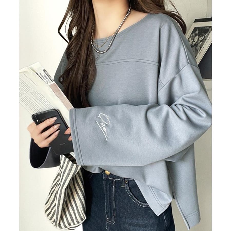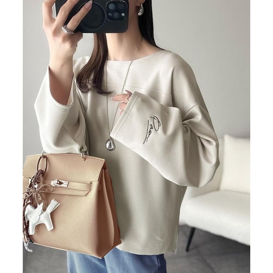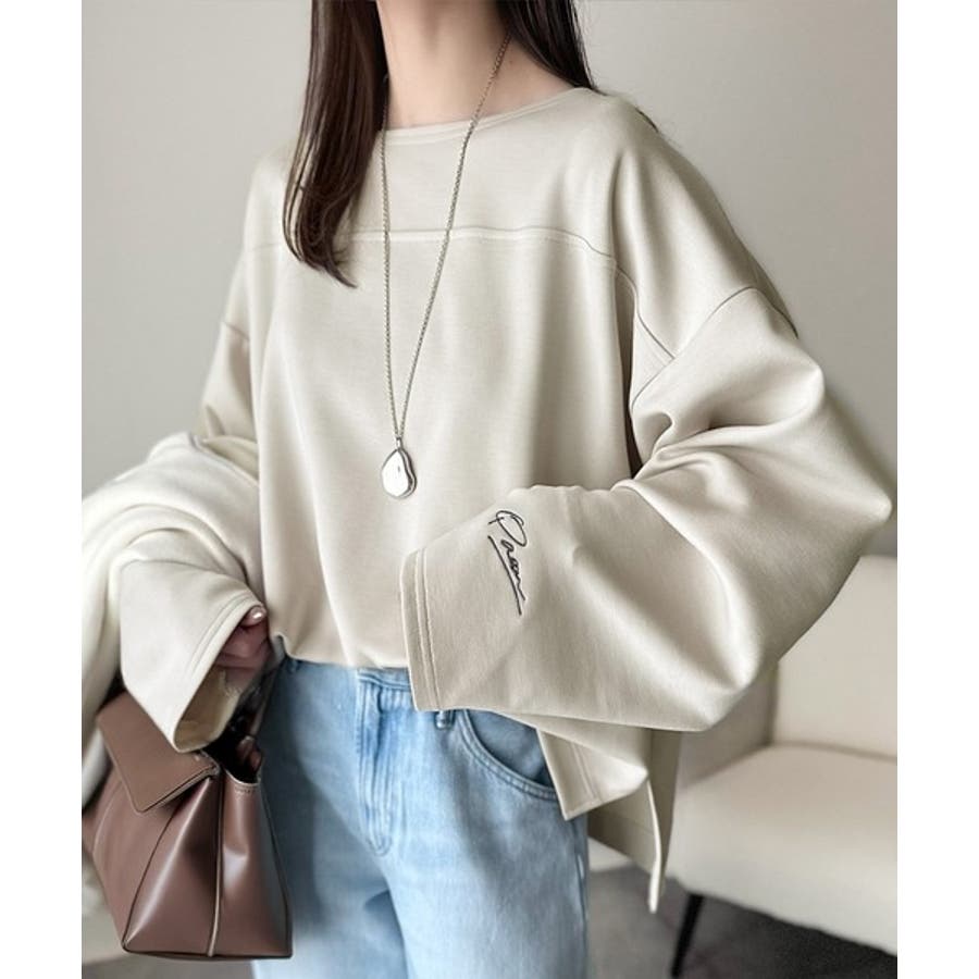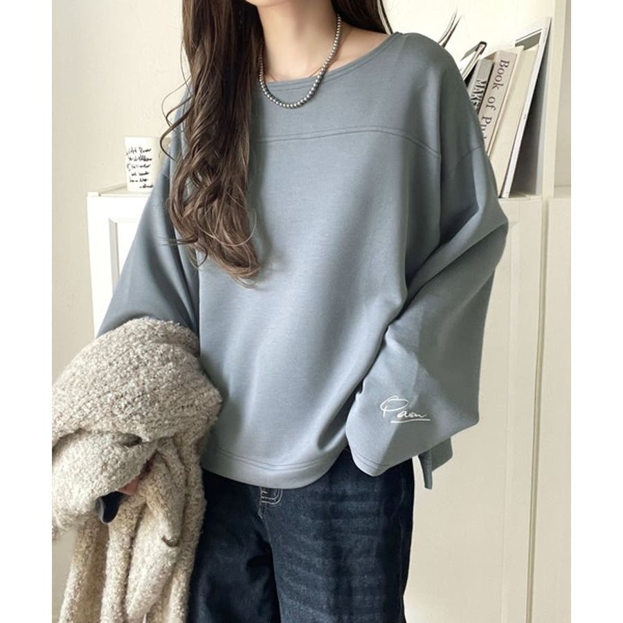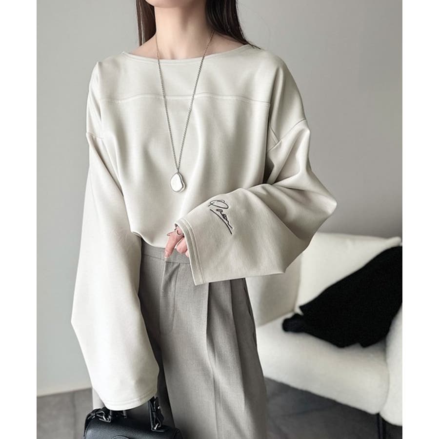 滑らか&艶やか。ダンボールボートネック袖刺繍ロンT(長袖)
