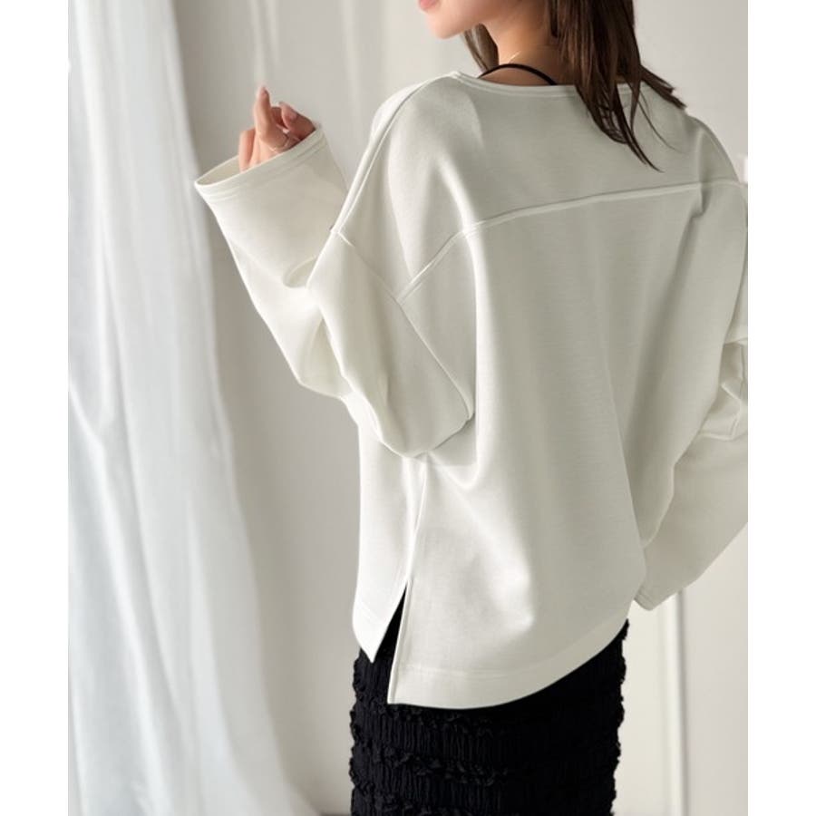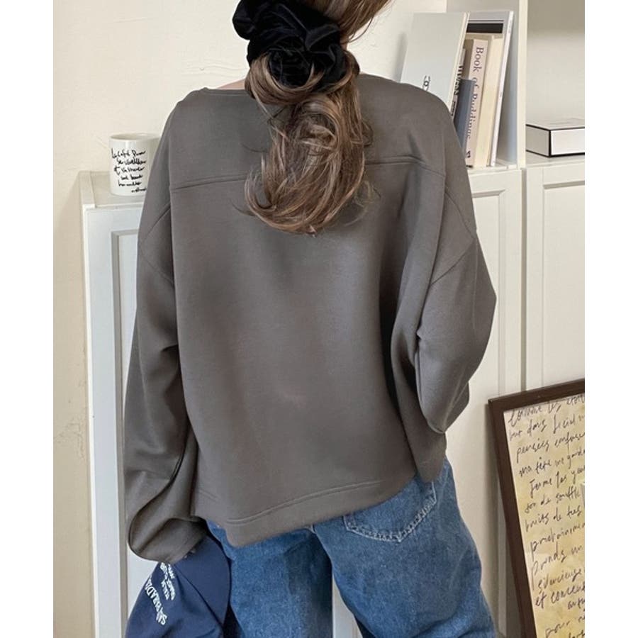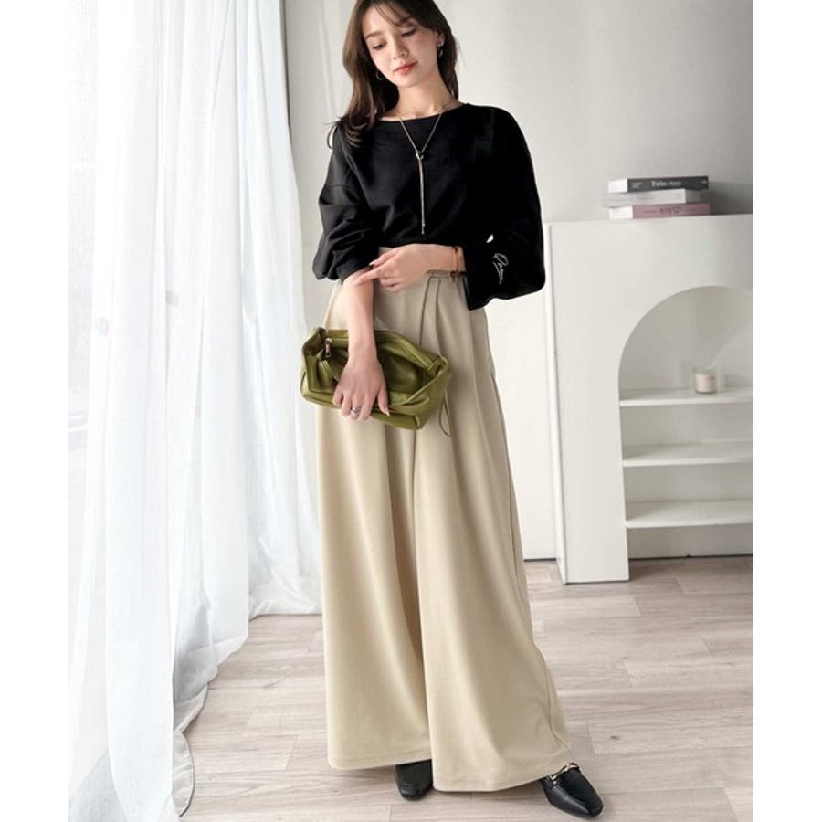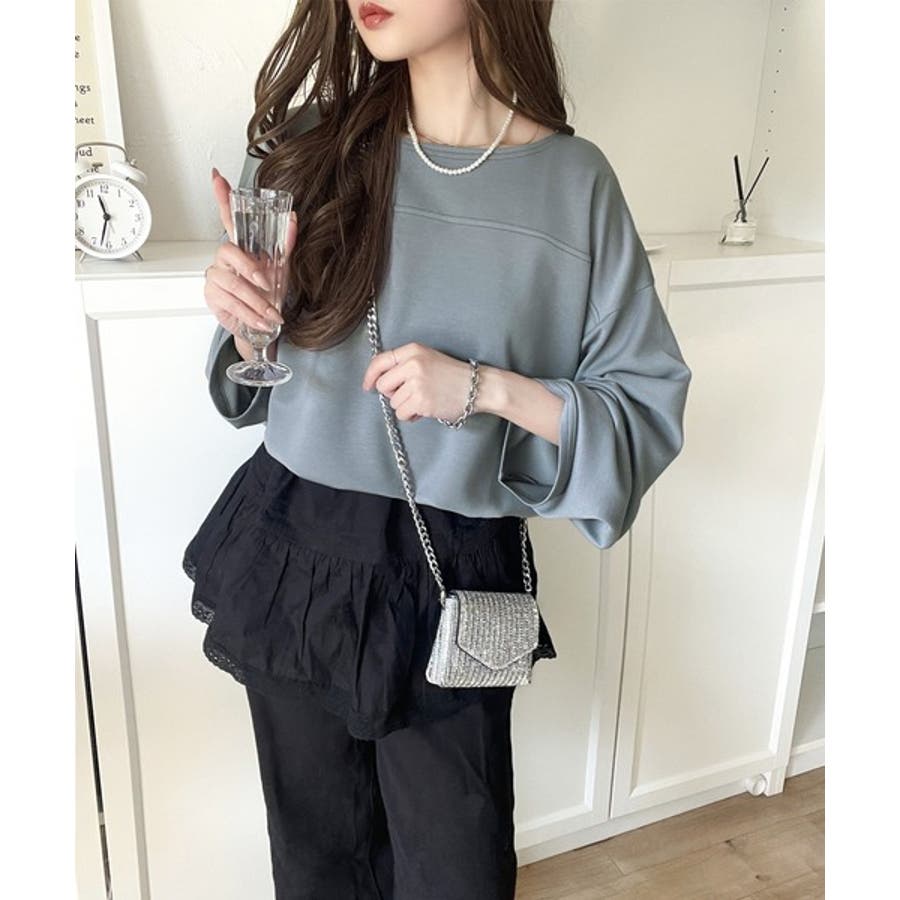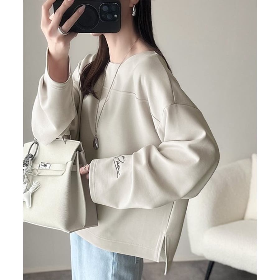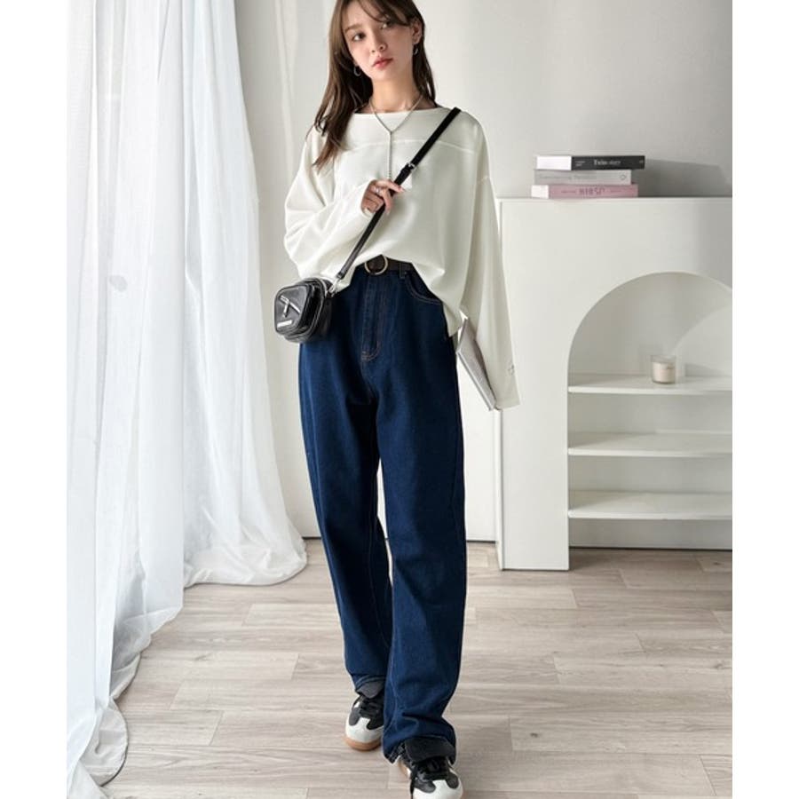 緩やかなシルエットのボートネックでカジュアルになりすぎず、上品な印象をプラス。