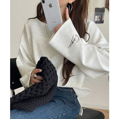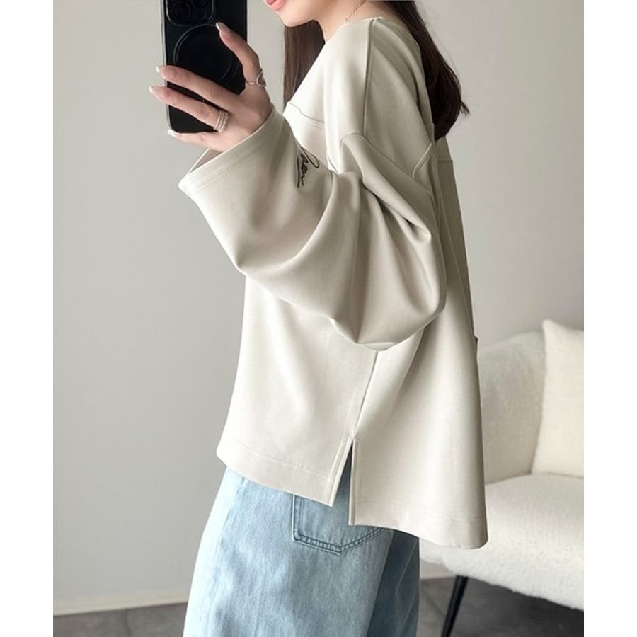 ゆる~っと大きめの袖口には、さりげなくポイント刺繍がアクセントに。