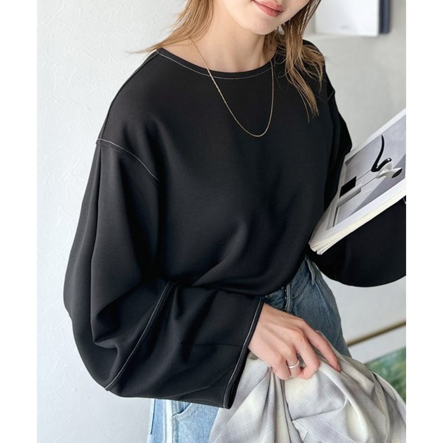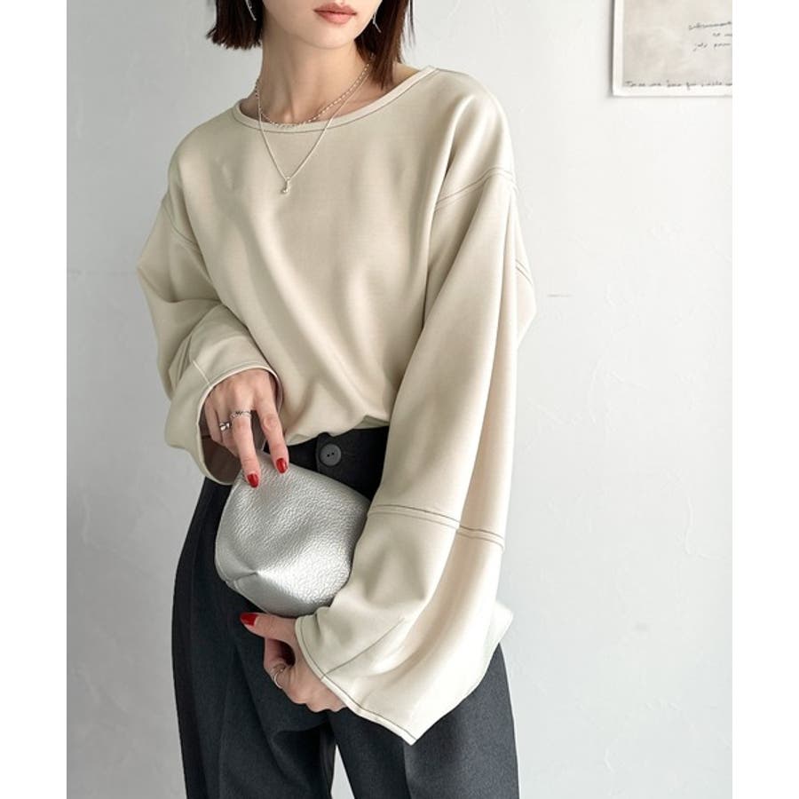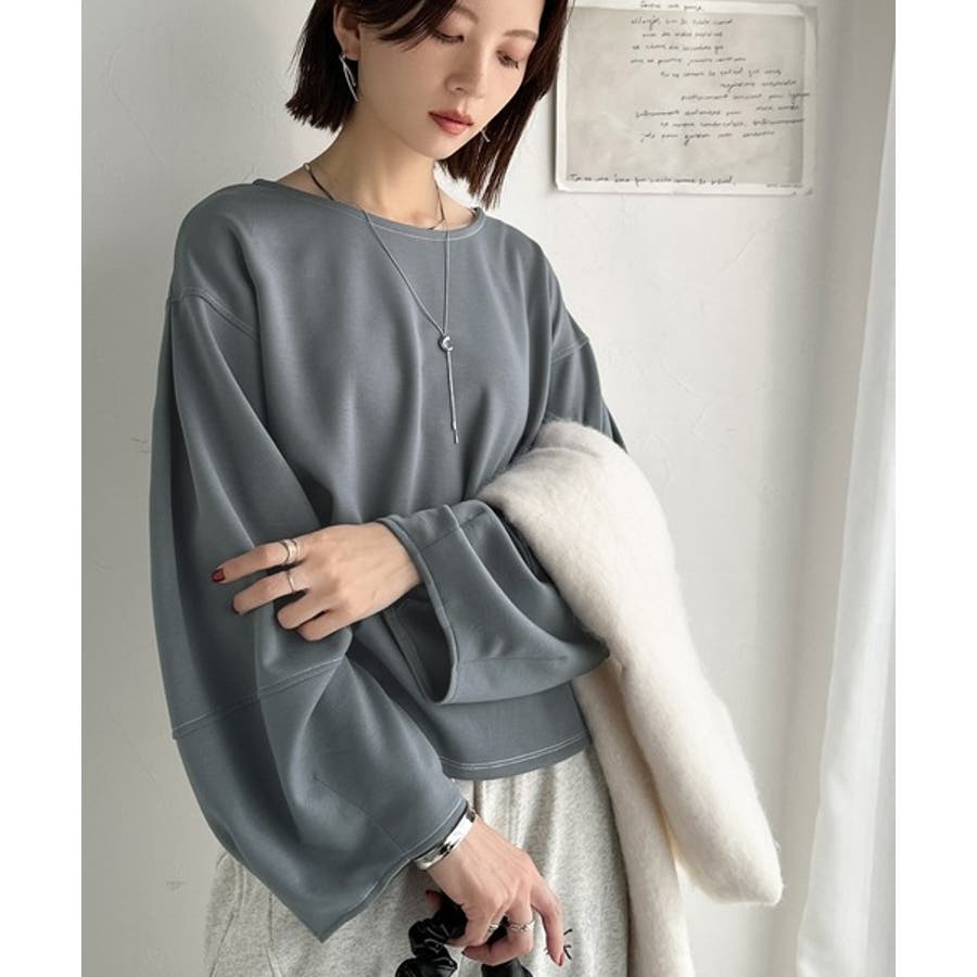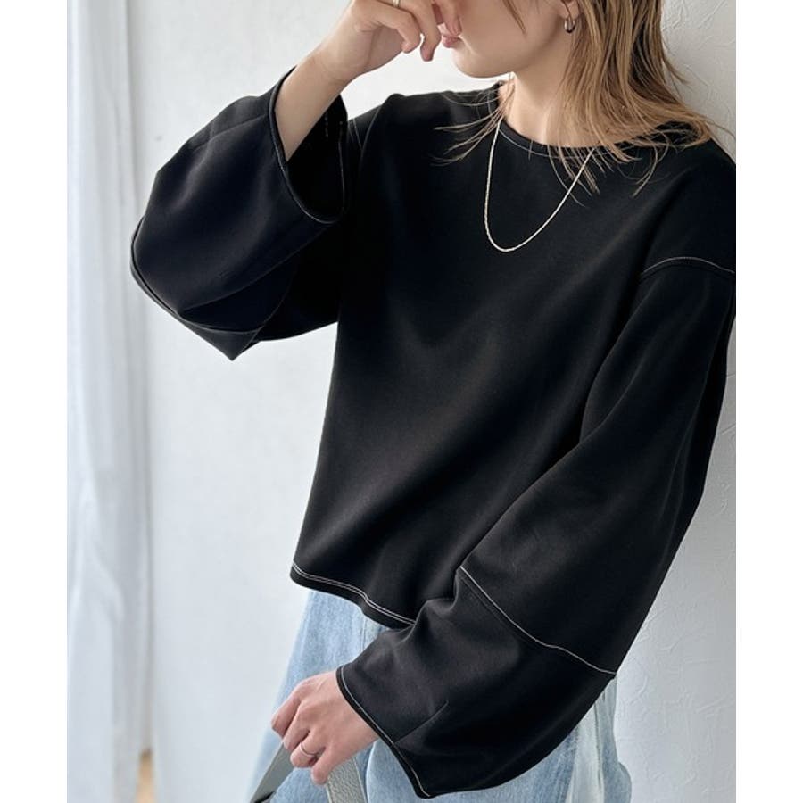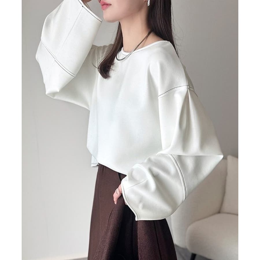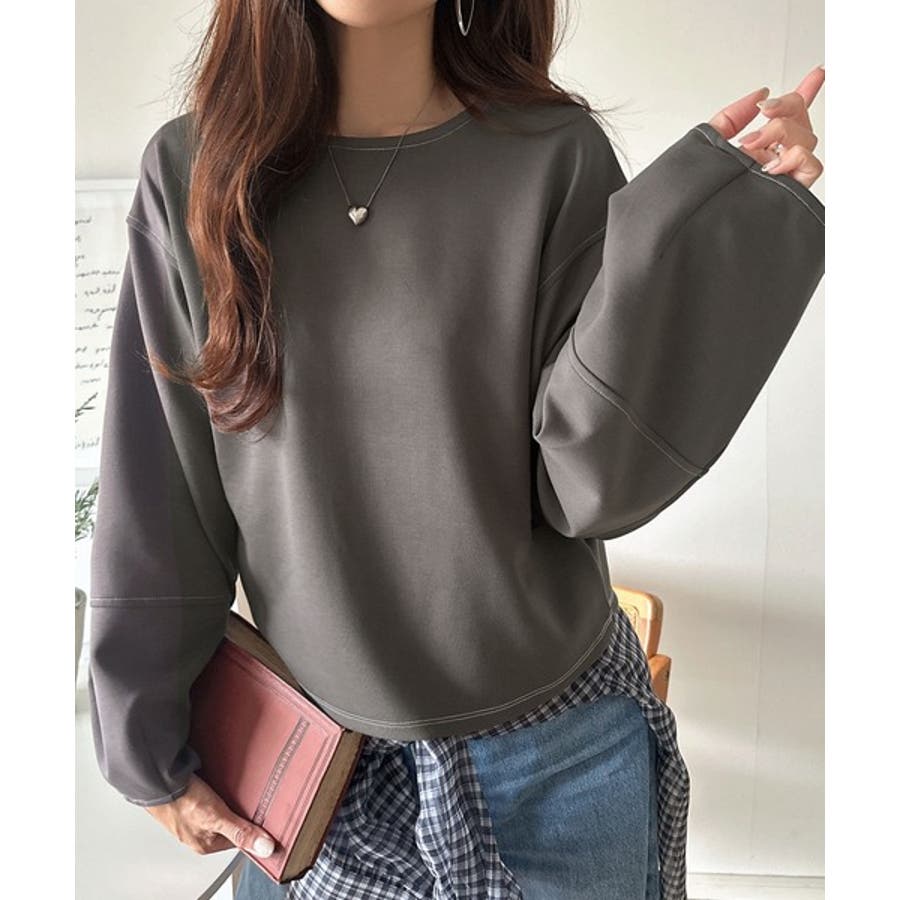 ふんわり袖で、大人映え。ランタンスリーブ切替ステッチプルオーバー(長袖)