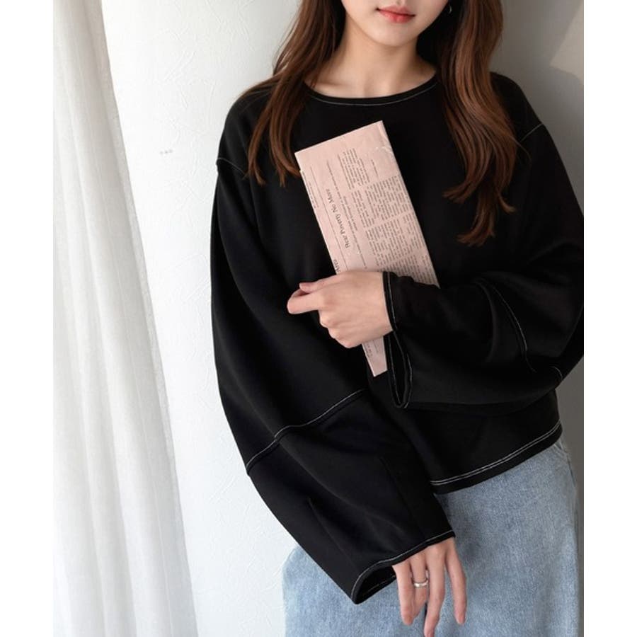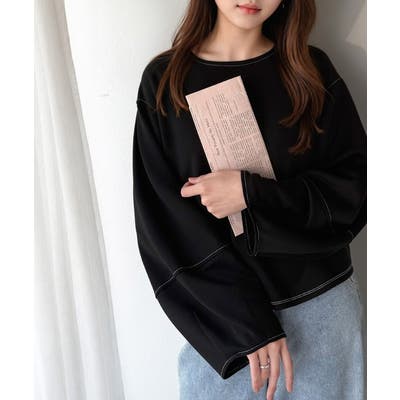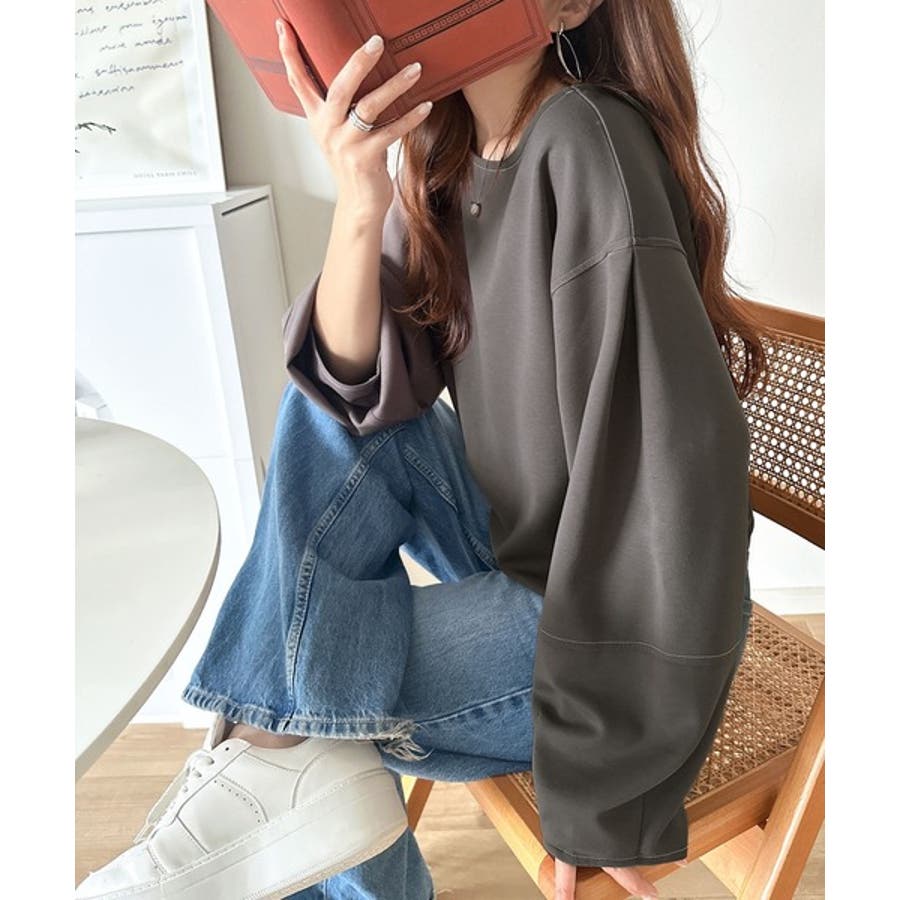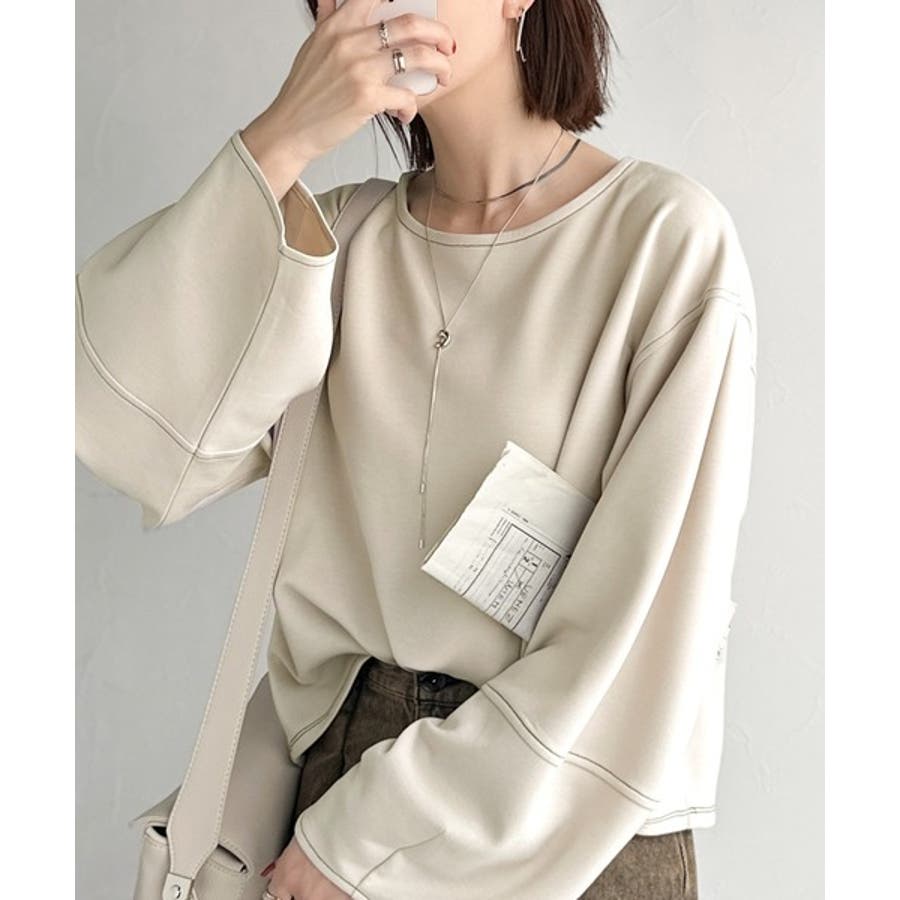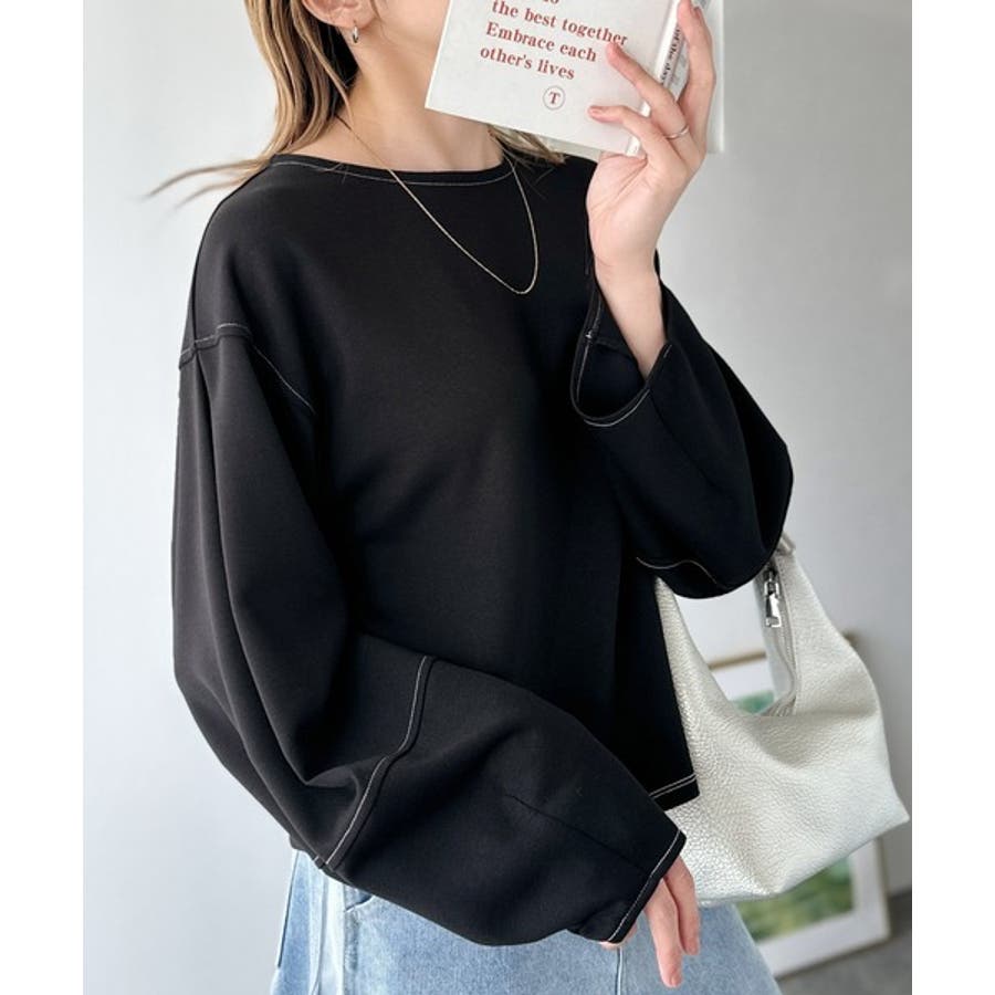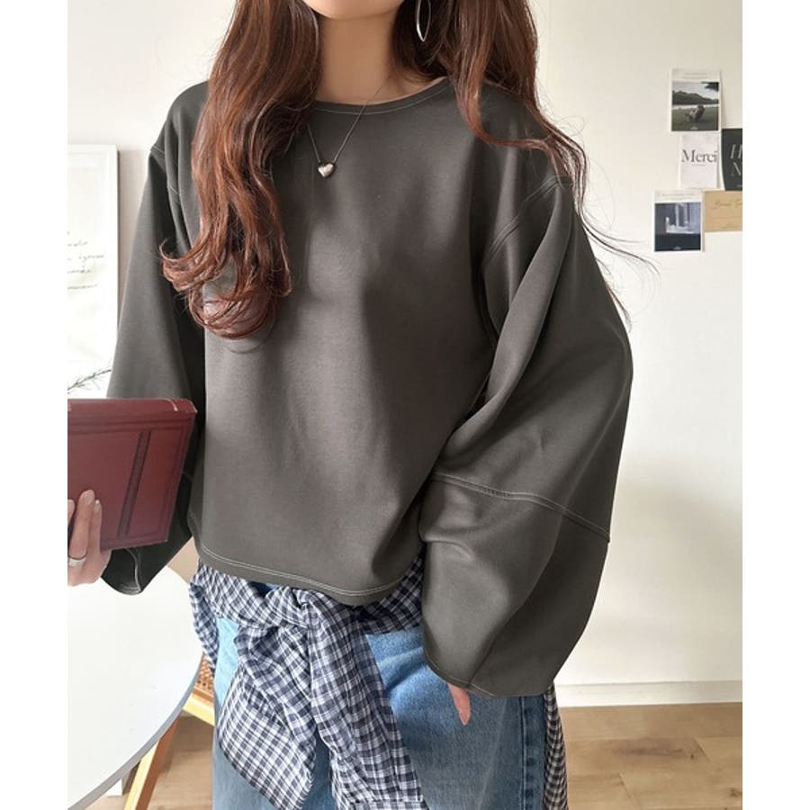 ふんわり袖で、大人映え。ランタンスリーブ切替ステッチプルオーバー(長袖)