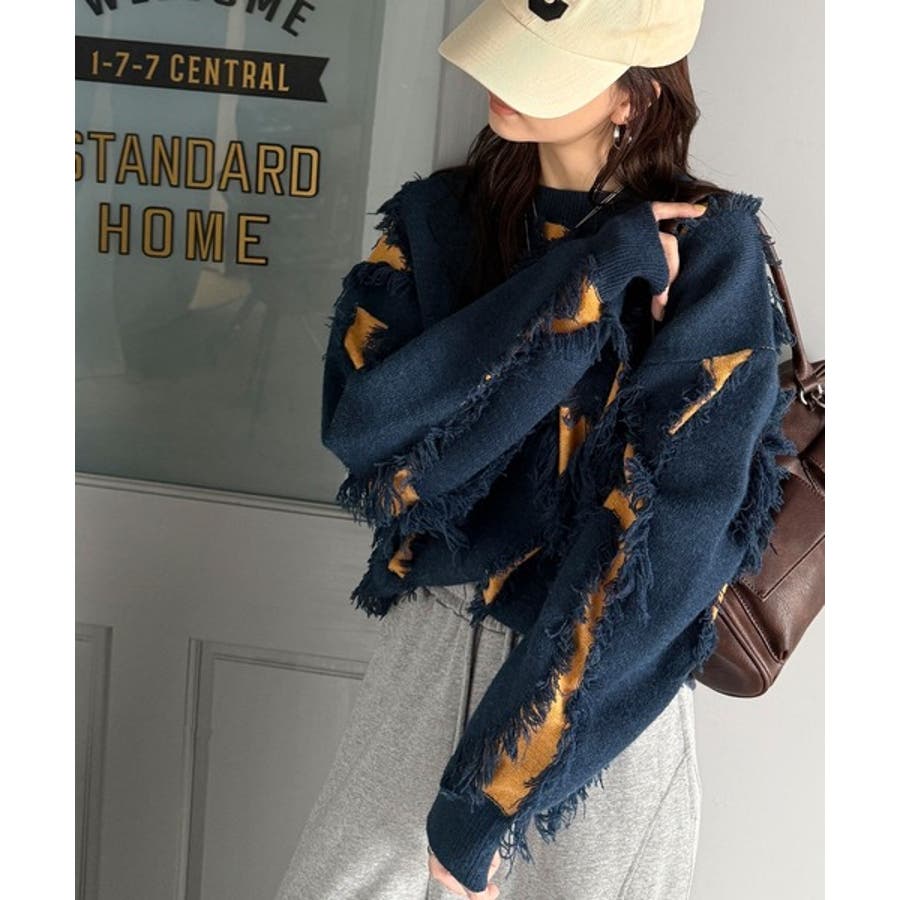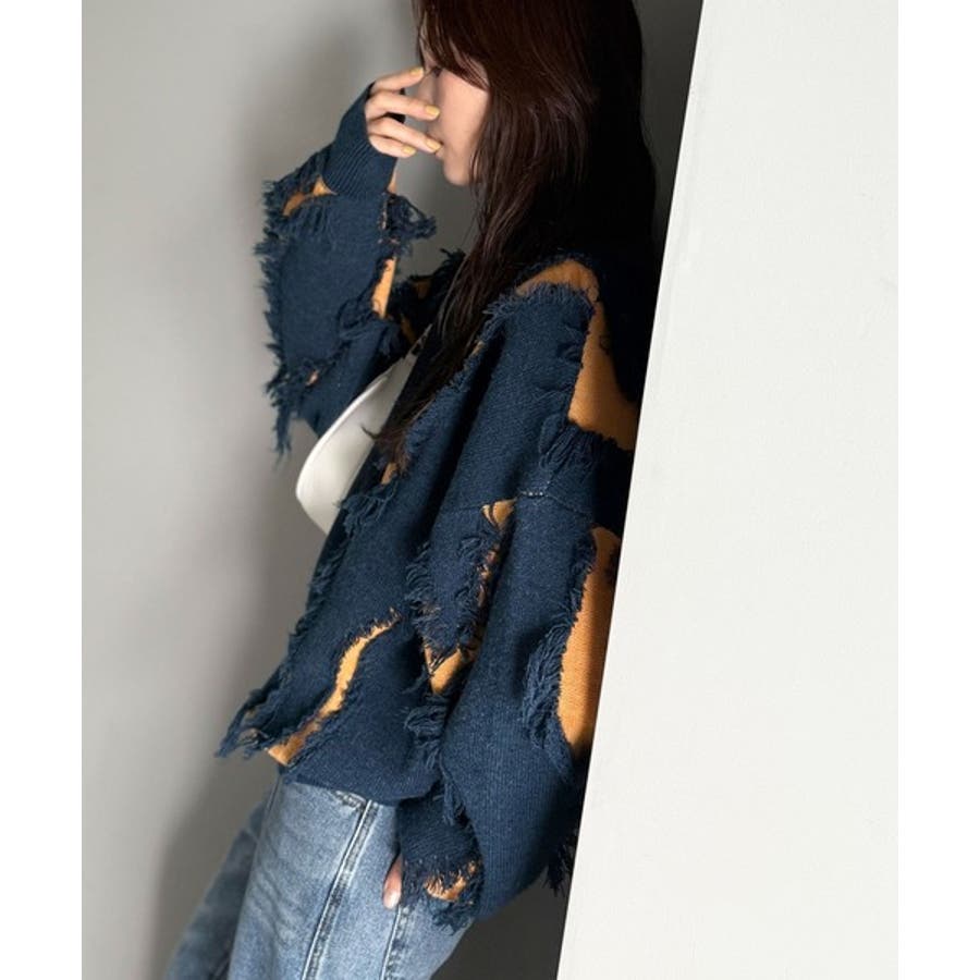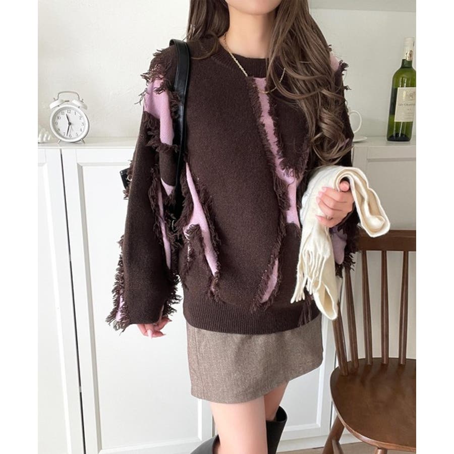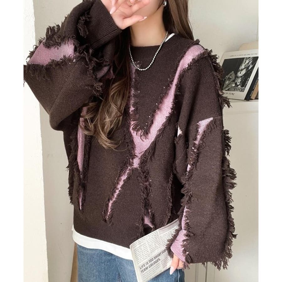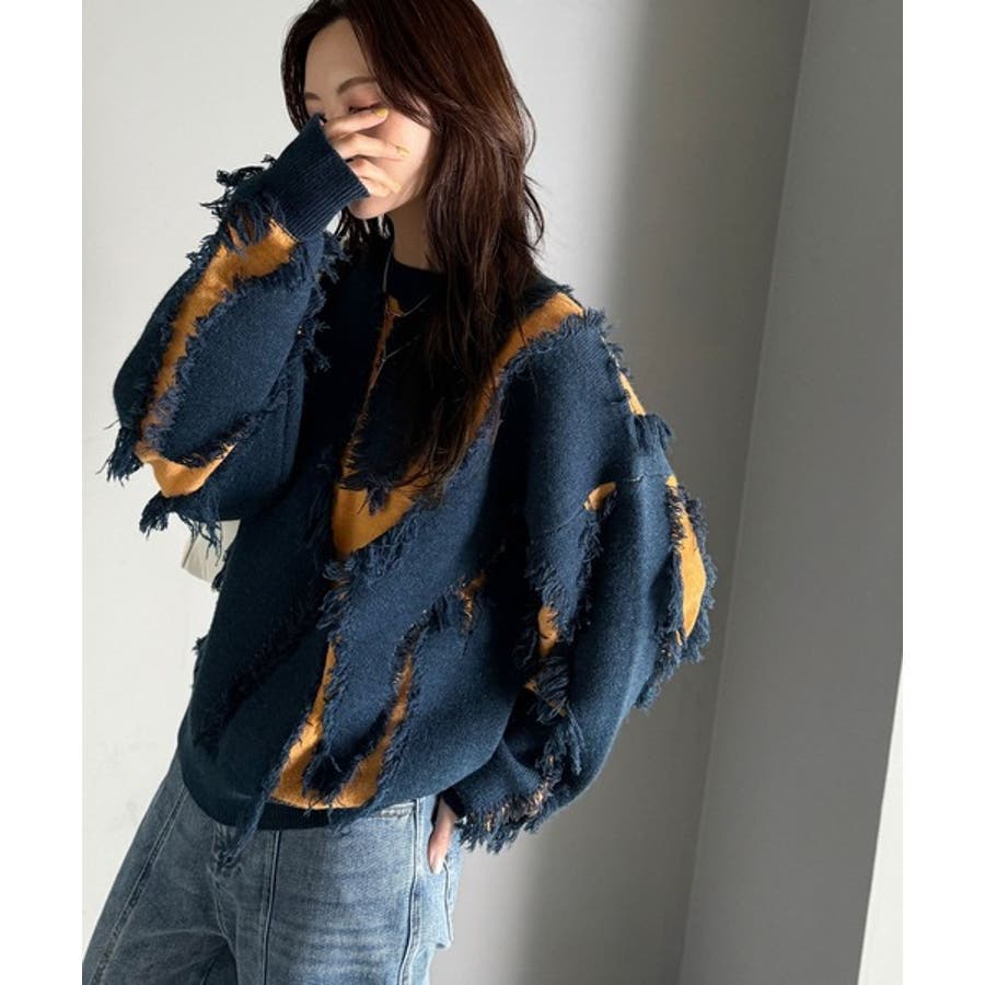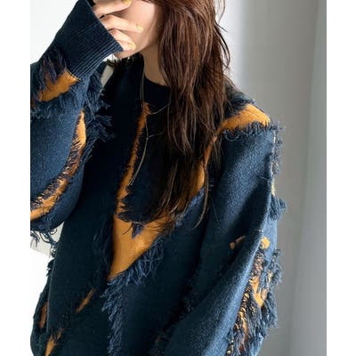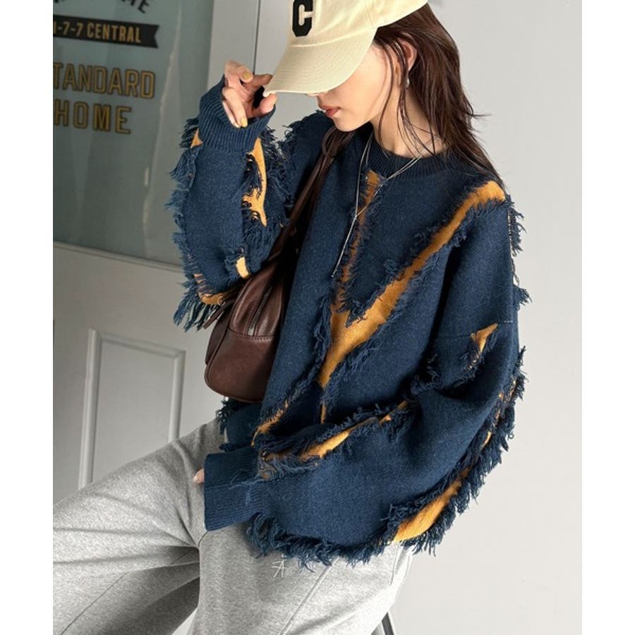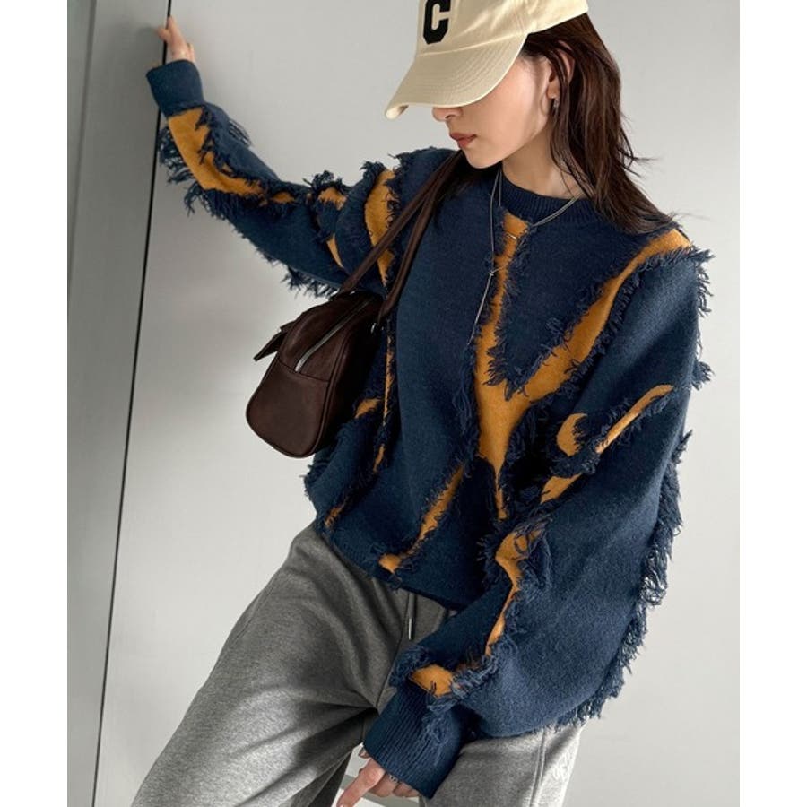 一枚で映える存在感のあるフリンジ配色オーバーニットです。