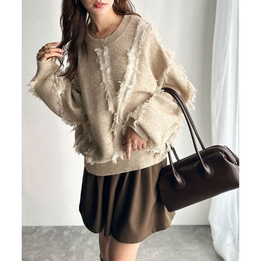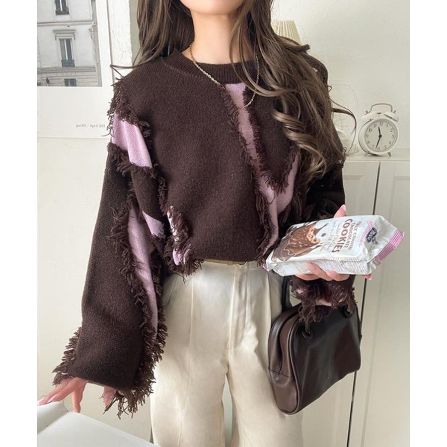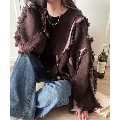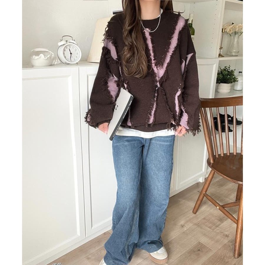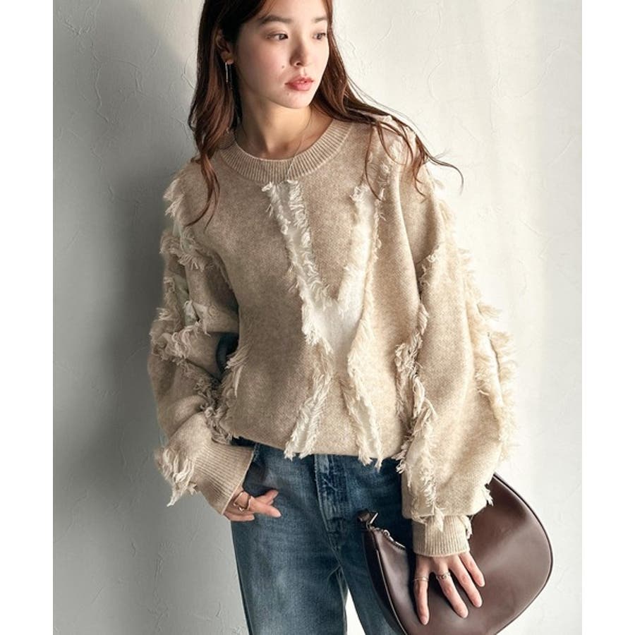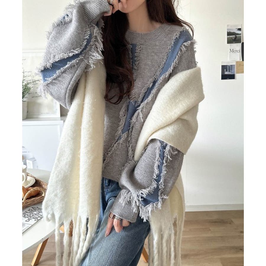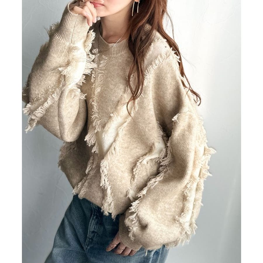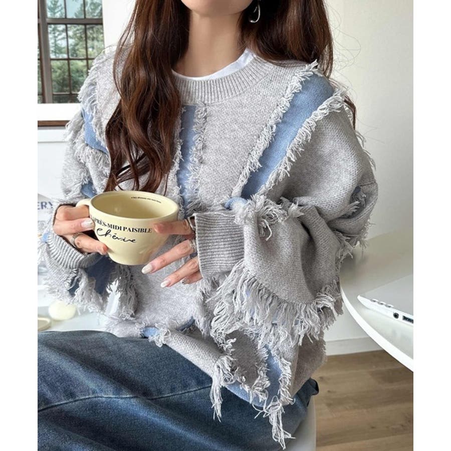 一枚で映える存在感のあるフリンジ配色オーバーニットです。