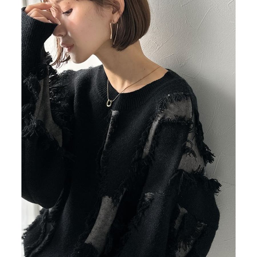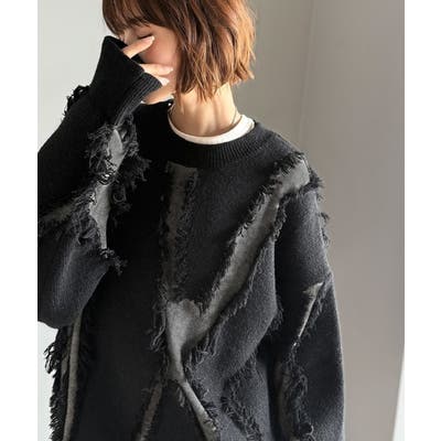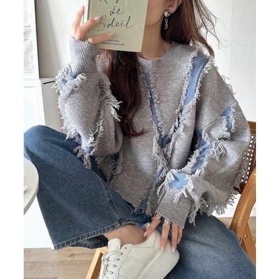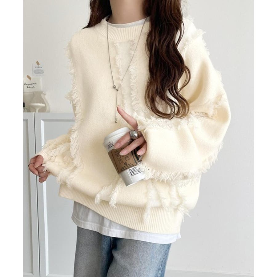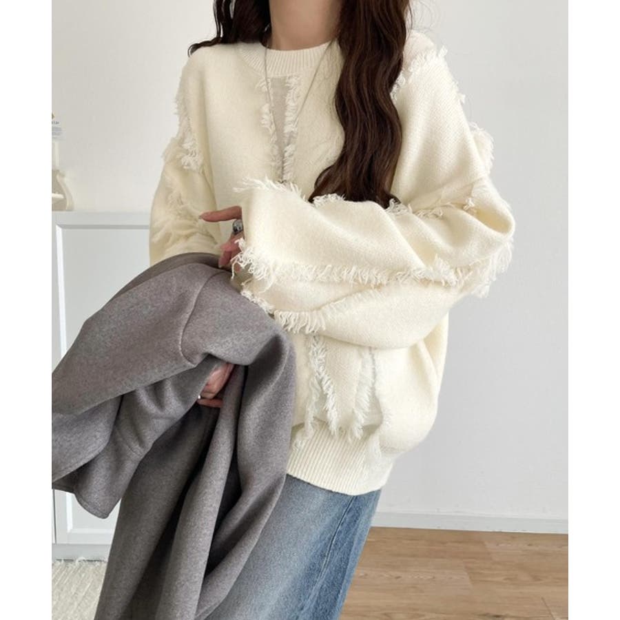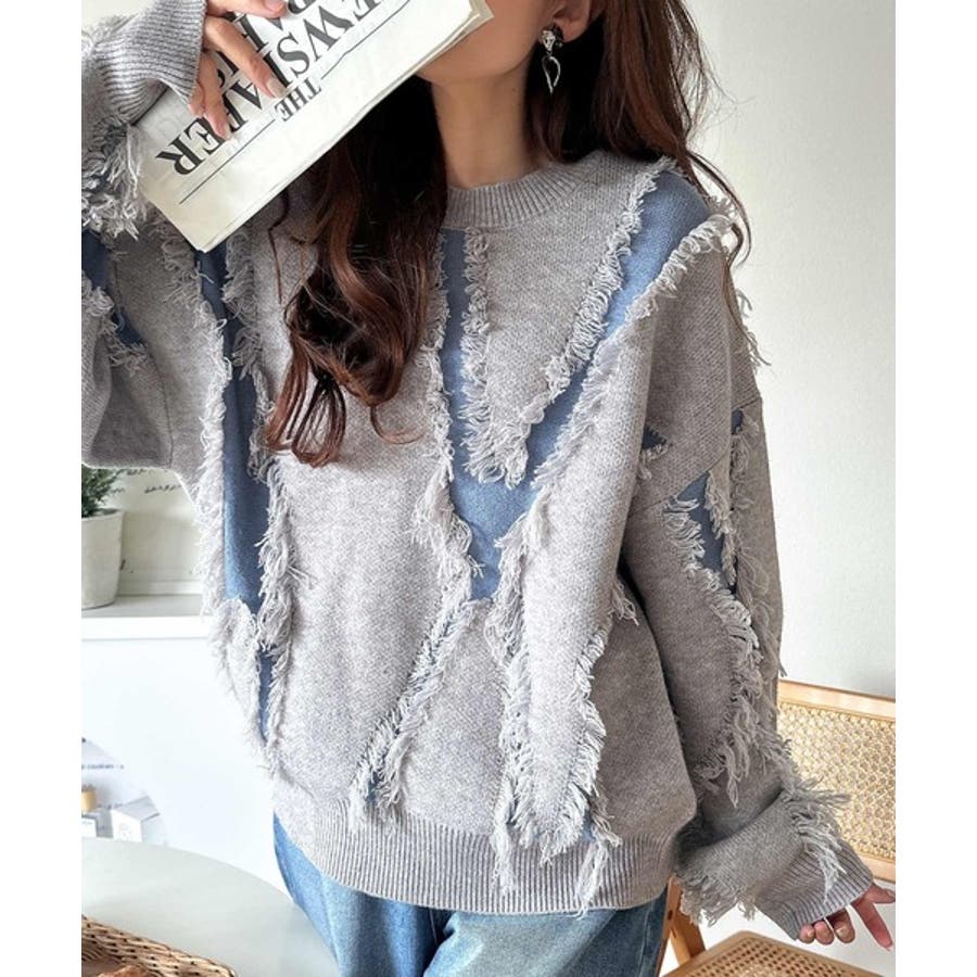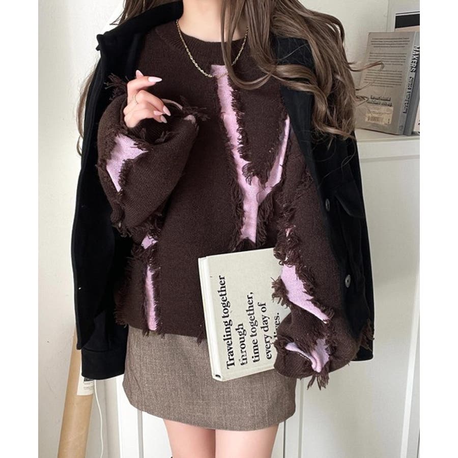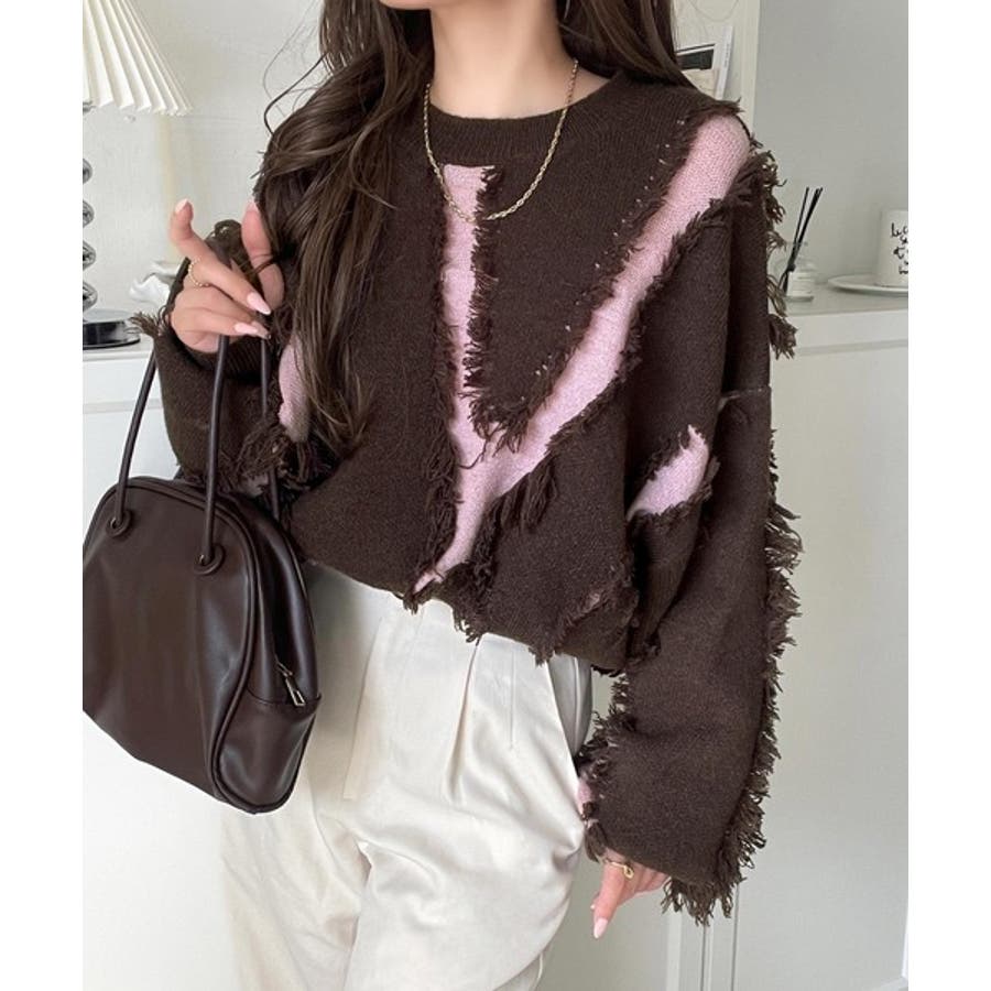 一枚で映える存在感のあるフリンジ配色オーバーニットです。