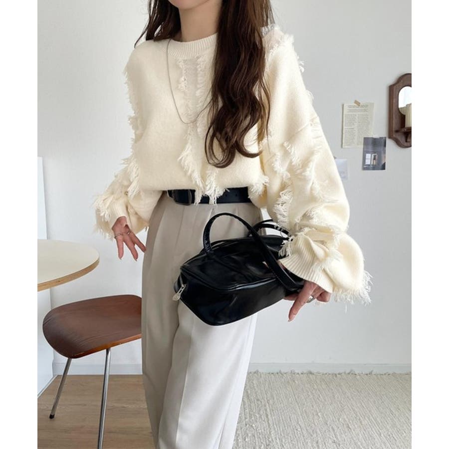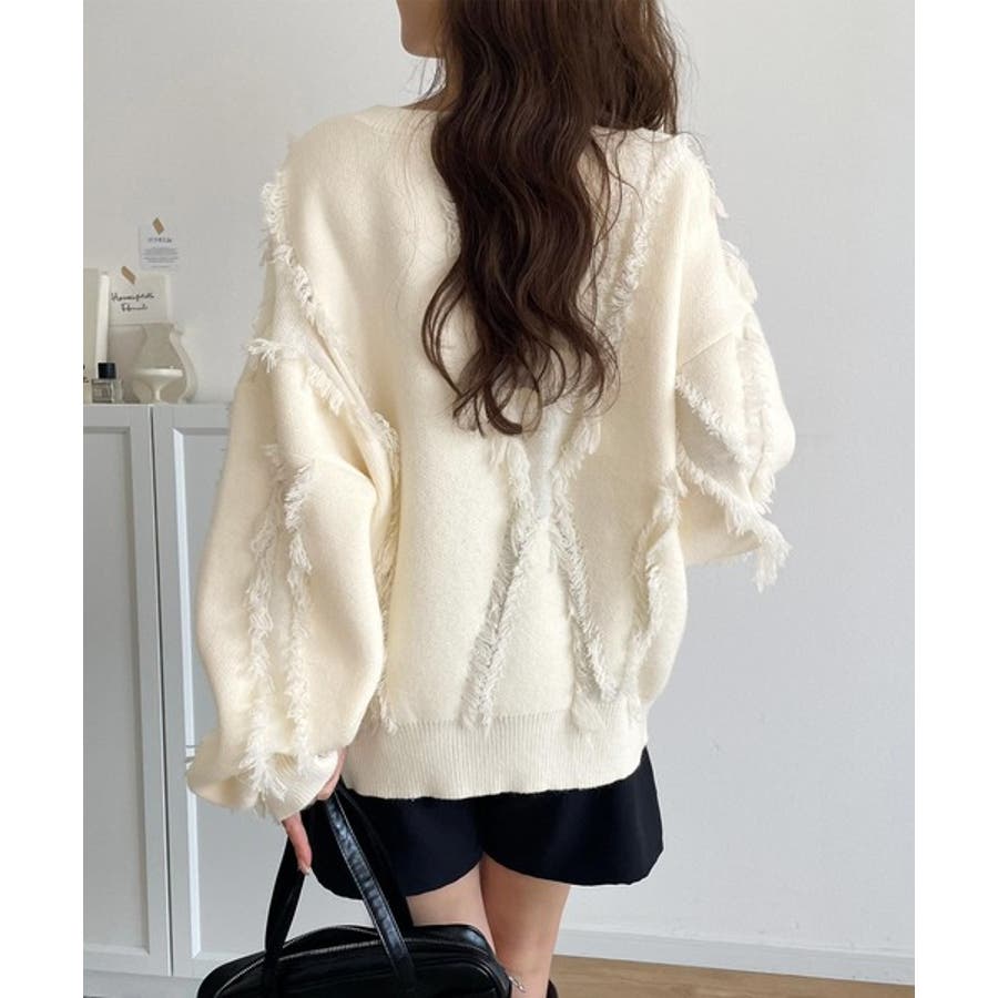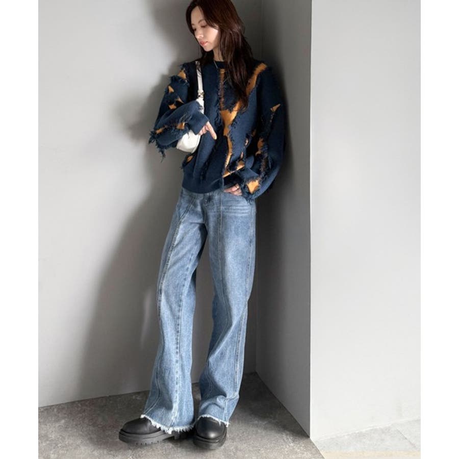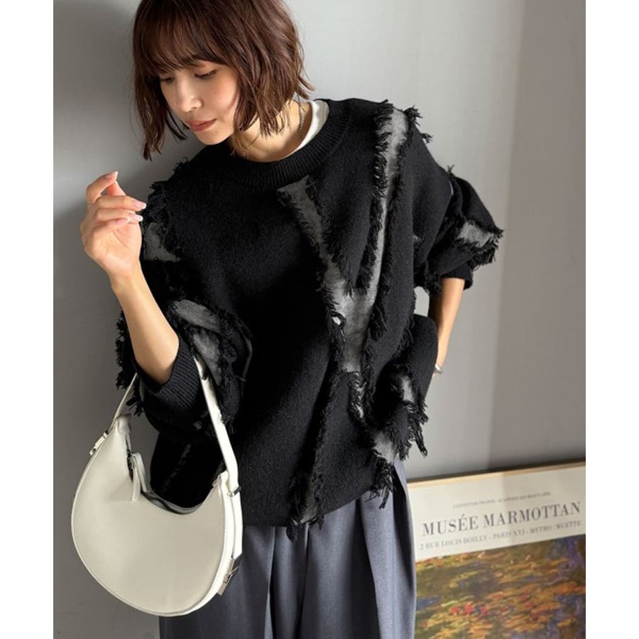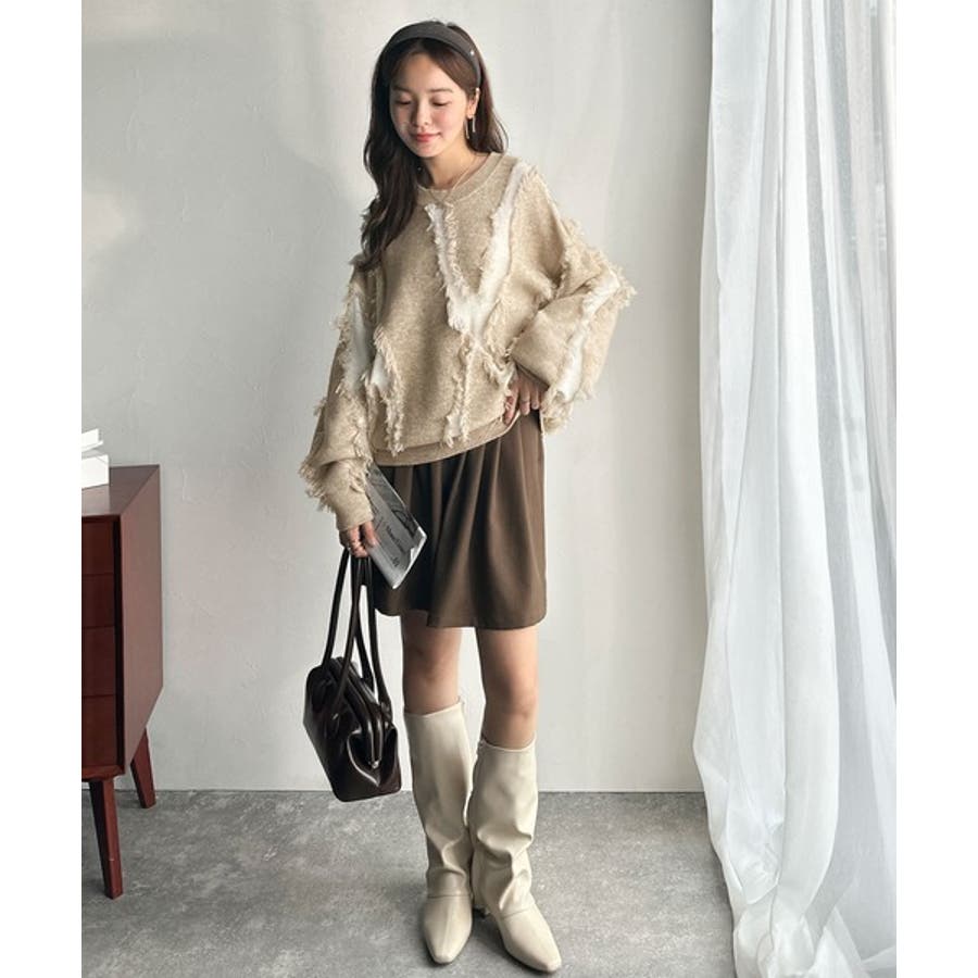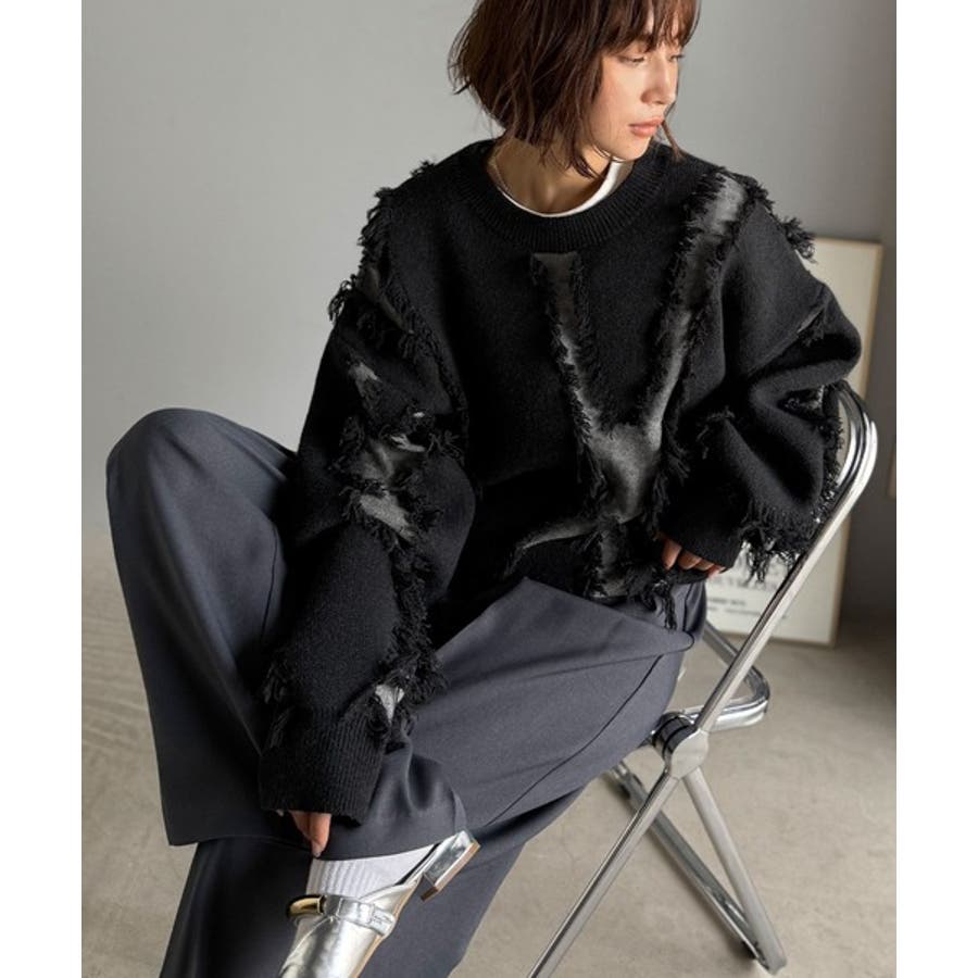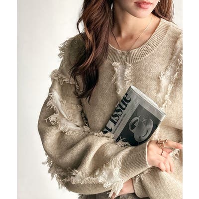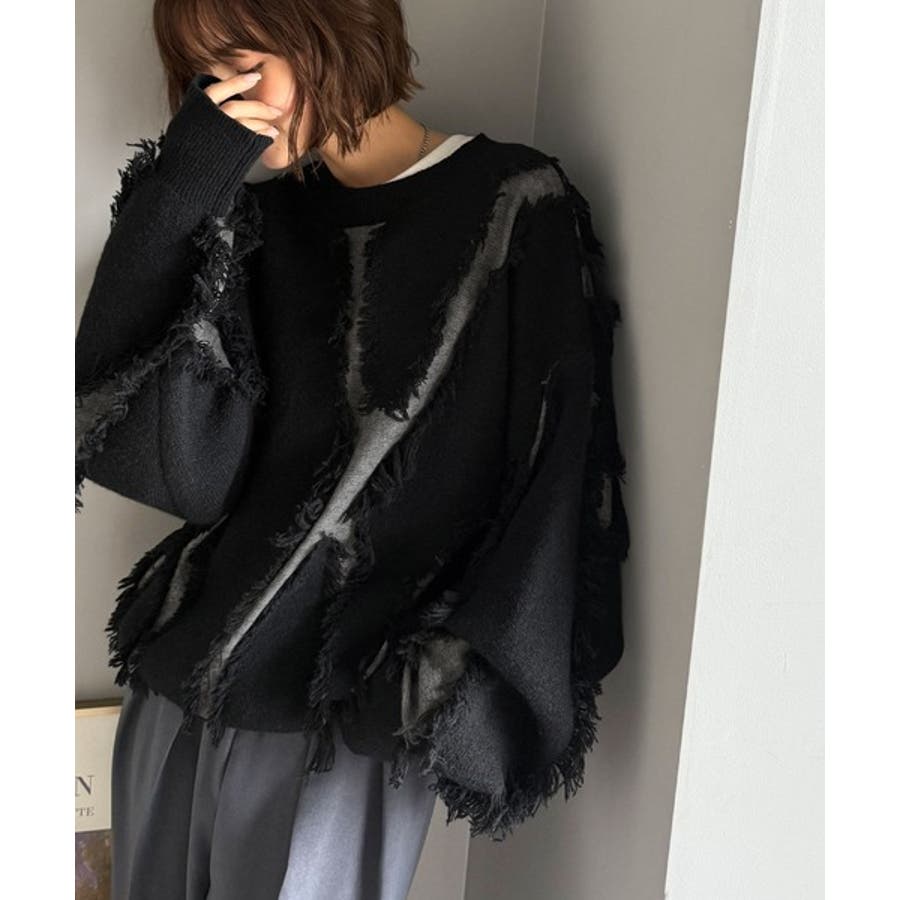 一枚で映える存在感のあるフリンジ配色オーバーニットです。