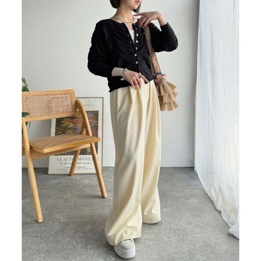 ボトムスを選ばず、デニムやスラックス、スカートにもマッチする万能さが嬉しいポイント。