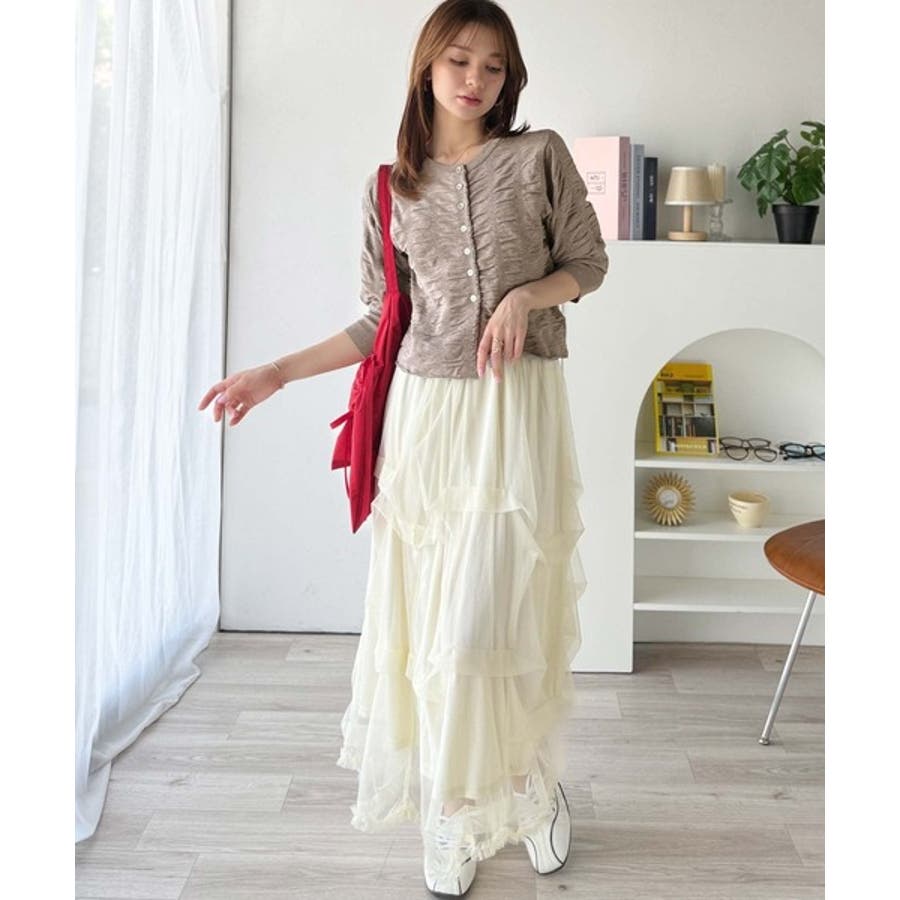さらに、甘めテイストにはティアードスカートを合わせるのがイチオシ!