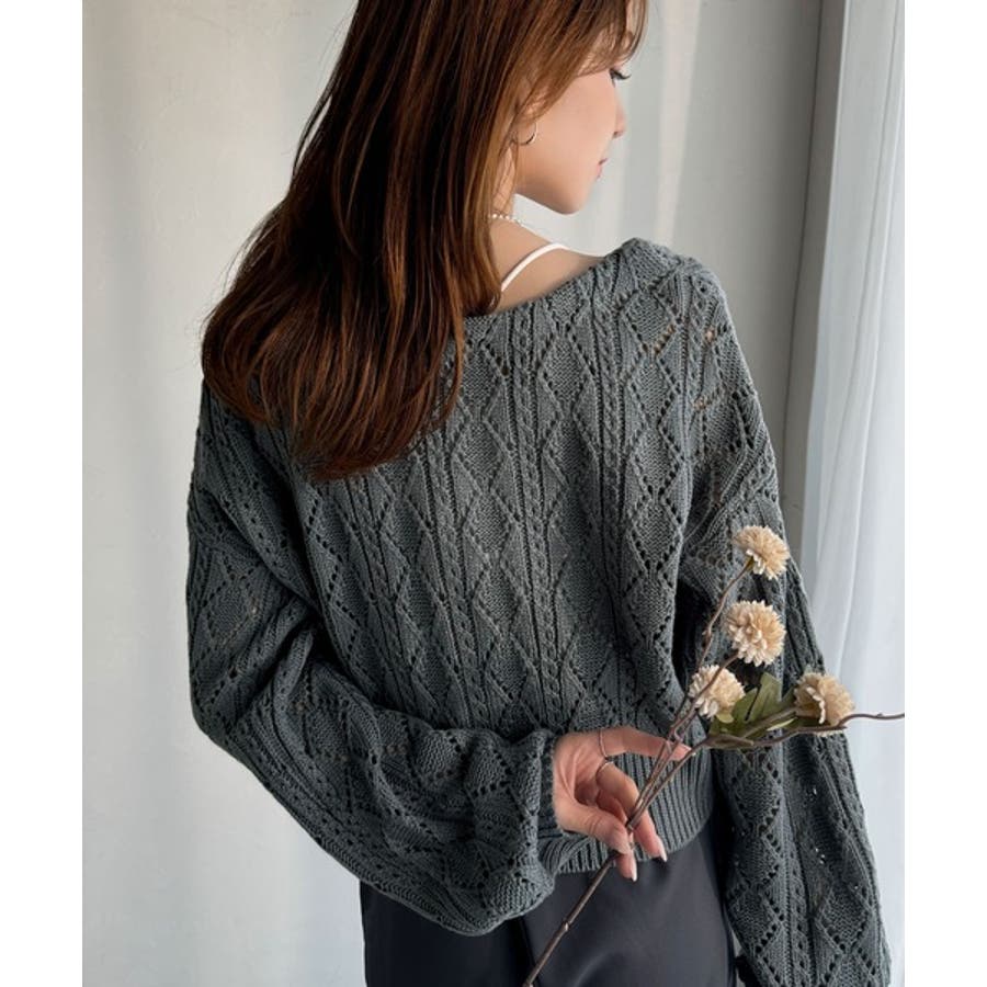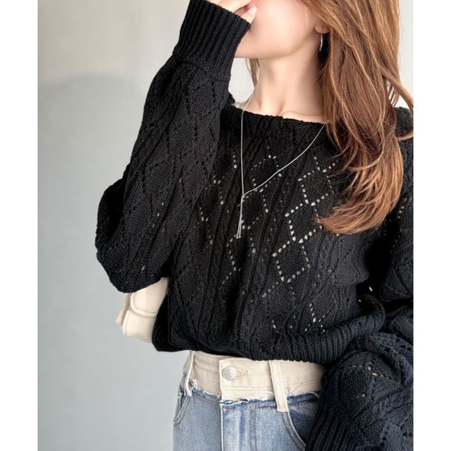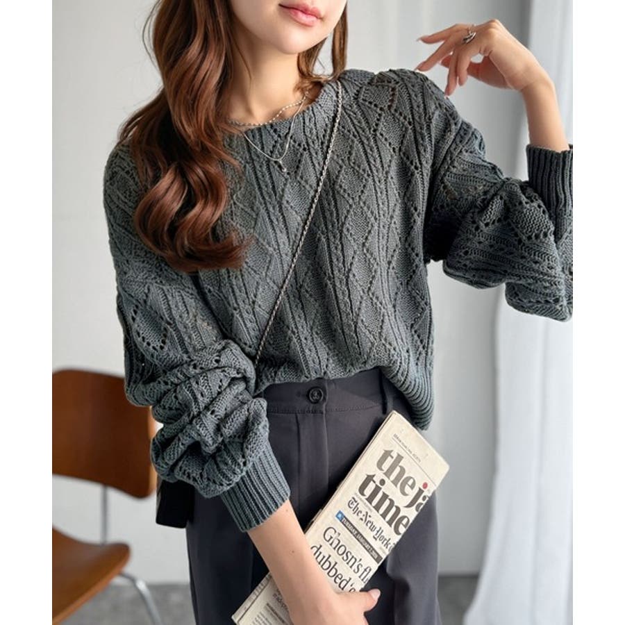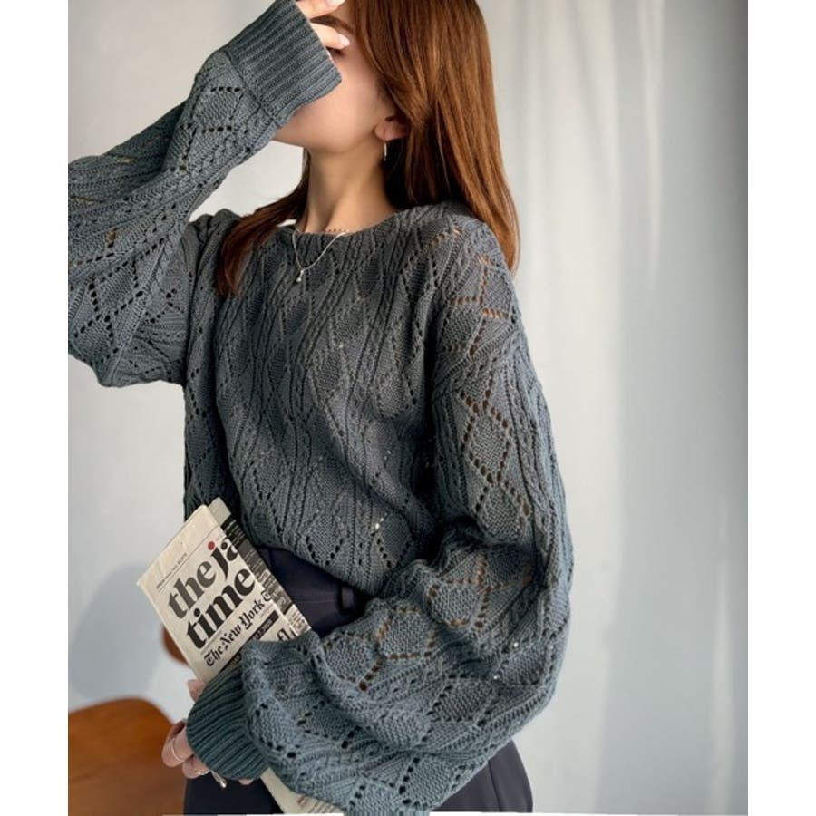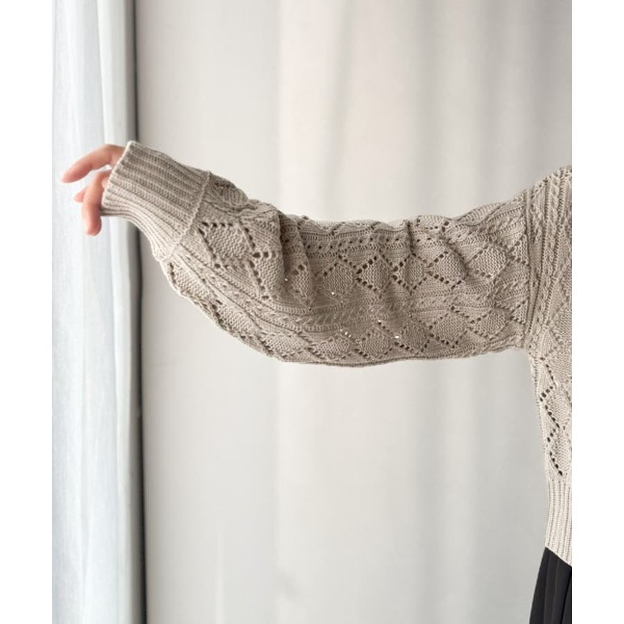 繊細な編み目で肌がうっすら透ける、抜け感たっぷりの仕上がりです。